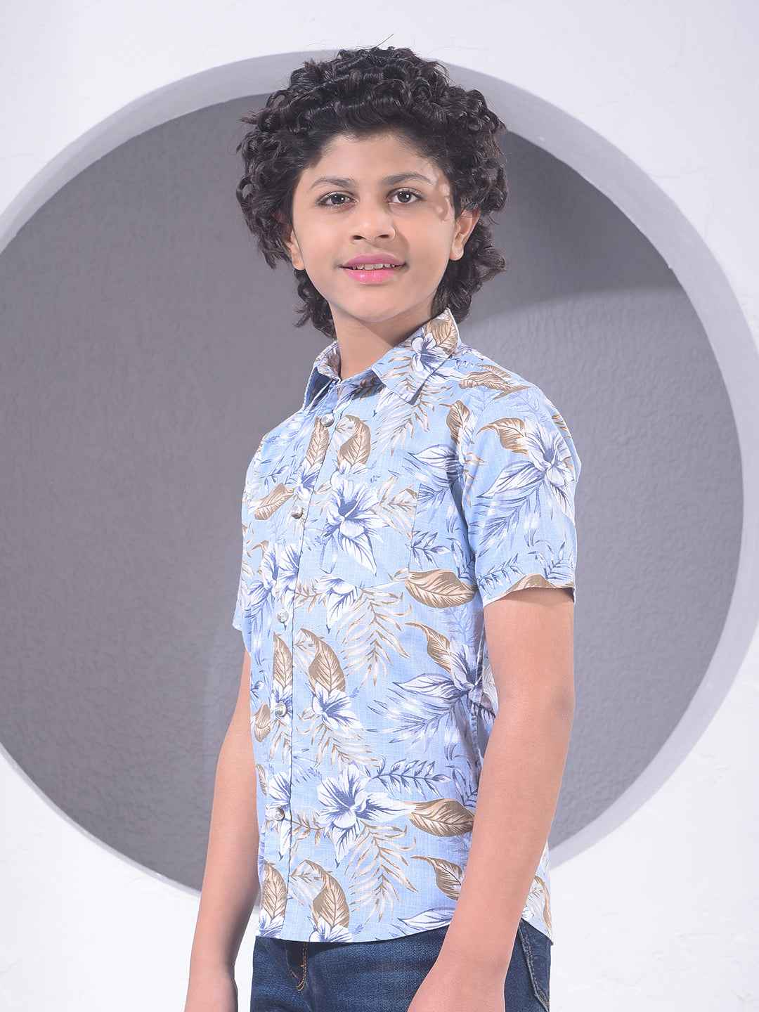 This 100% cotton Crimsoune Club boy's blue floral print shirt combines artistic design with breathable comfort. The modern pattern and refreshing blue shade offer a stylish look suitable for casual social settings.