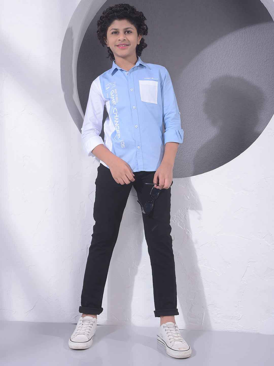 This 100% cotton blue typographic print shirt offers an energetic and modern look. The vibrant graphic design and quality fabric ensure your child stays stylish and comfortable during any casual daytime social outing.