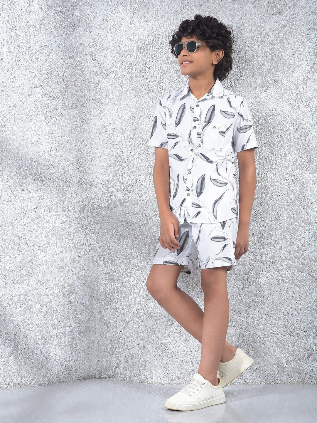 Crimsoune Club Boy's Olive Floral Print Shirt : Fresh olive floral print shirt designed for breathability and casual style.