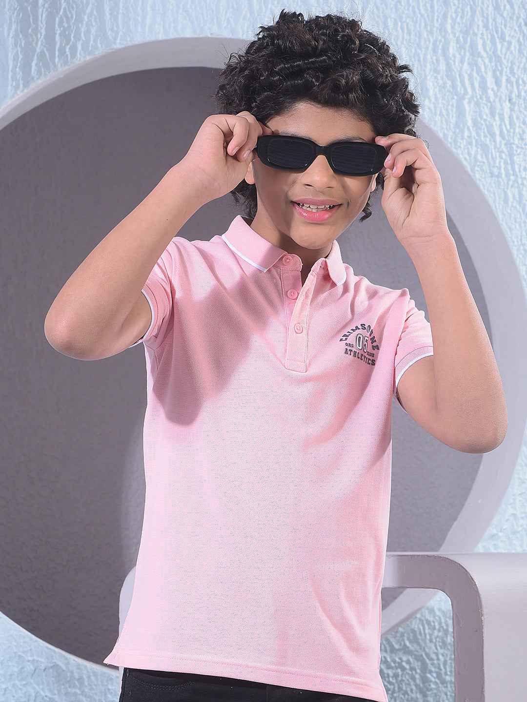 Look trendy in this pink typographic print polo neck t-shirt. The unique graphic details and vibrant pink hue provide a modern, youthful aesthetic that ensures style for any casual daily family social outing.