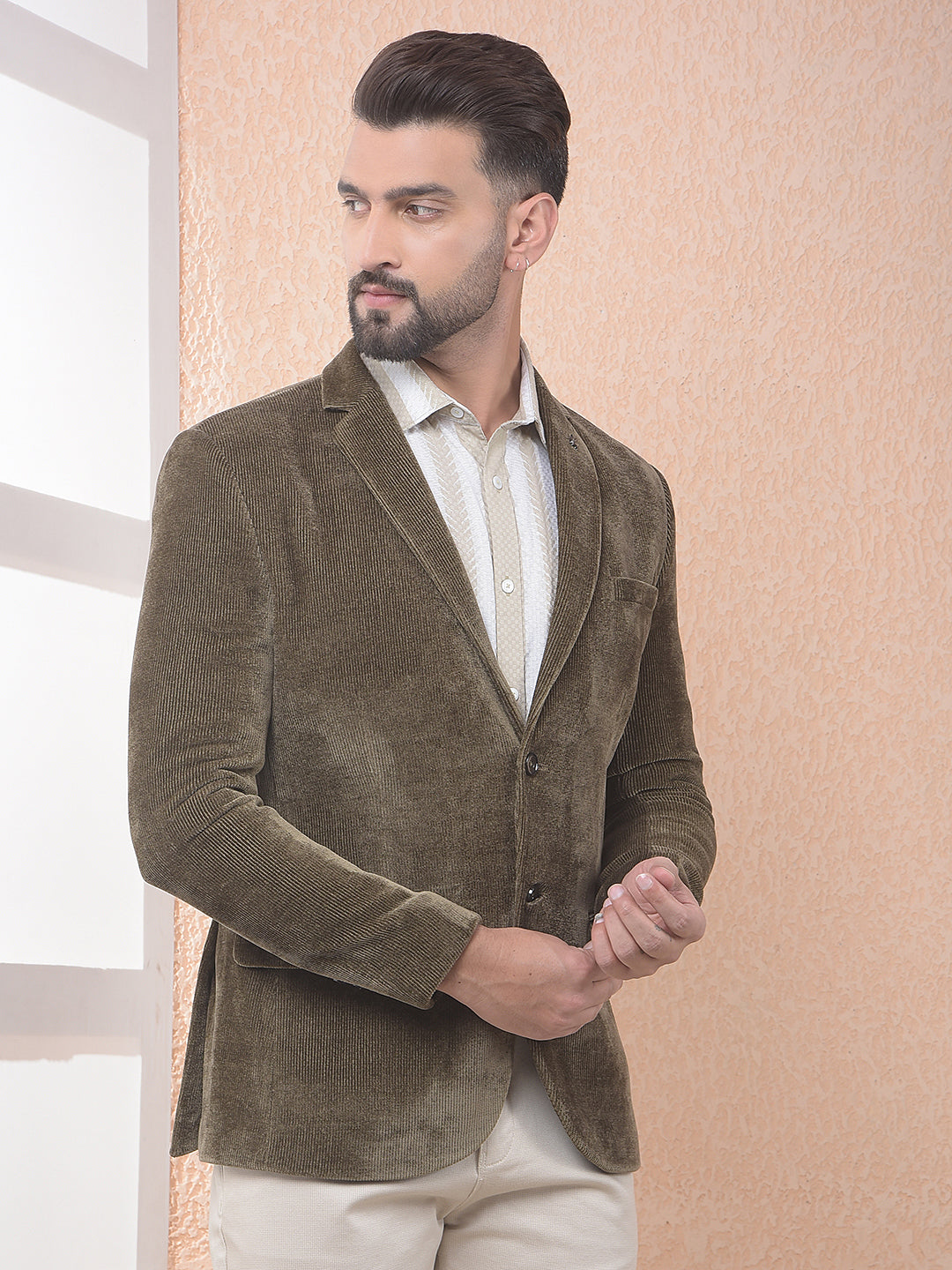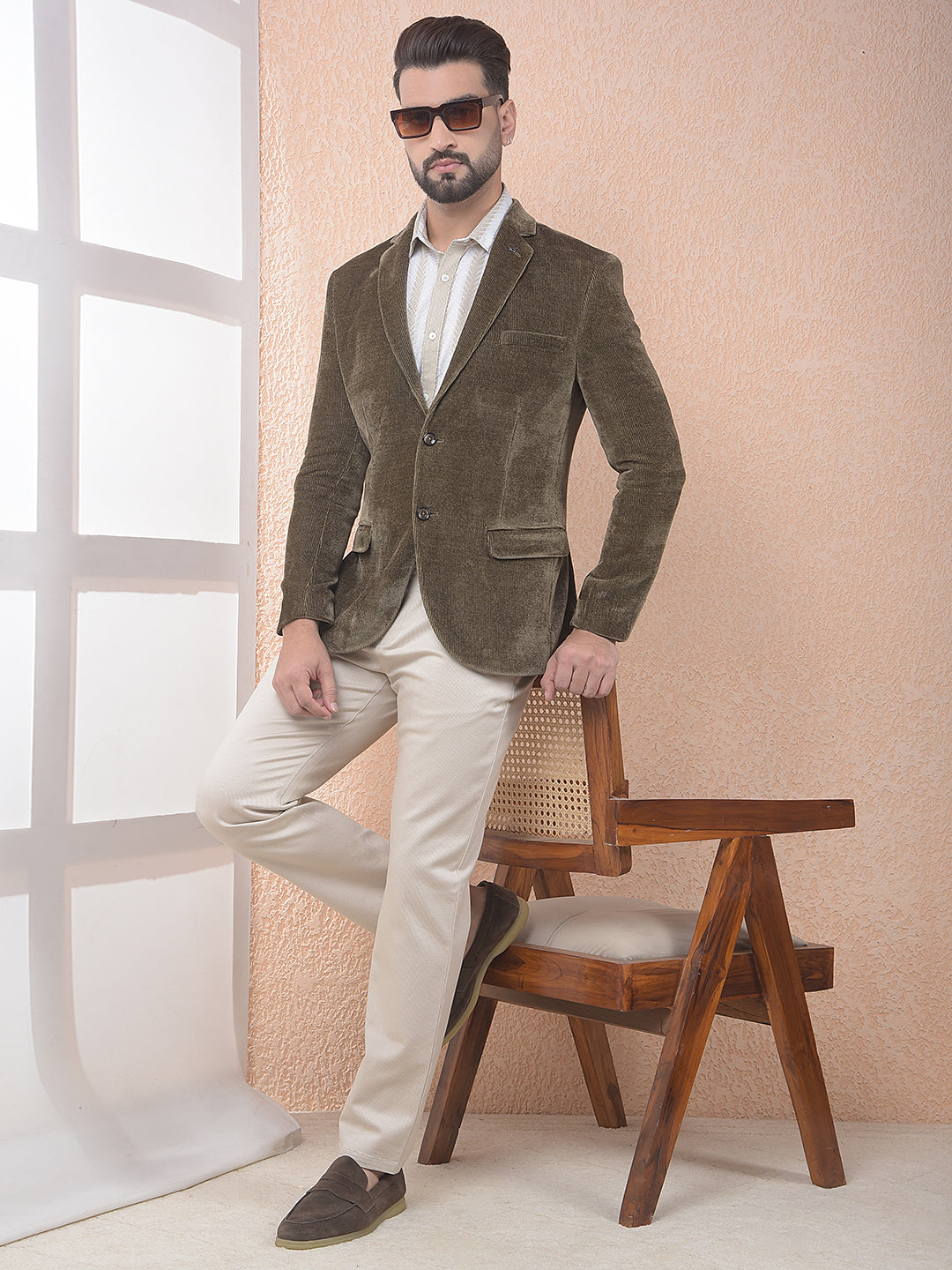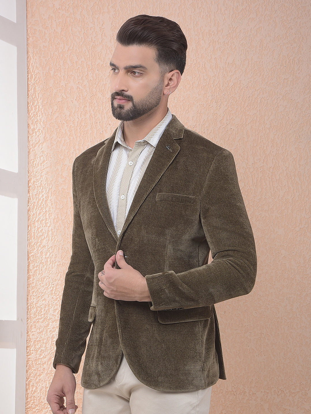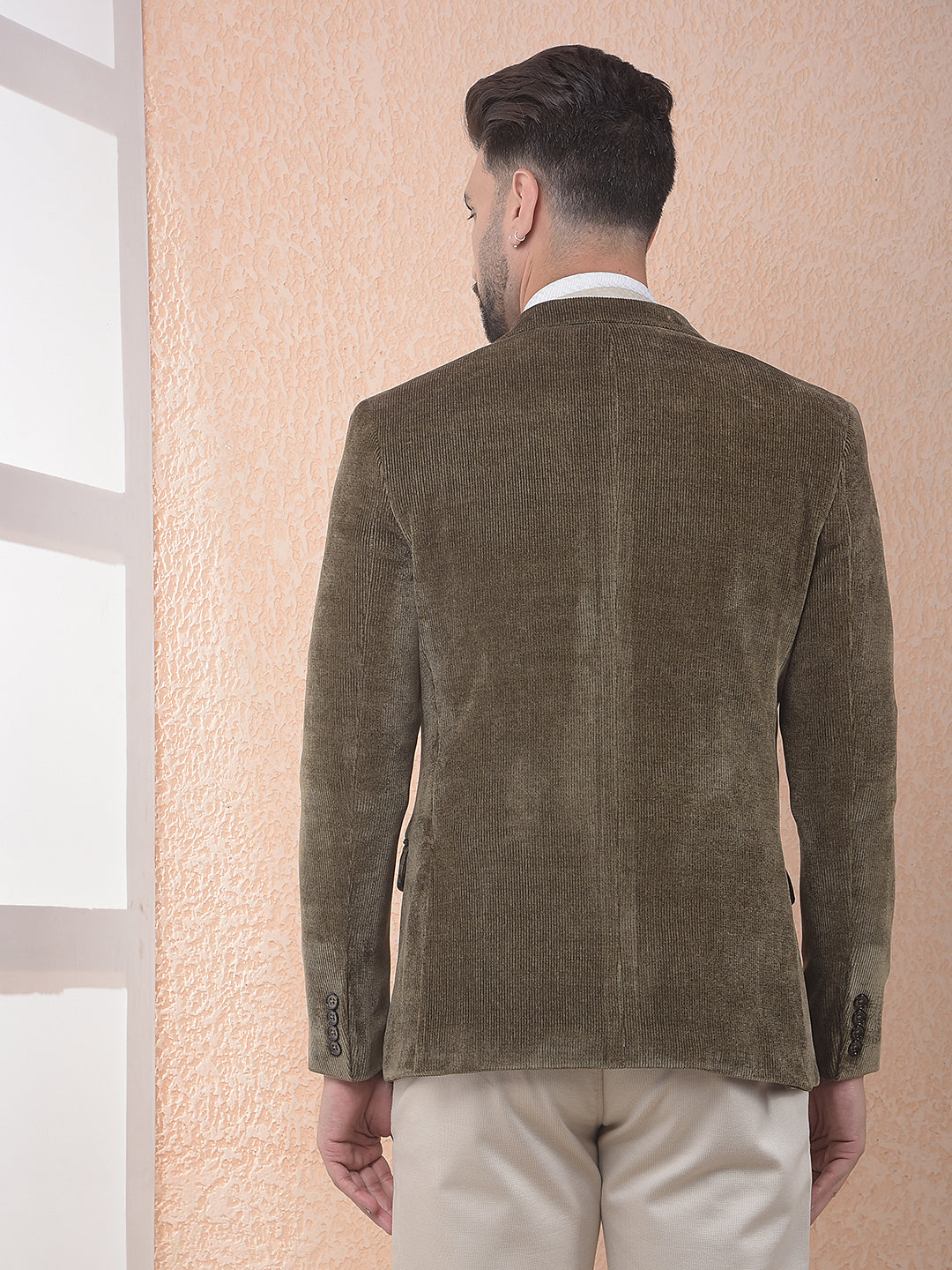 Brown Notched Lapel Corduroy Blazer