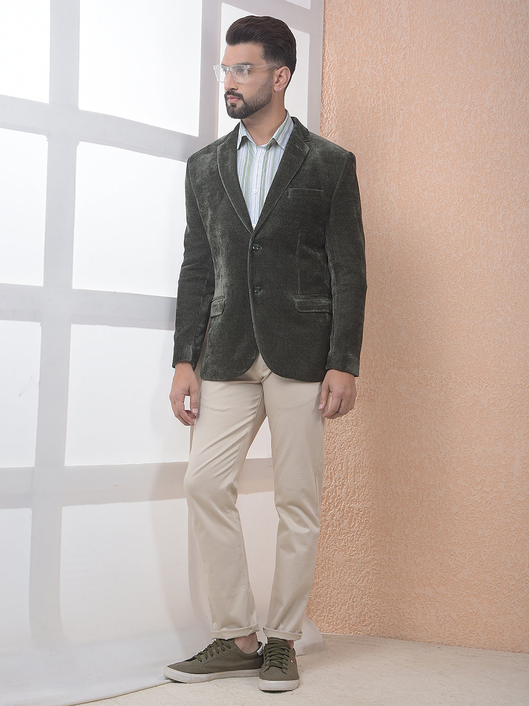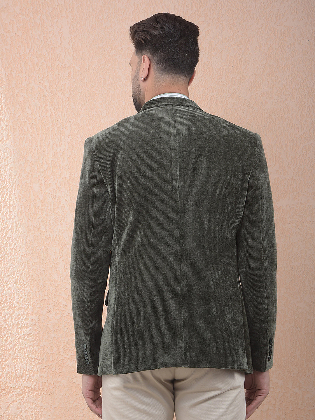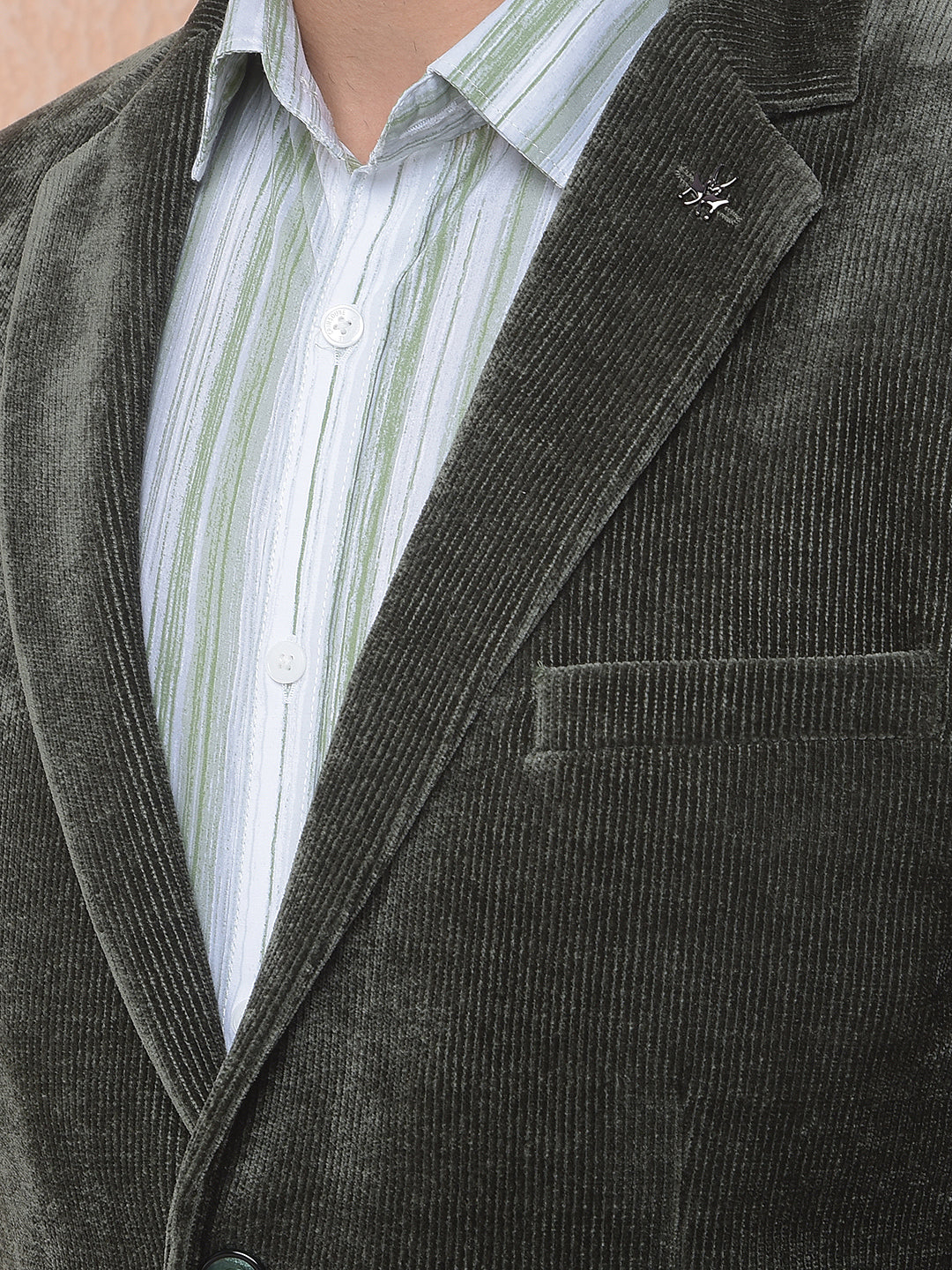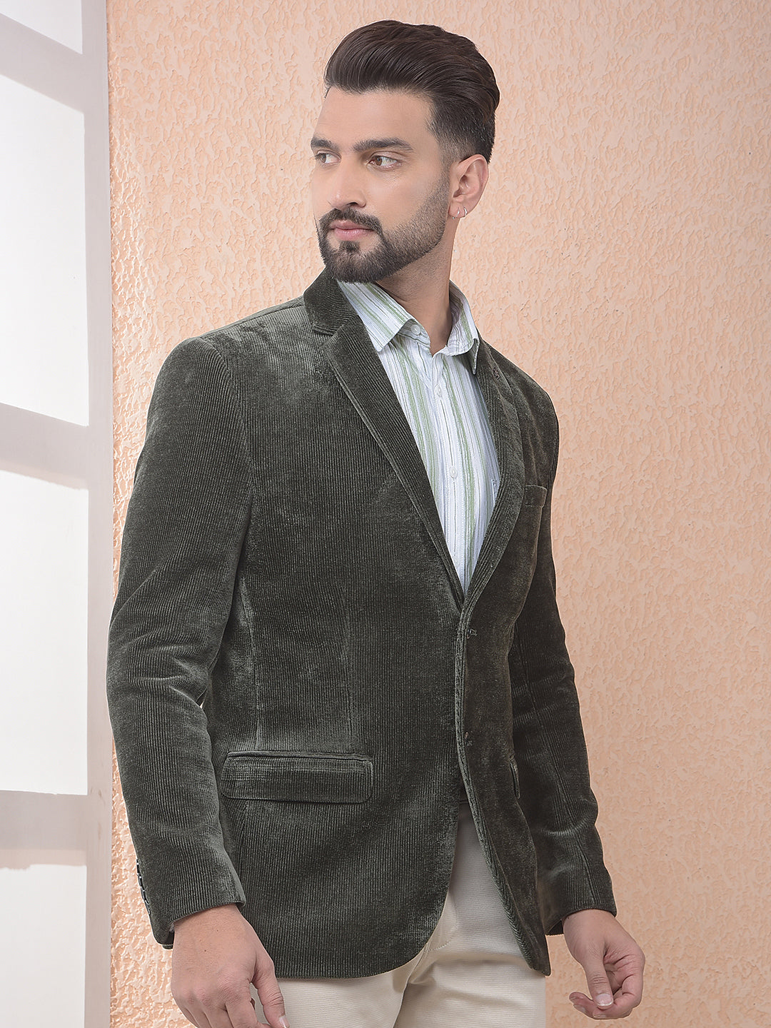 This Crimsoune Club green corduroy blazer offers a unique texture and a classic notched lapel. The durable corduroy fabric and deep green hue provide a stylish, heritage-inspired look for the colder autumn months.