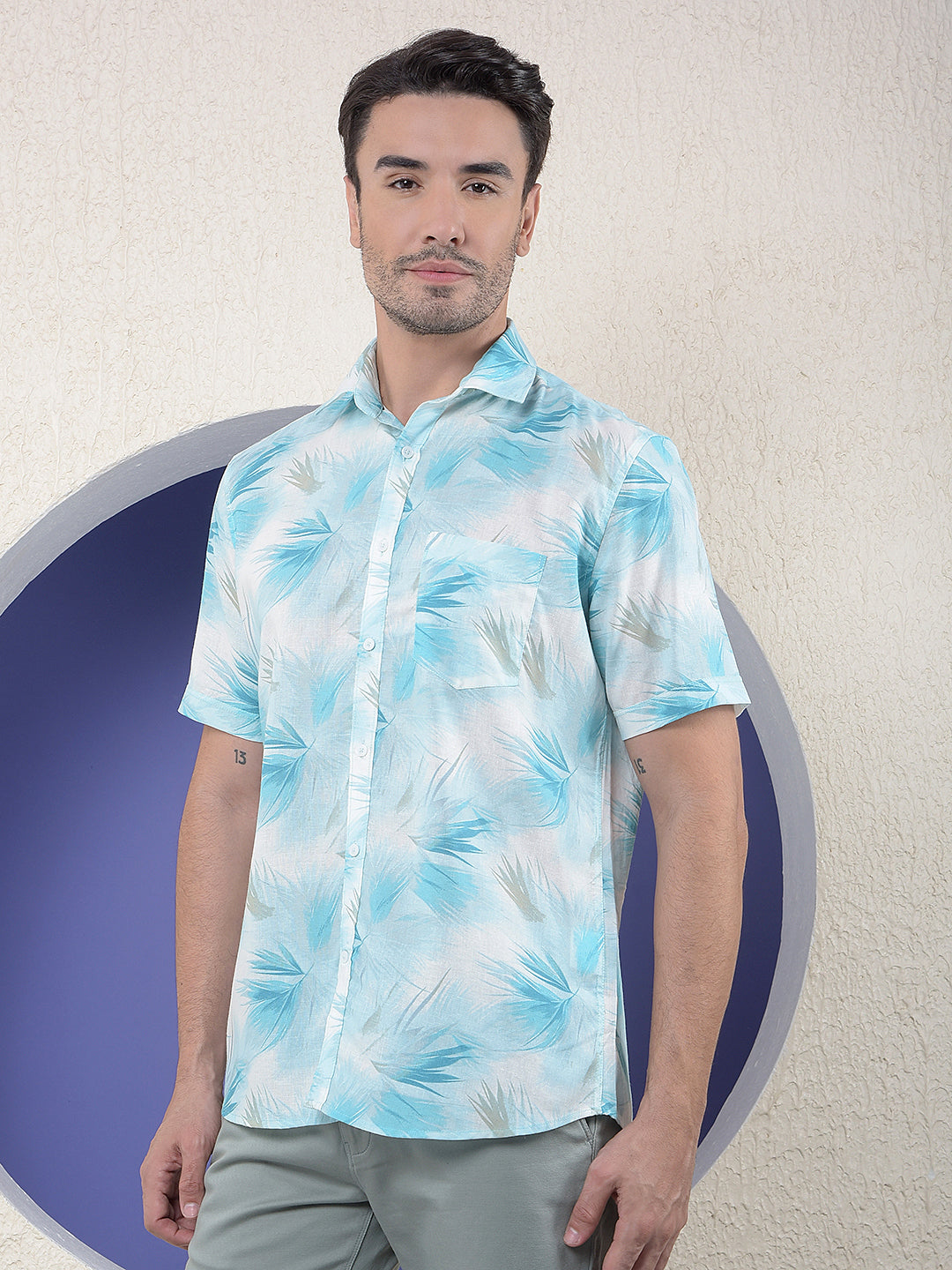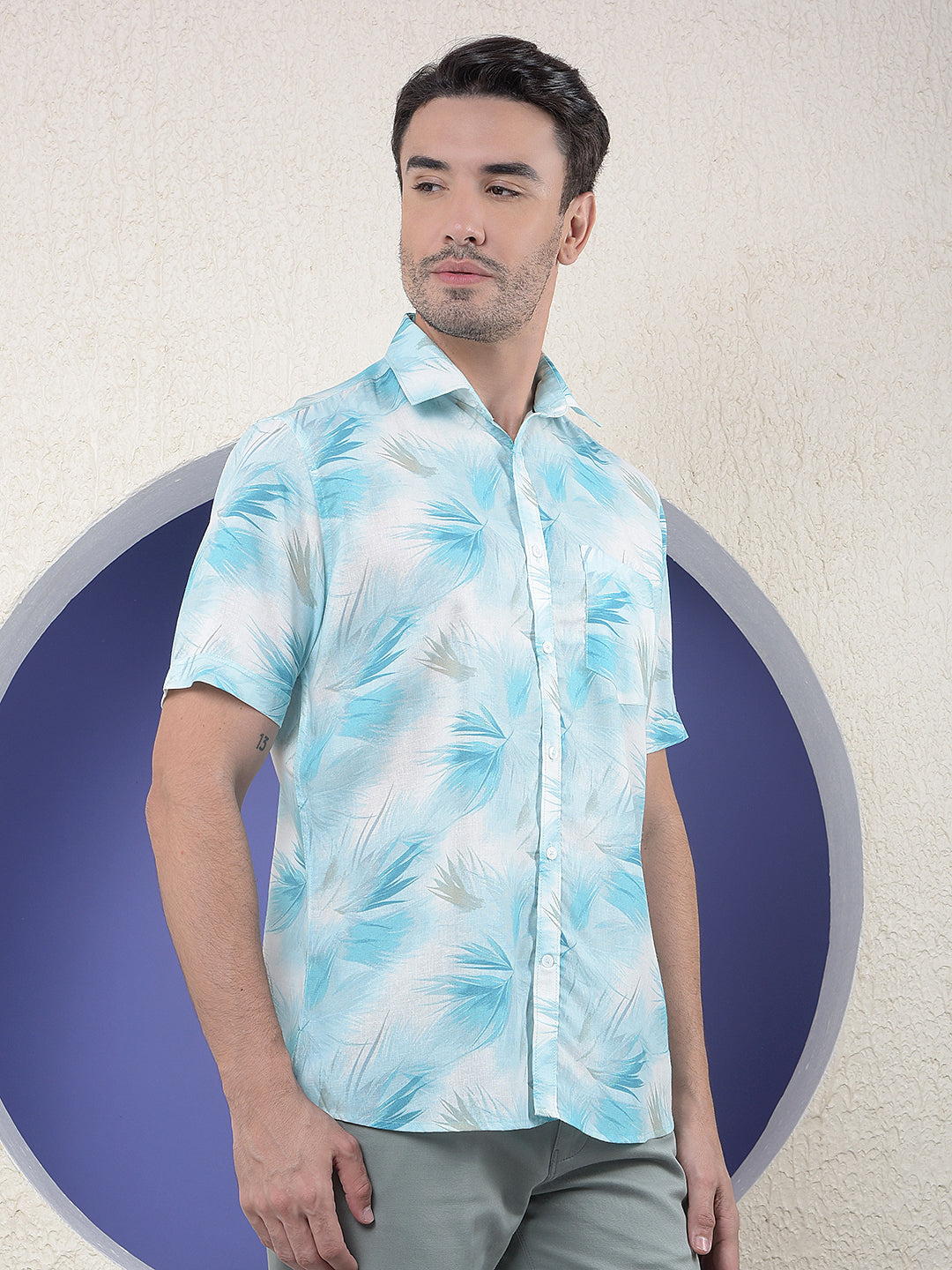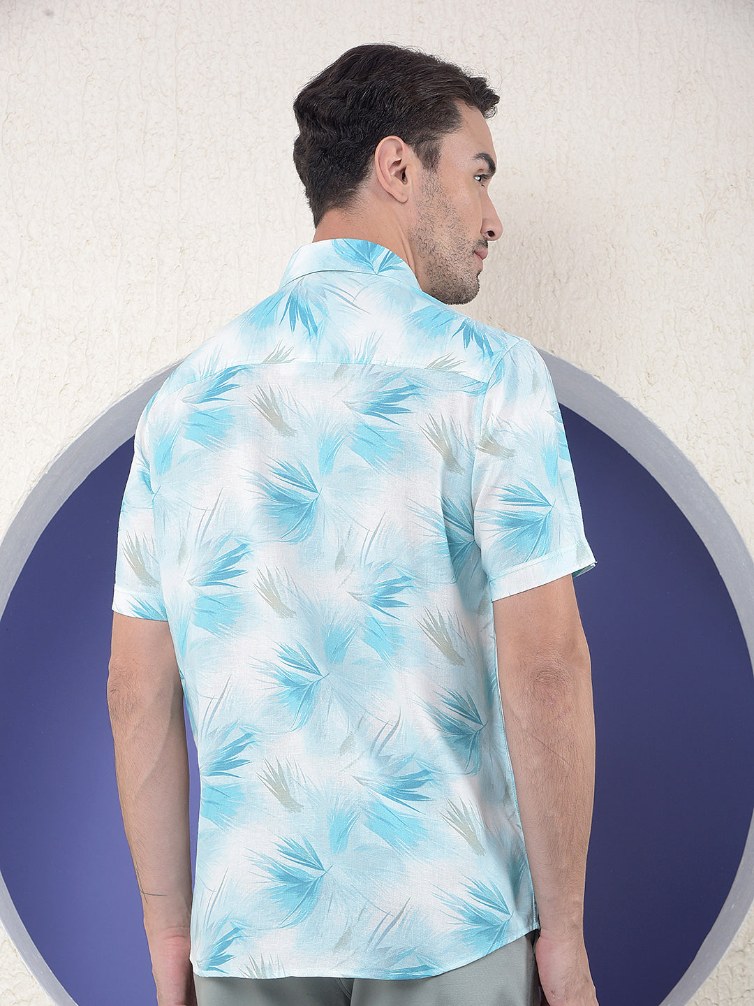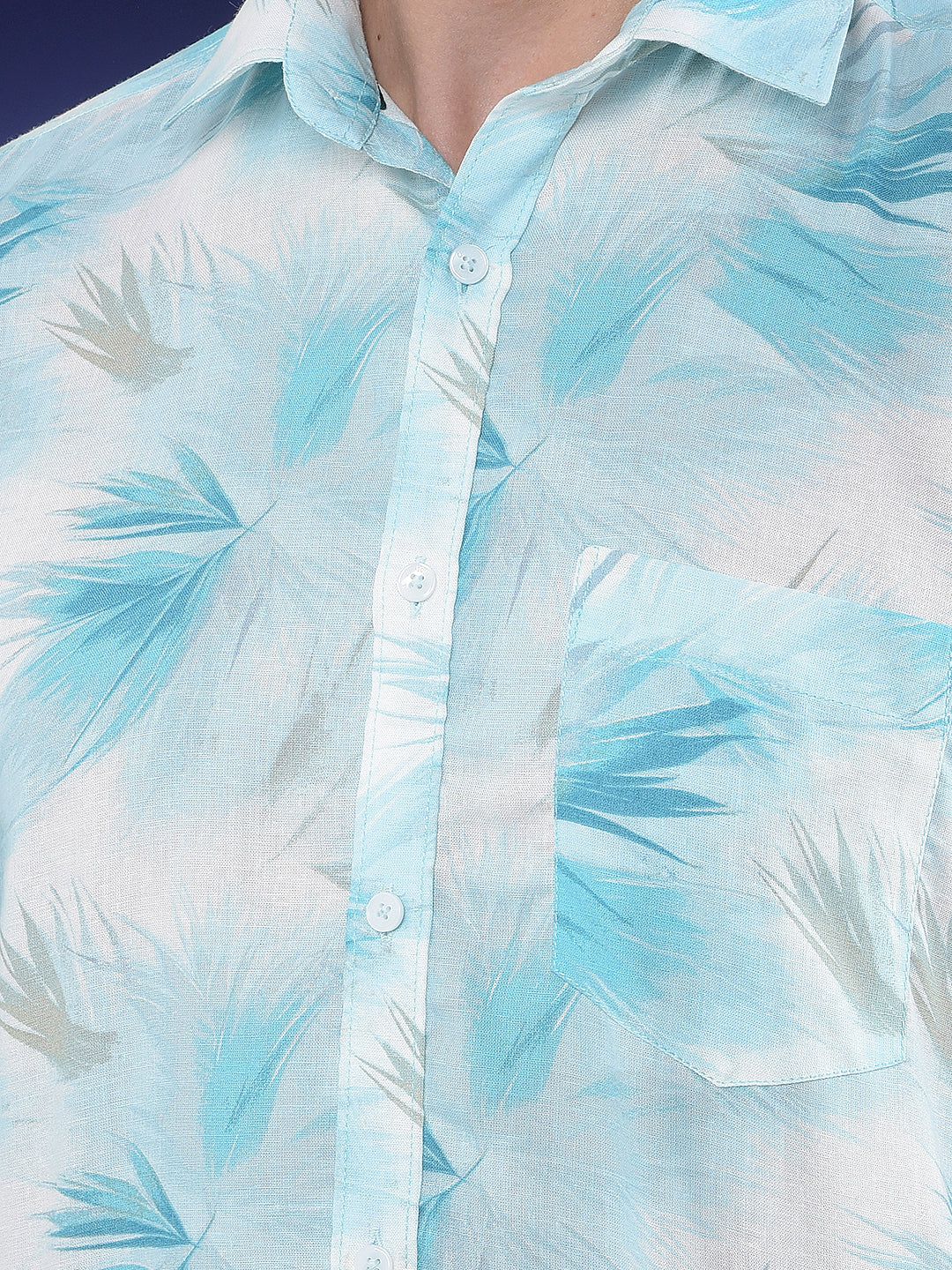 Crimsoune Club Men's Blue Floral Print Linen Shirt combines comfort and style with its lightweight linen fabric. Featuring a floral pattern and button closure, it ensures a relaxed yet polished casual look.