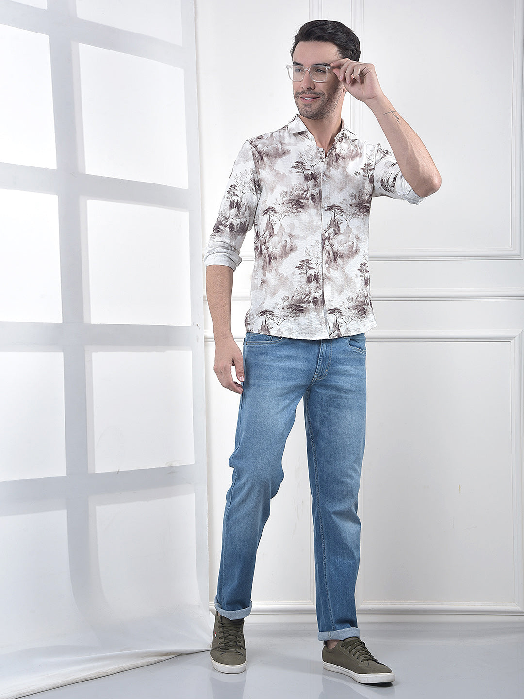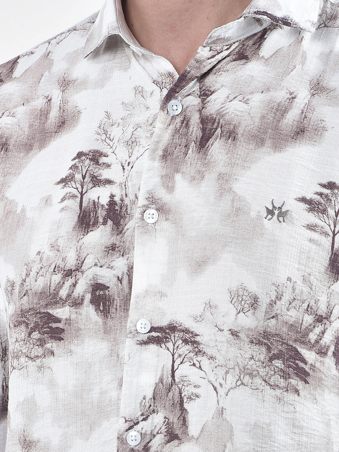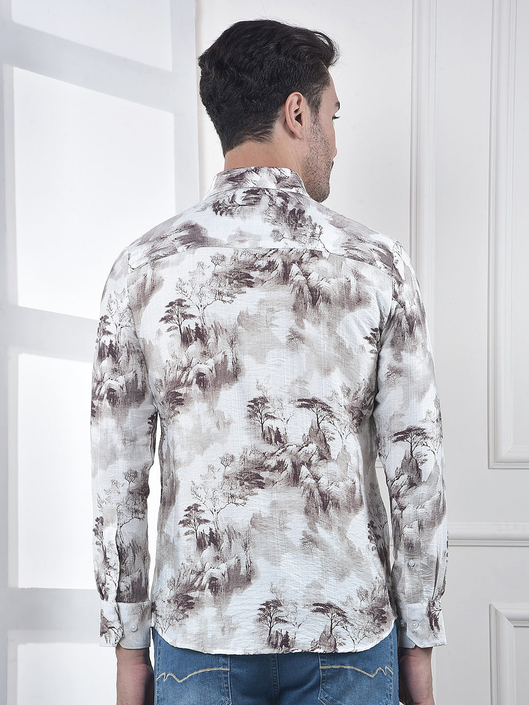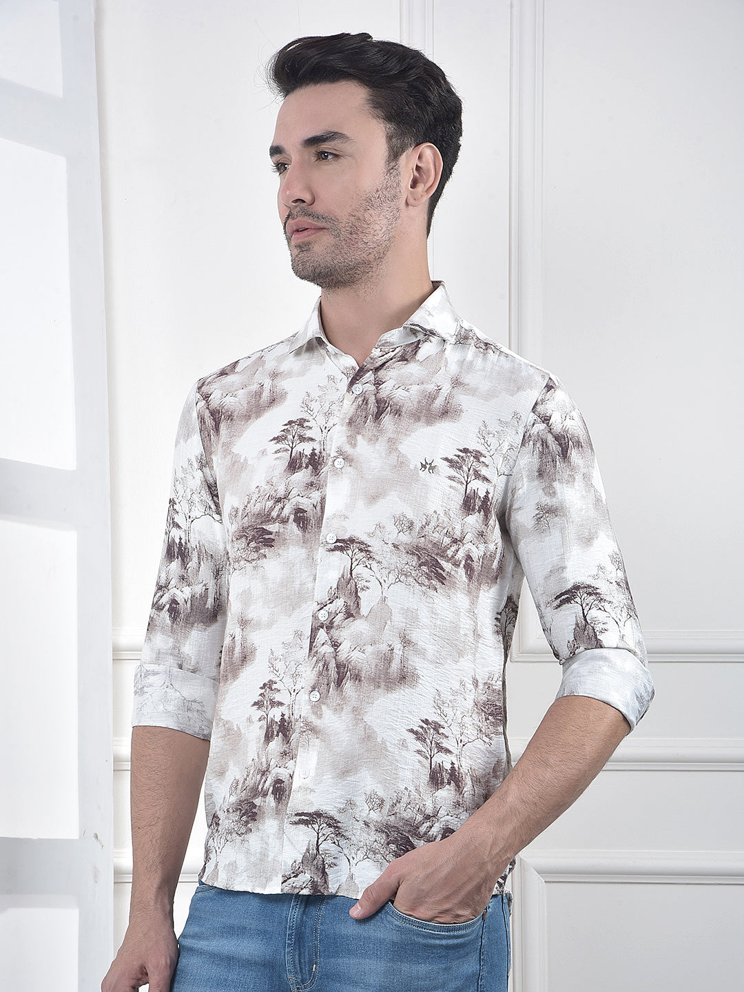 Men's Brown Floral Print Shirt By Crimsoune Club. Crafted From Breathable Fabric With Collared Neck And Button-Down Closure. Ideal For Casual Or Semi-Formal Wear.