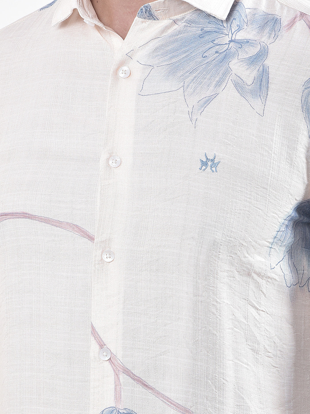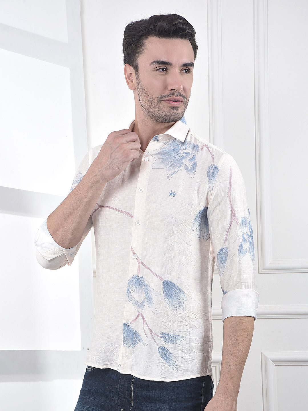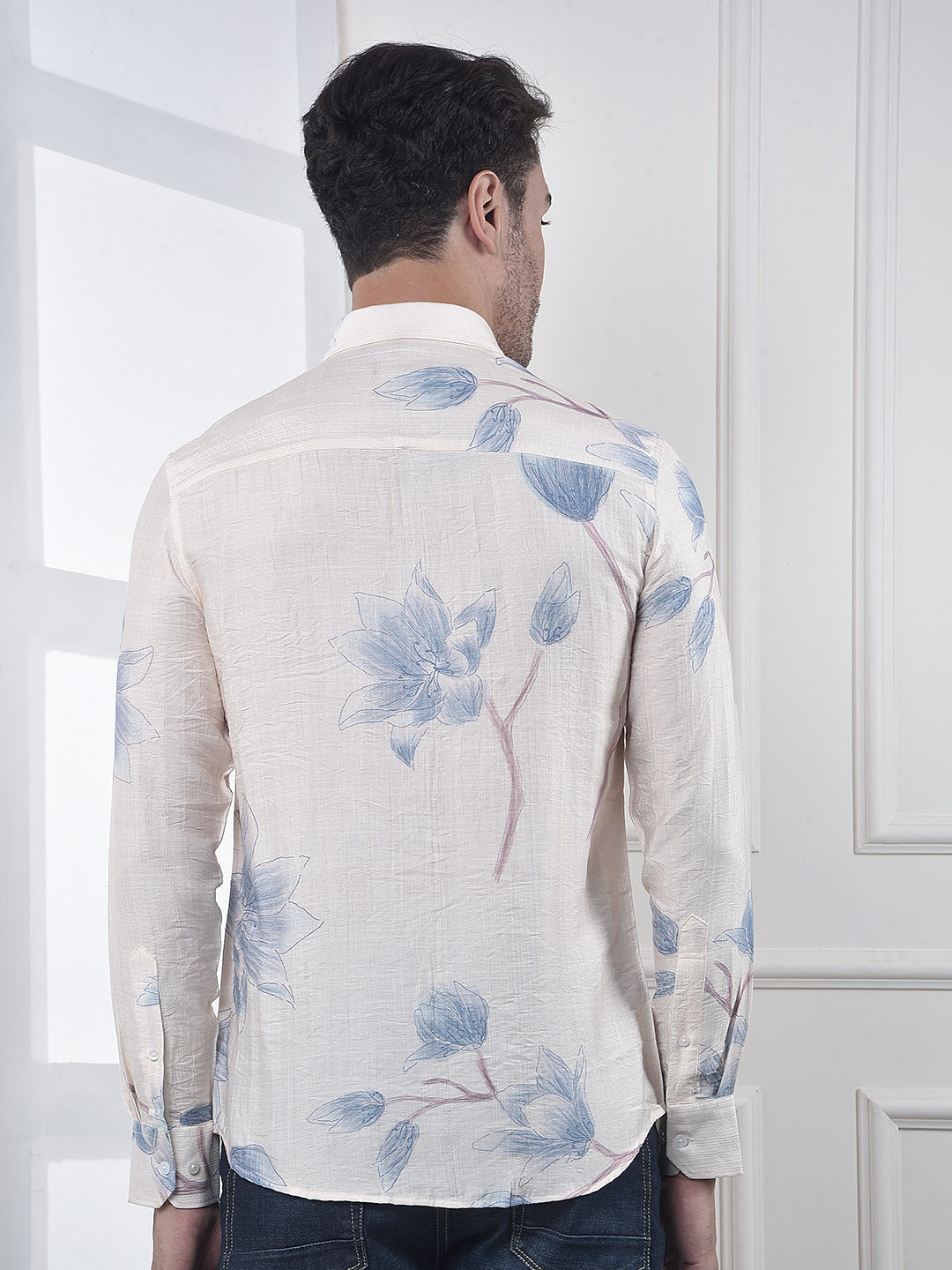 Men's Beige Floral Print Shirt By Crimsoune Club. Crafted In Breathable Fabric With Full Sleeves And Classic Collar. Ideal For Casual Or Semi-Formal Styling.