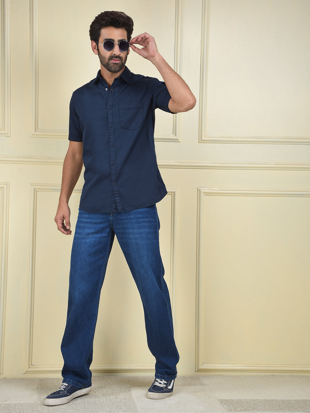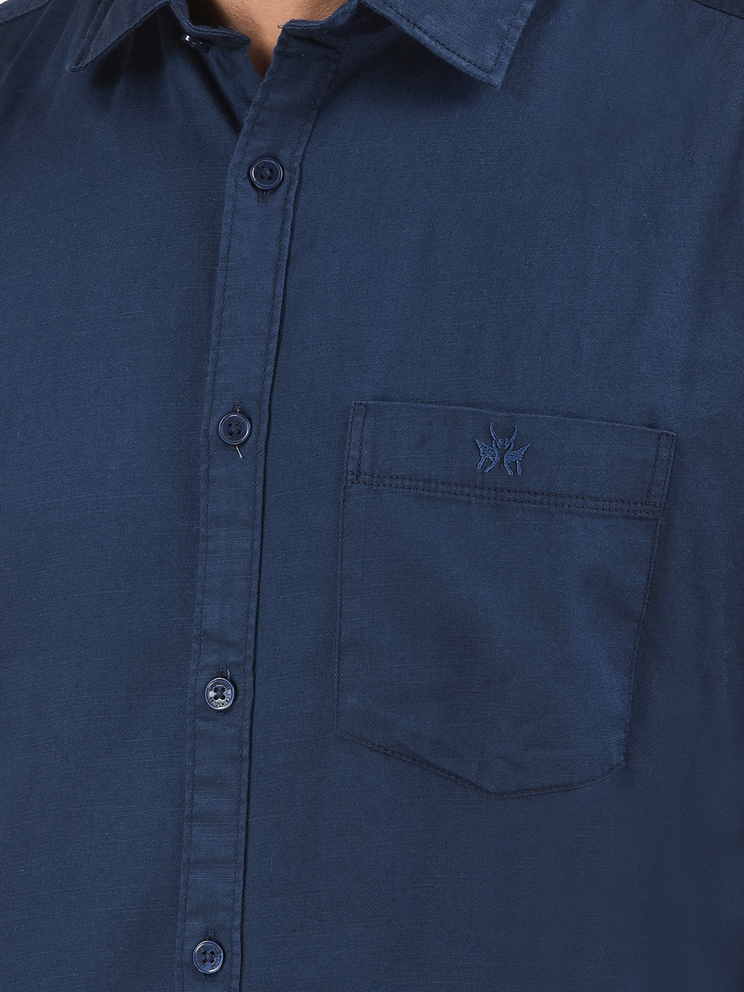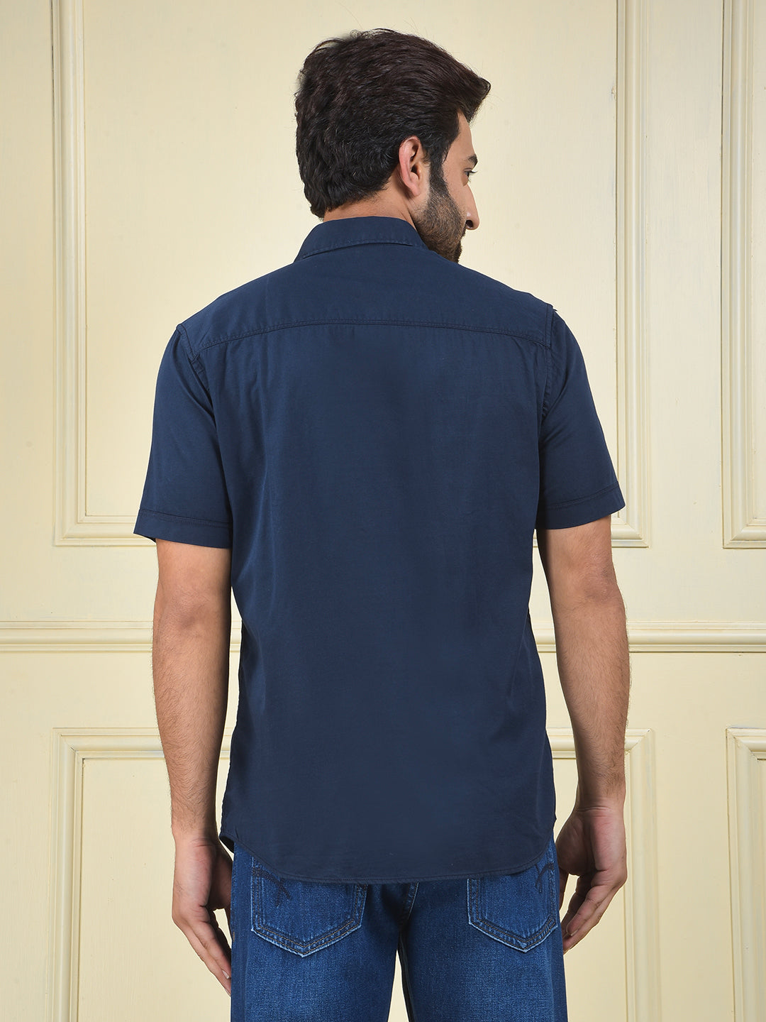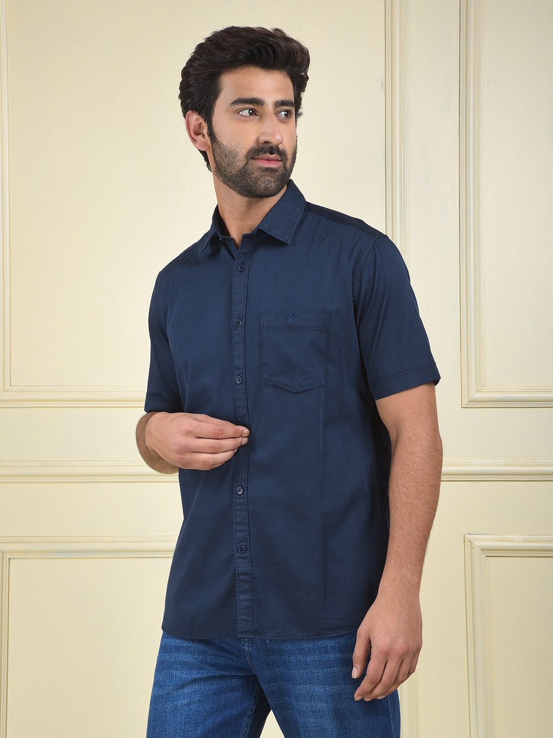 A navy blue shirt, a versatile and stylish piece that offers a clean, neat look and is perfect for both casual and semi-formal events.
