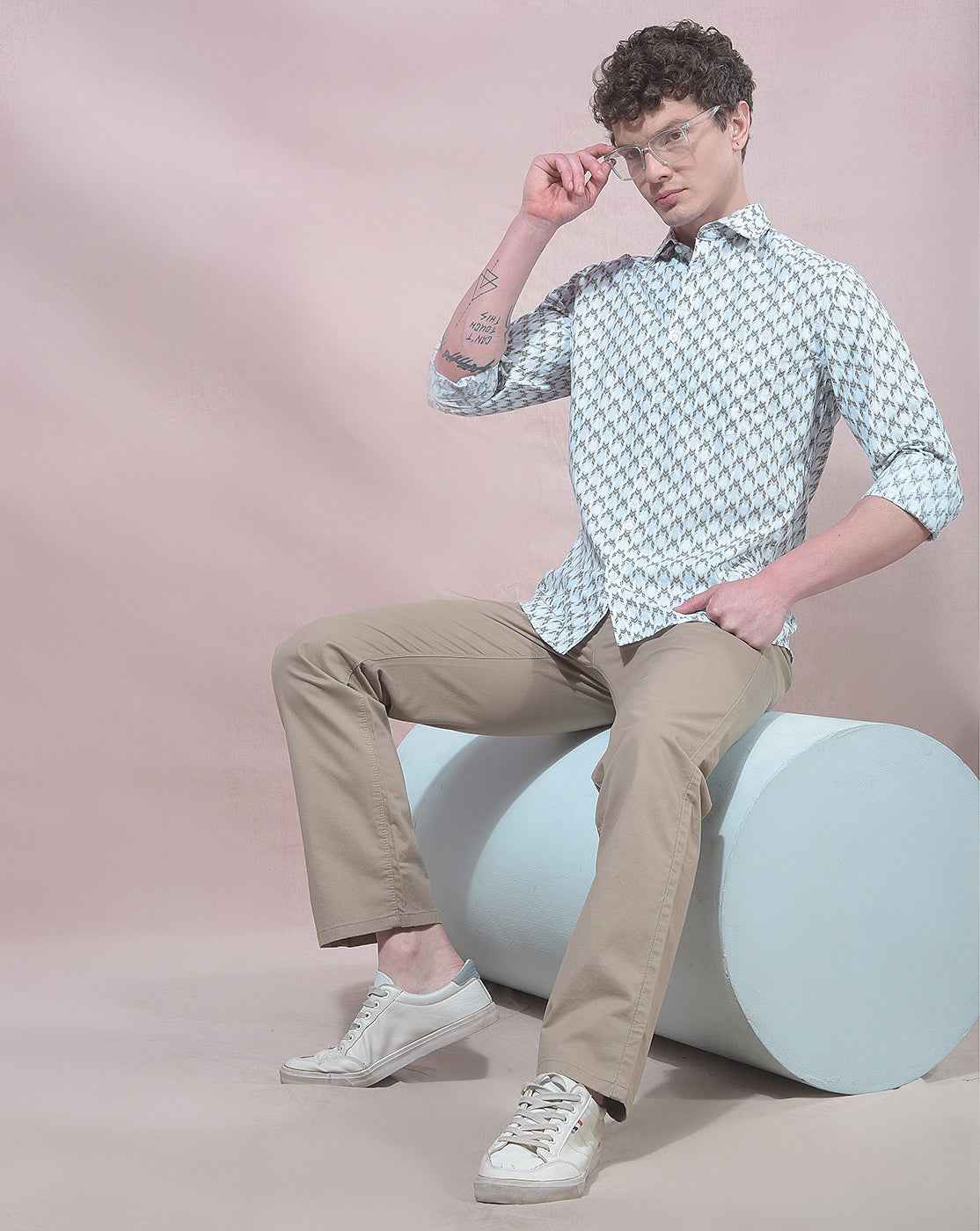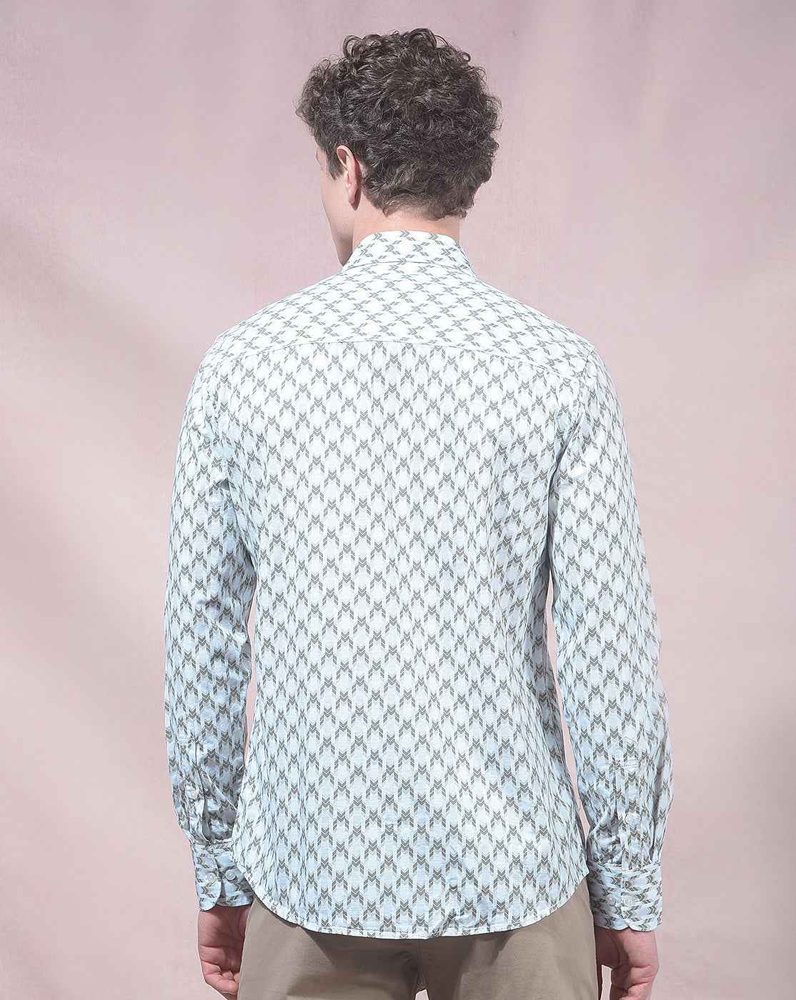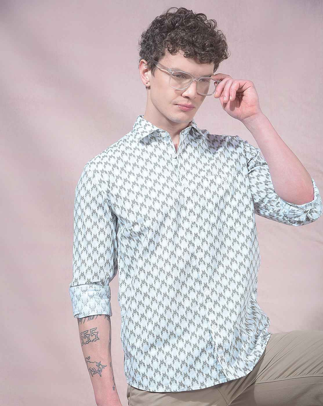 Refresh your collection with this green printed shirt for men. The vibrant shade and unique patterns offer a contemporary look, ensuring you remain stylish and confident during your casual outings or weekend brunch dates.