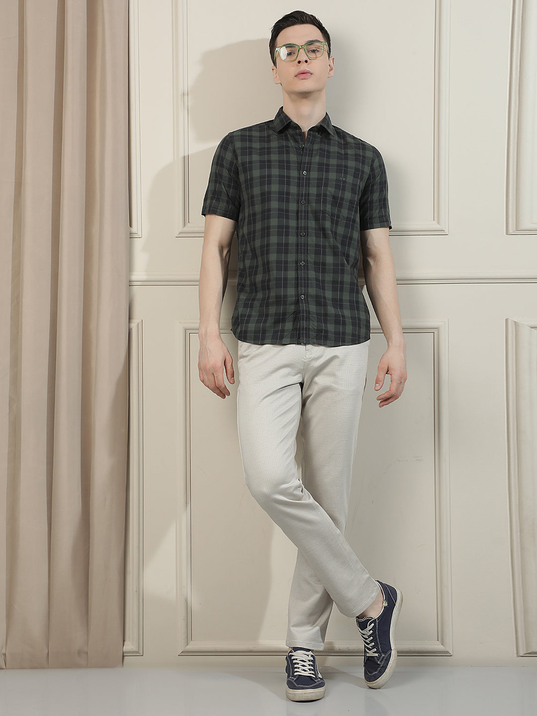 Green Checked 100% Cotton Shirt-Men Shirts-Crimsoune Club