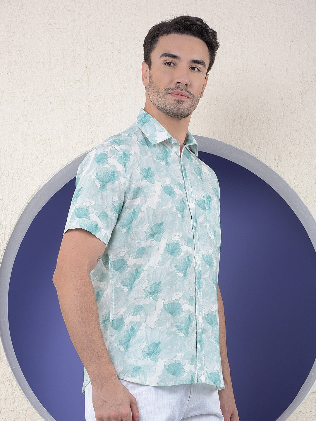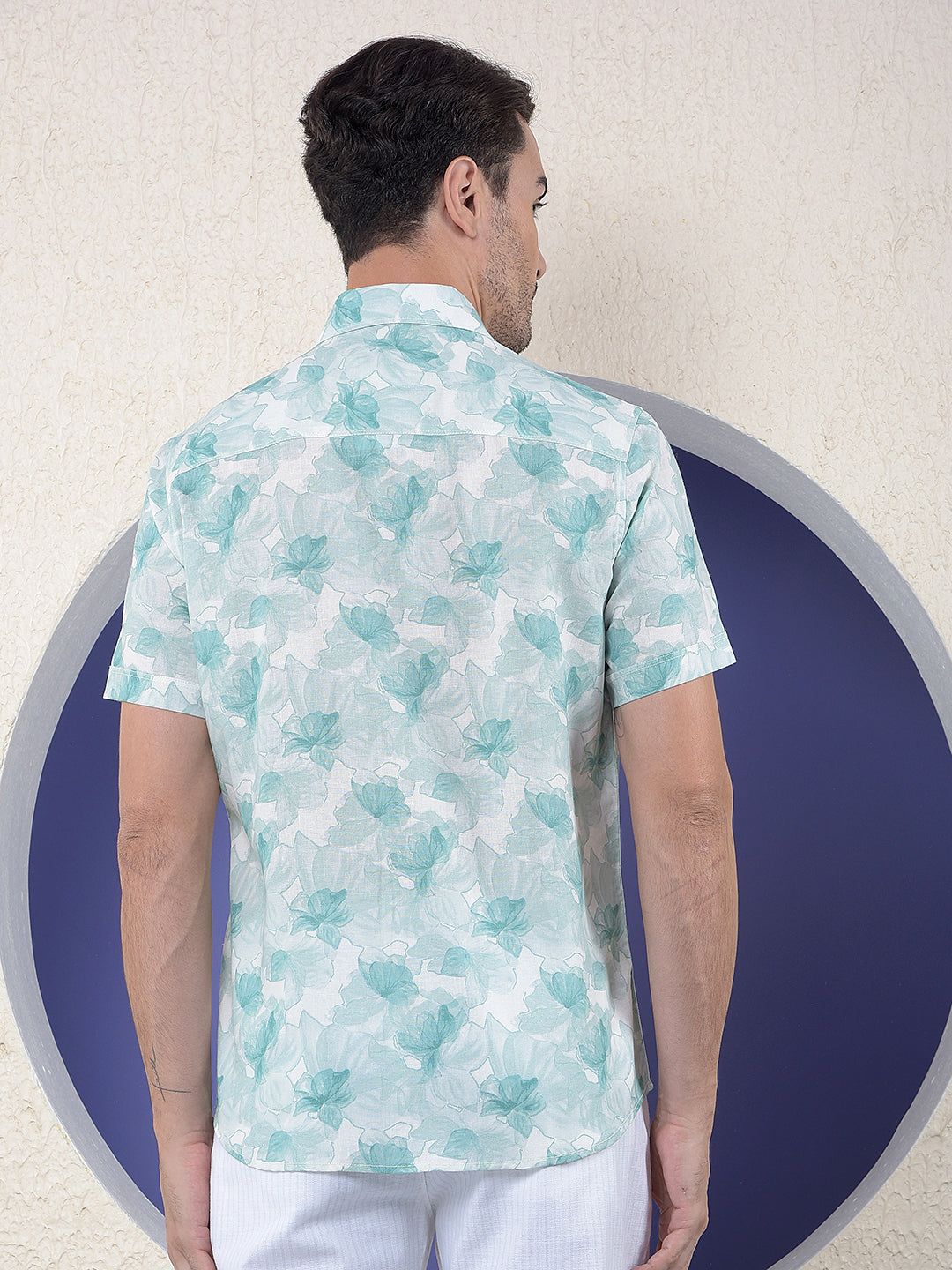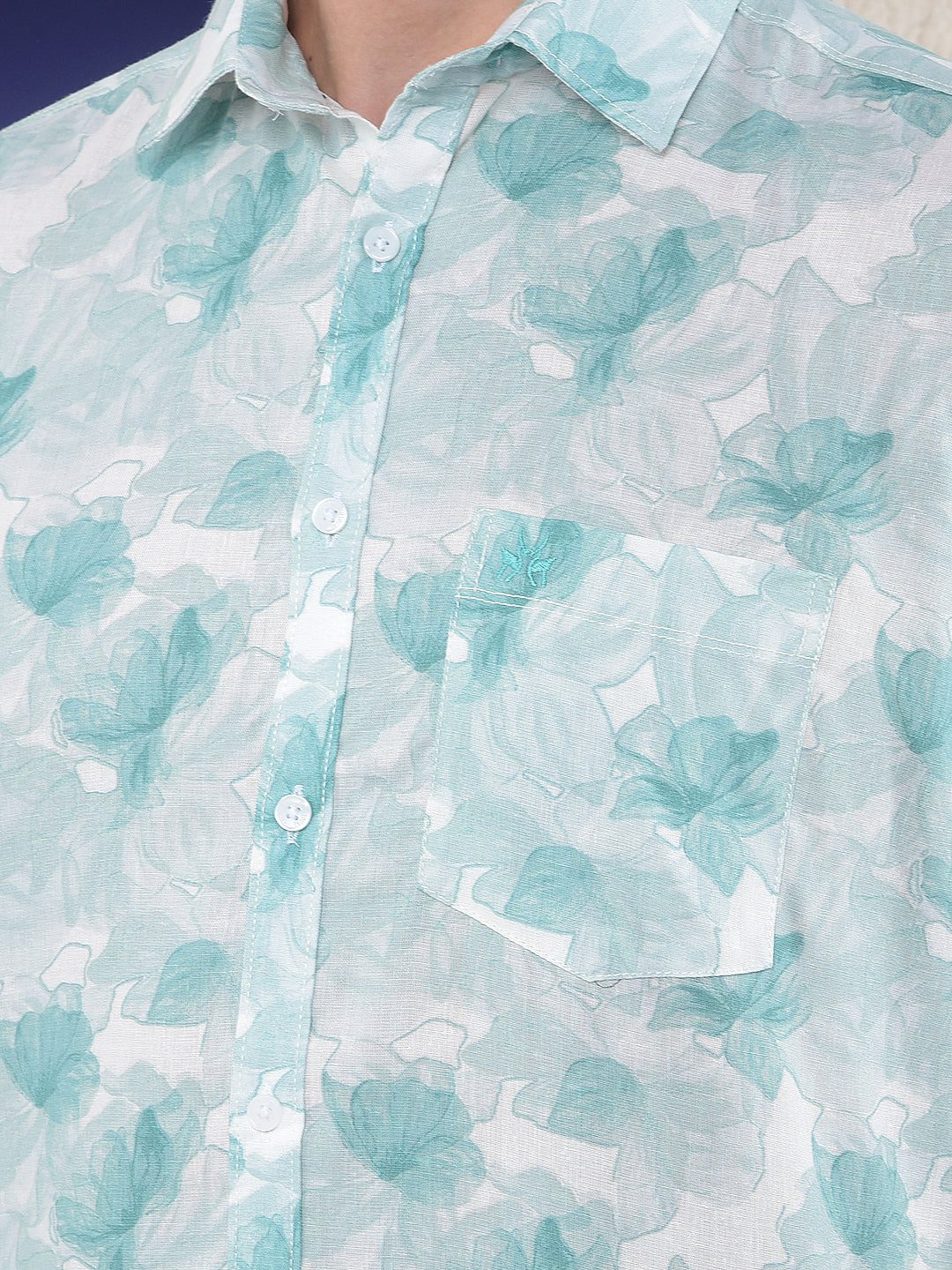 Green Floral Print Linen Shirt
