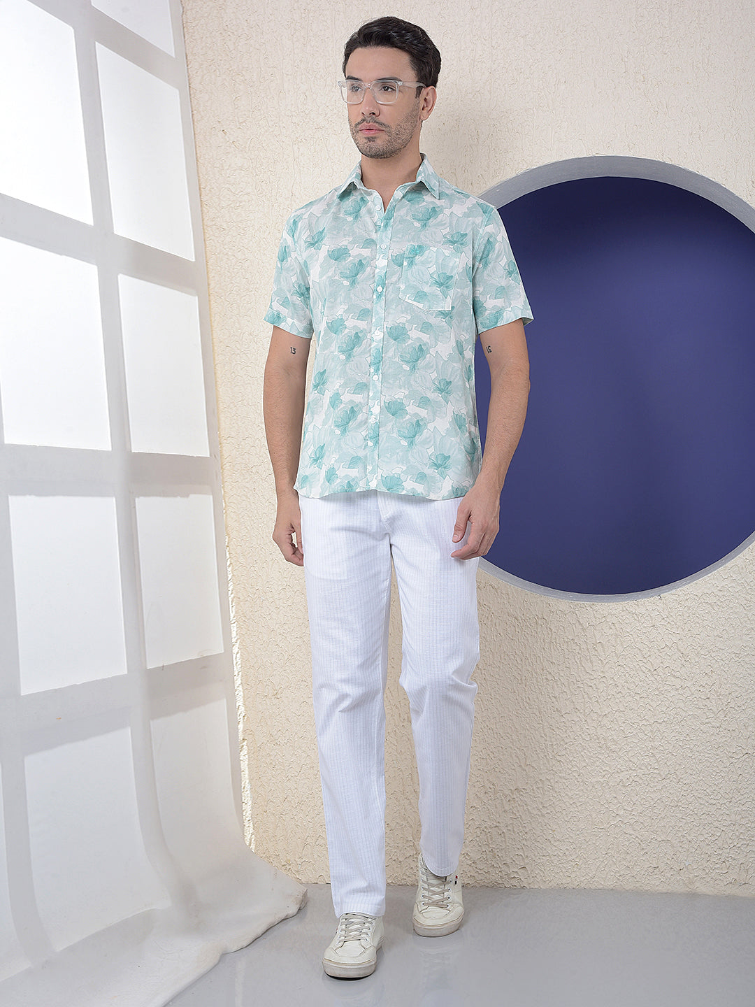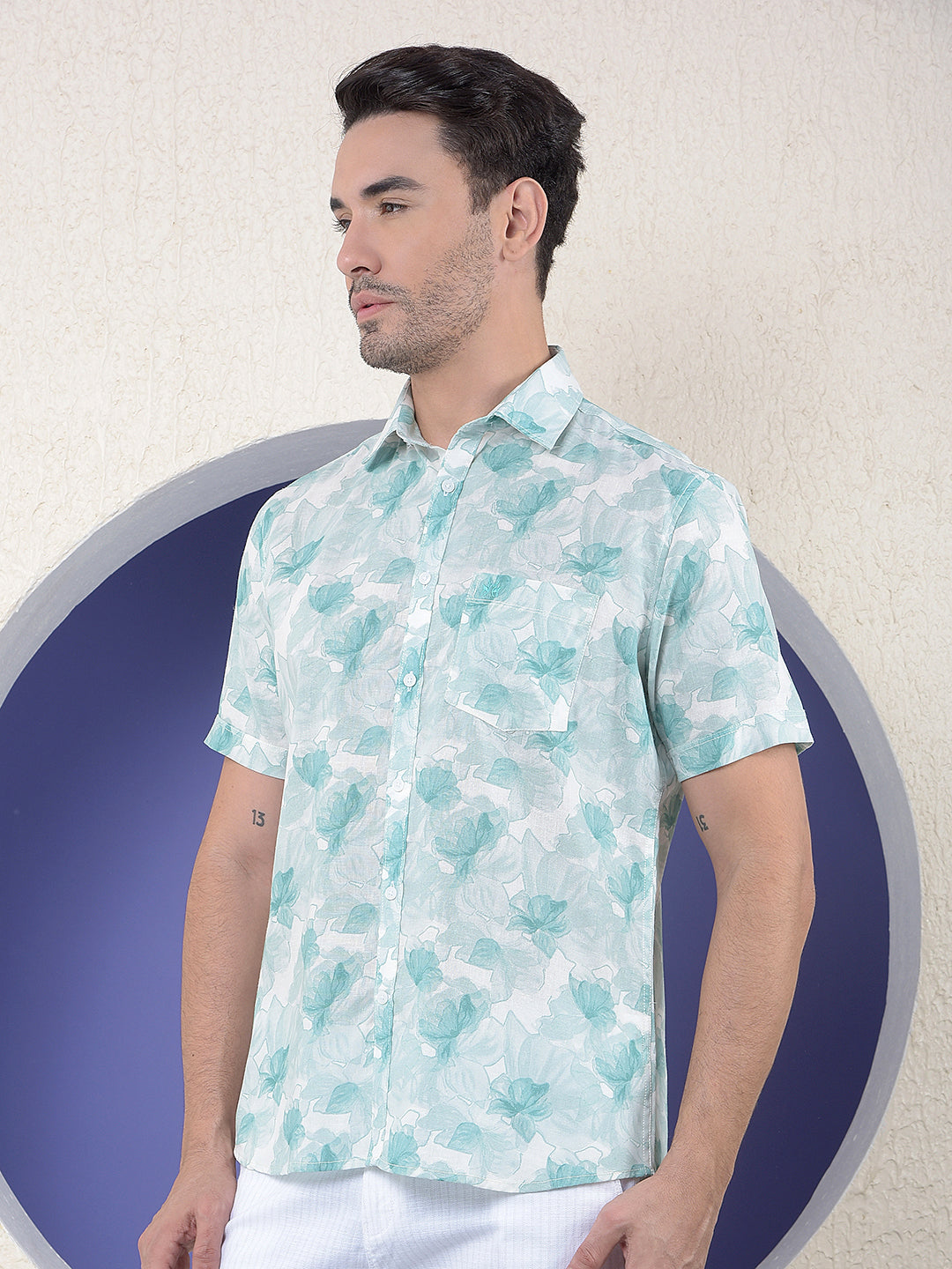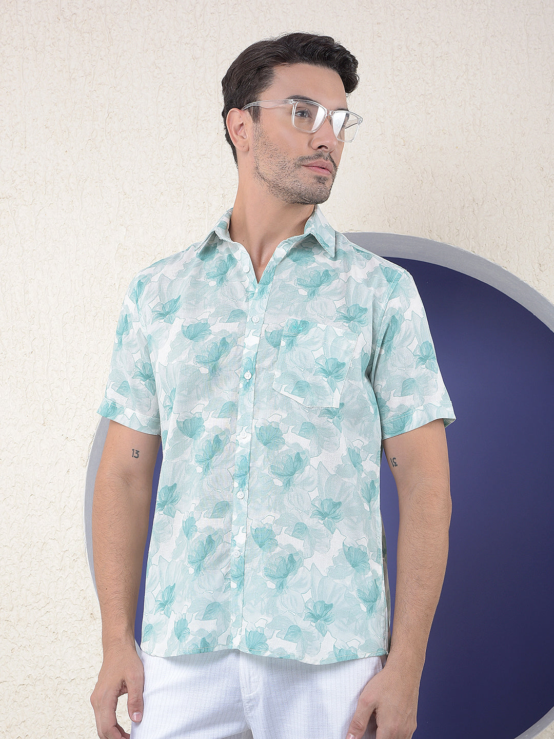 Green Floral Print Linen Shirt