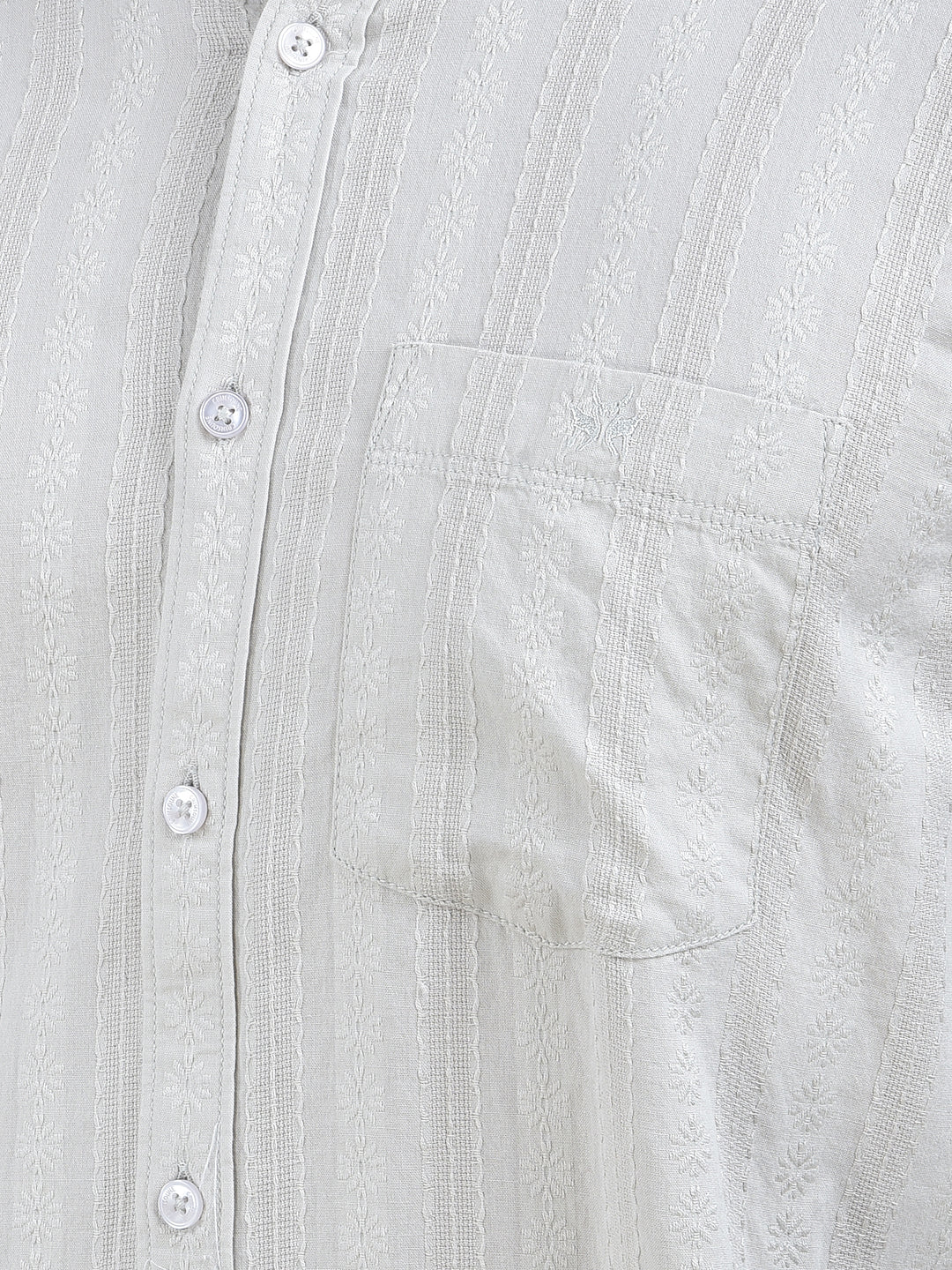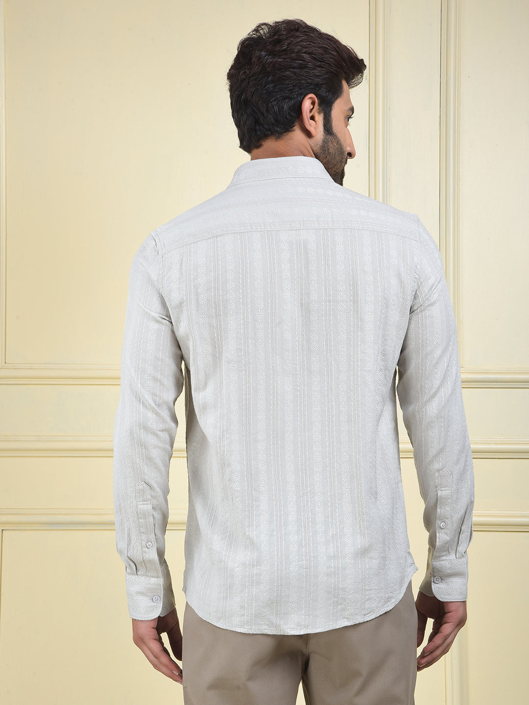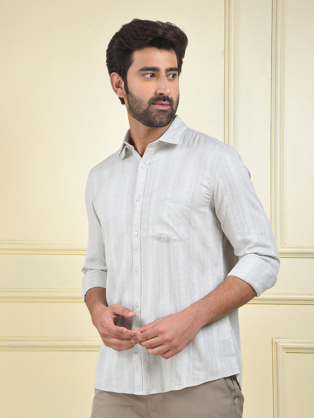 A grey shirt with vertical stripes, crafted from pure cotton for a comfortable and breathable fit, a versatile piece for a modern, neat look.