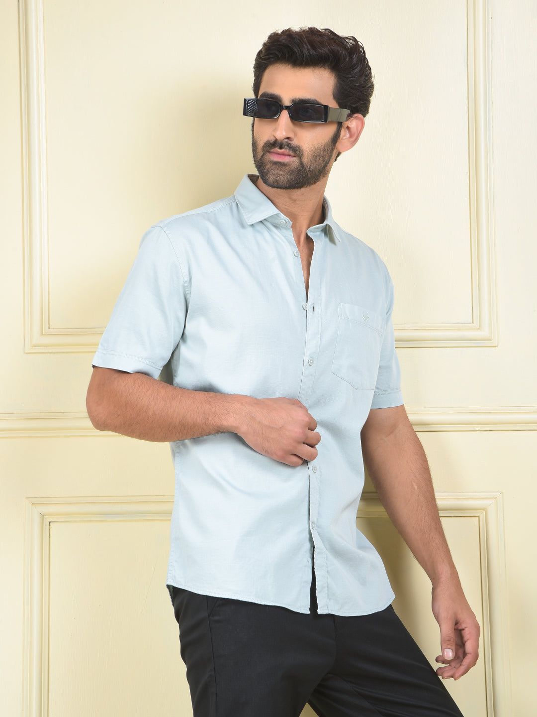A green shirt, a stylish and versatile piece that adds an earthy tone and a fresh feel to a casual outfit, perfect for everyday wear.
