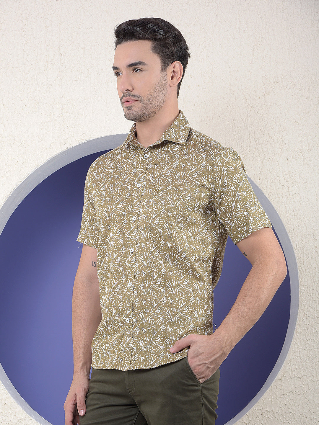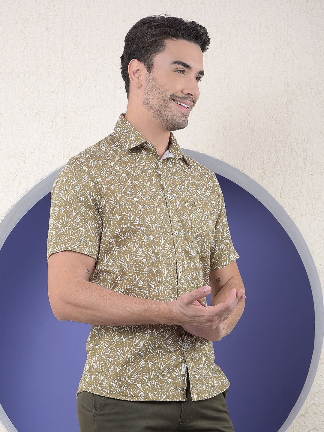 This Crimsoune Club men's olive shirt, made entirely of cotton, features a contemporary print. The earthy tone combined with the soft fabric makes it an excellent choice for relaxed daywear.