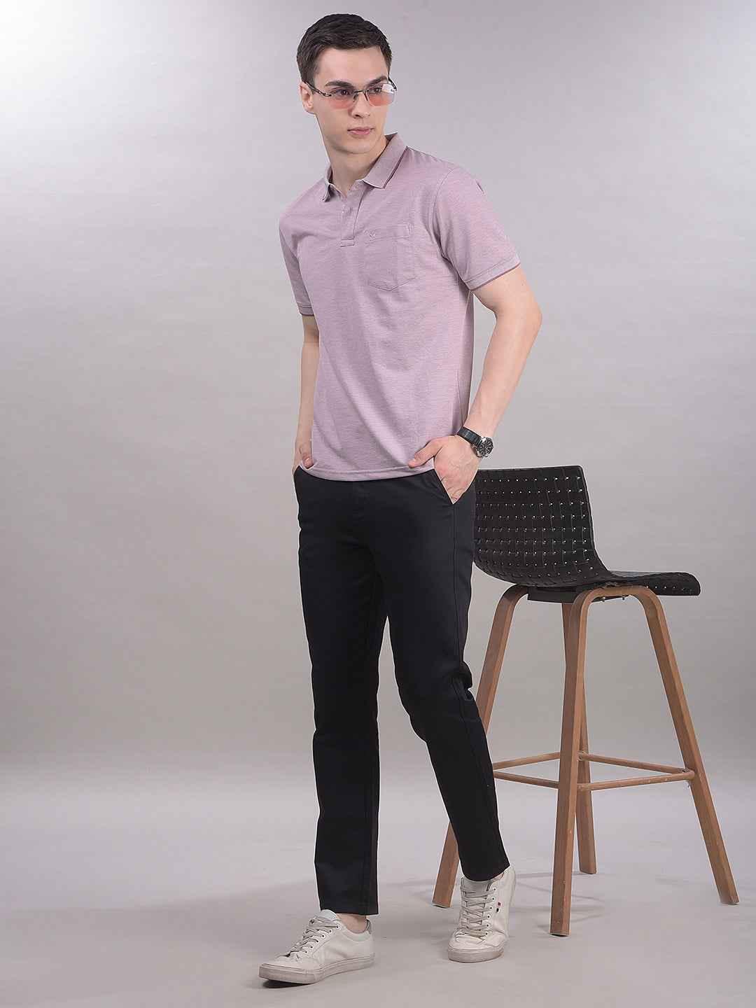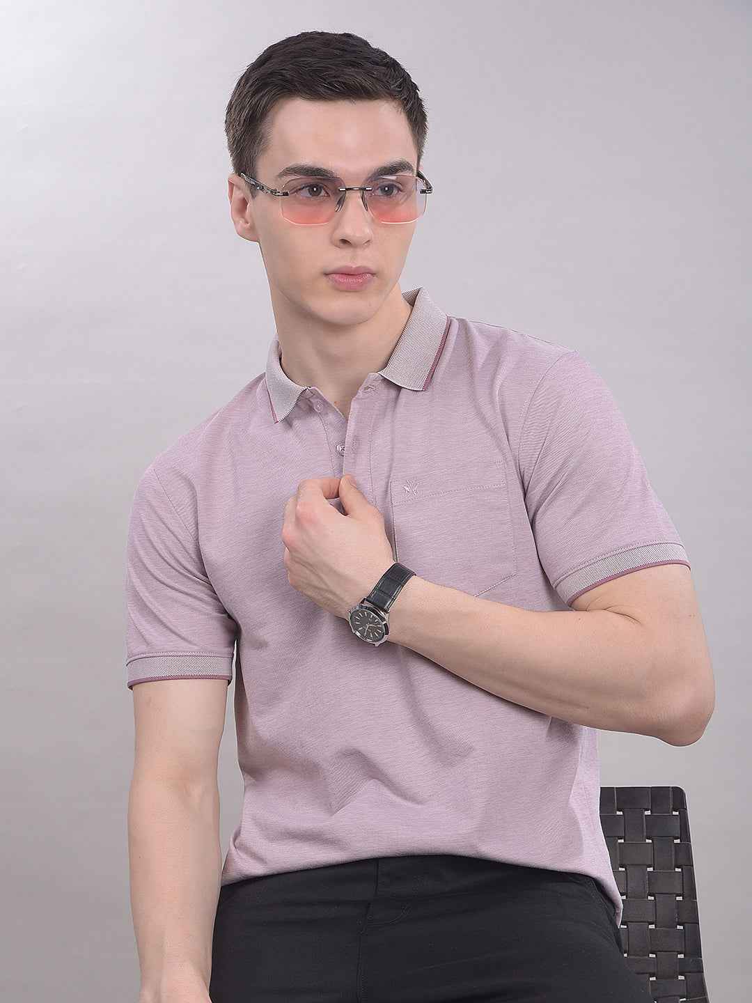 Showcase a trendy look with this pink polo neck t-shirt for men. The vibrant color and traditional design provide a youthful, energetic aesthetic, perfect for making a stylish impression during your casual outings.
