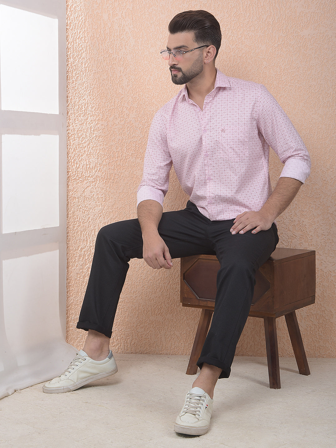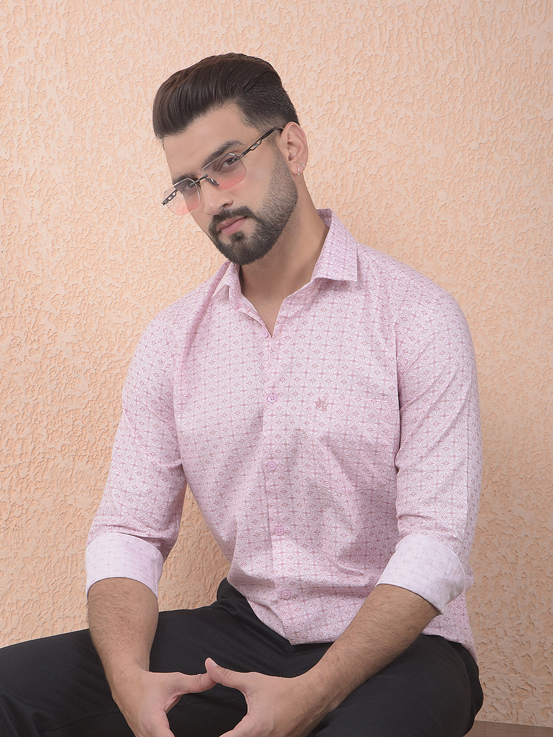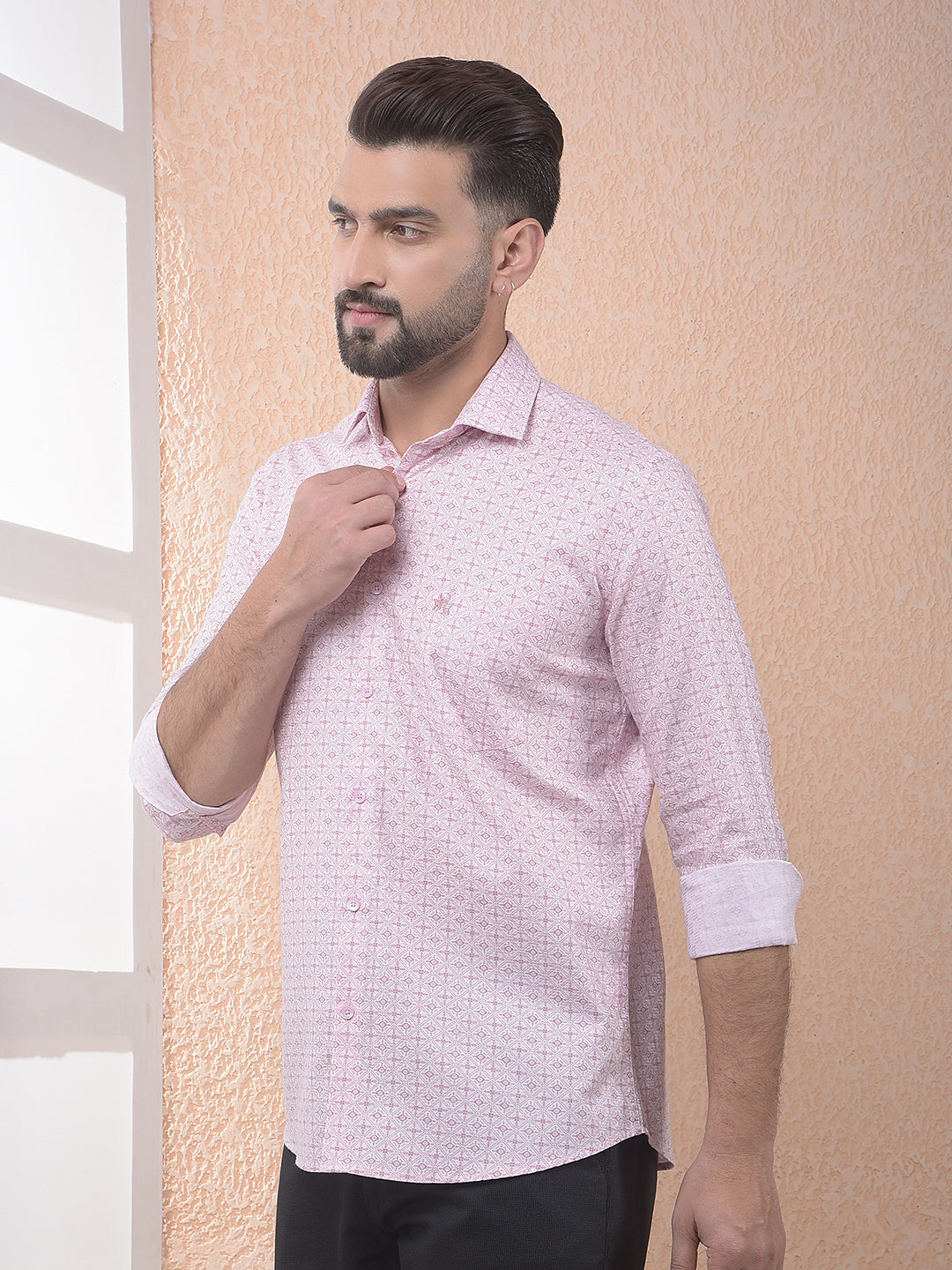 Made from breathable 100% cotton, this Crimsoune Club pink printed shirt ensures all-day comfort. The charming print and soft pink color make it an excellent choice for a fresh, smart-casual daytime look today.