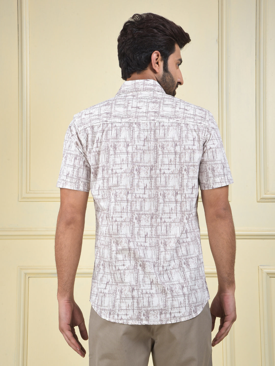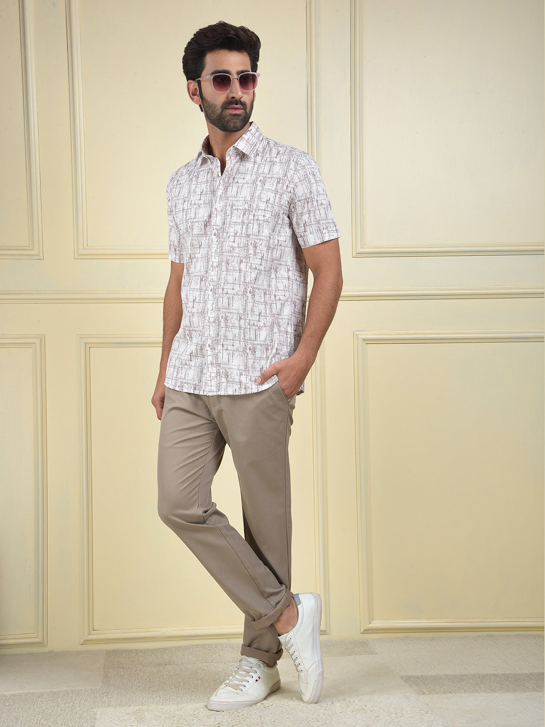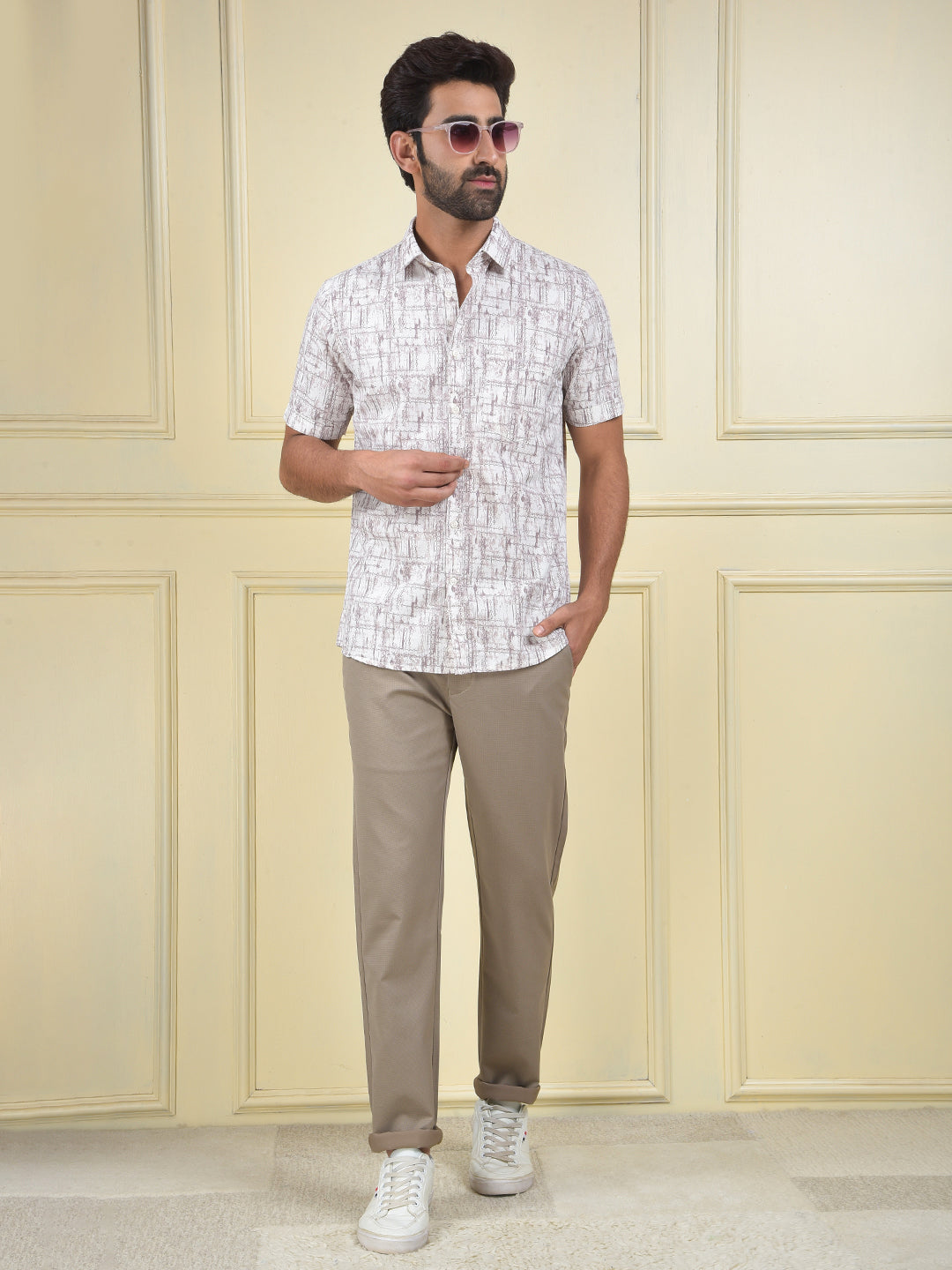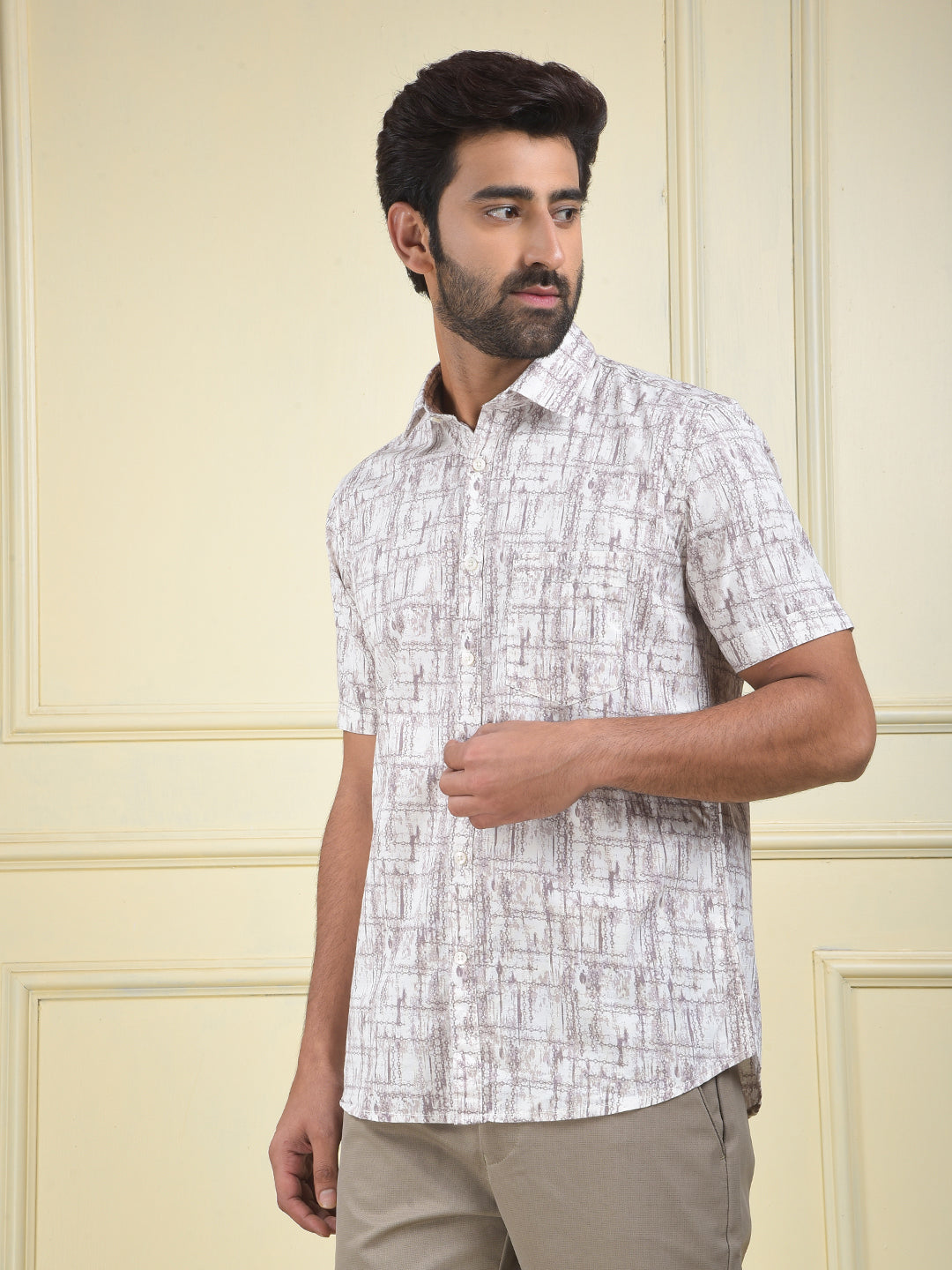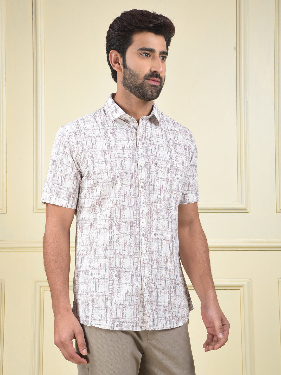 A purple printed shirt, a unique and expressive piece that adds a creative flair and a touch of color to a simple, casual look.