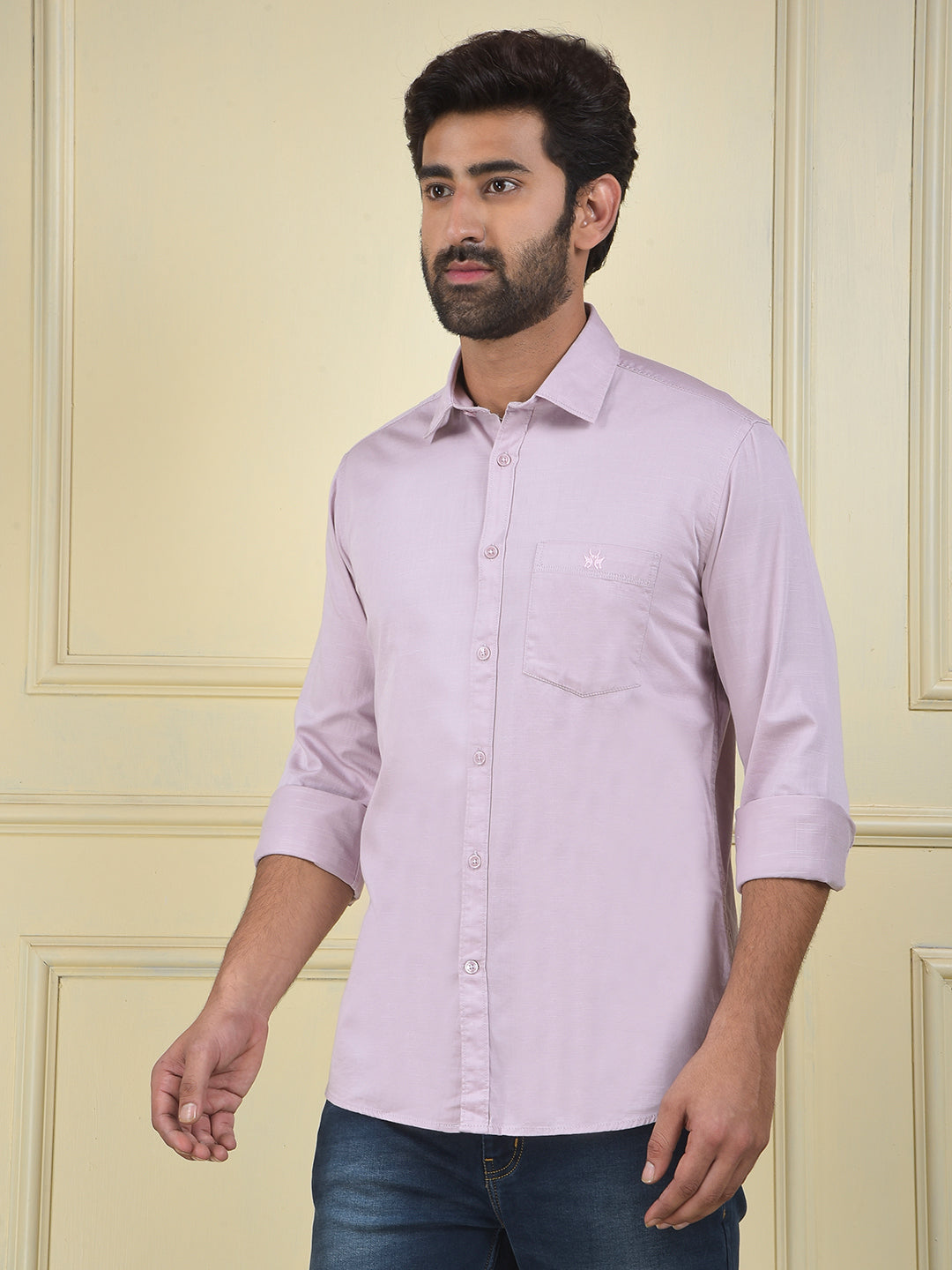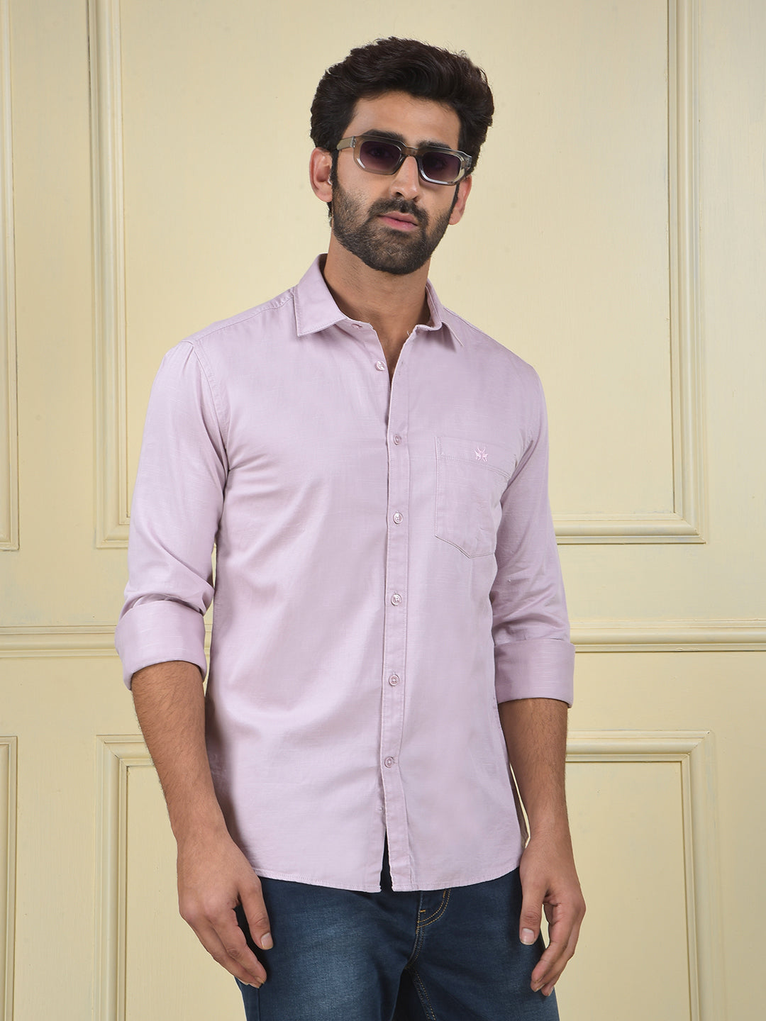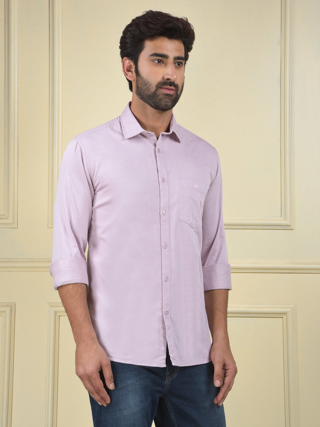 A versatile purple shirt, a stylish and comfortable piece that adds a unique and rich color to any wardrobe for a modern, refined look.
