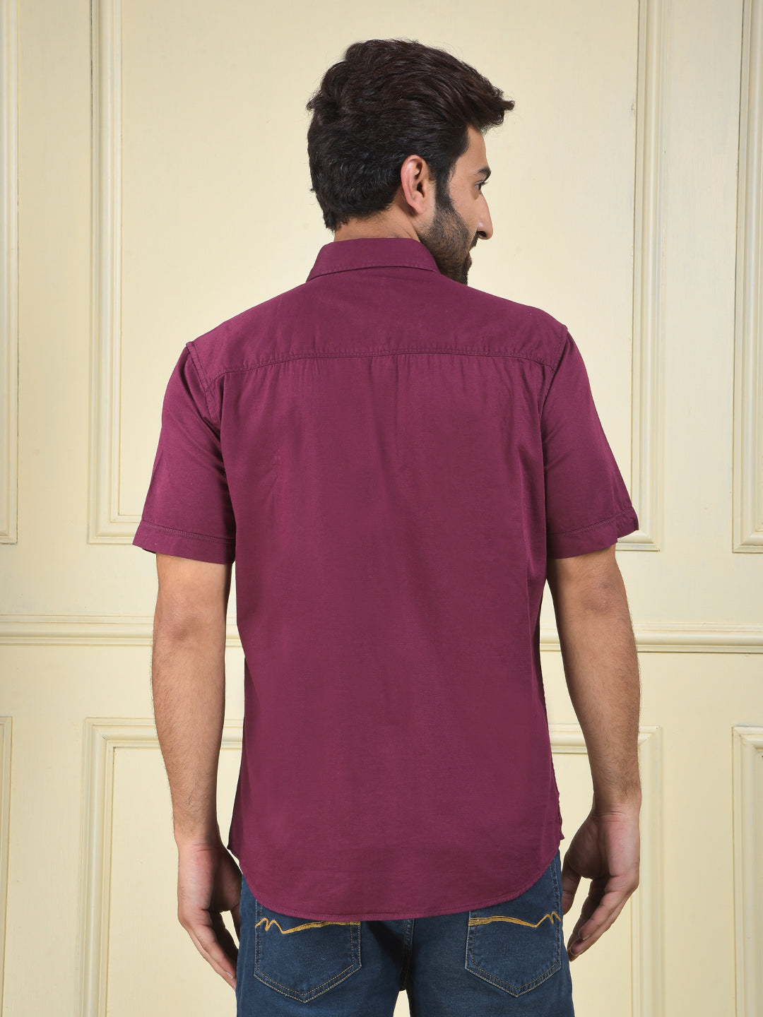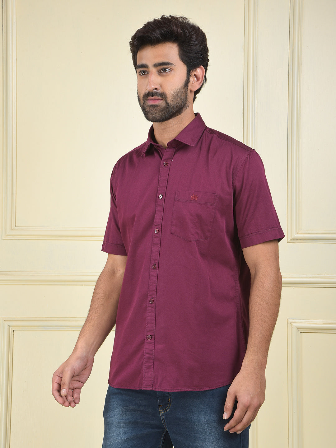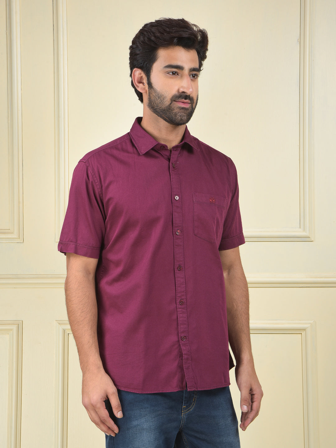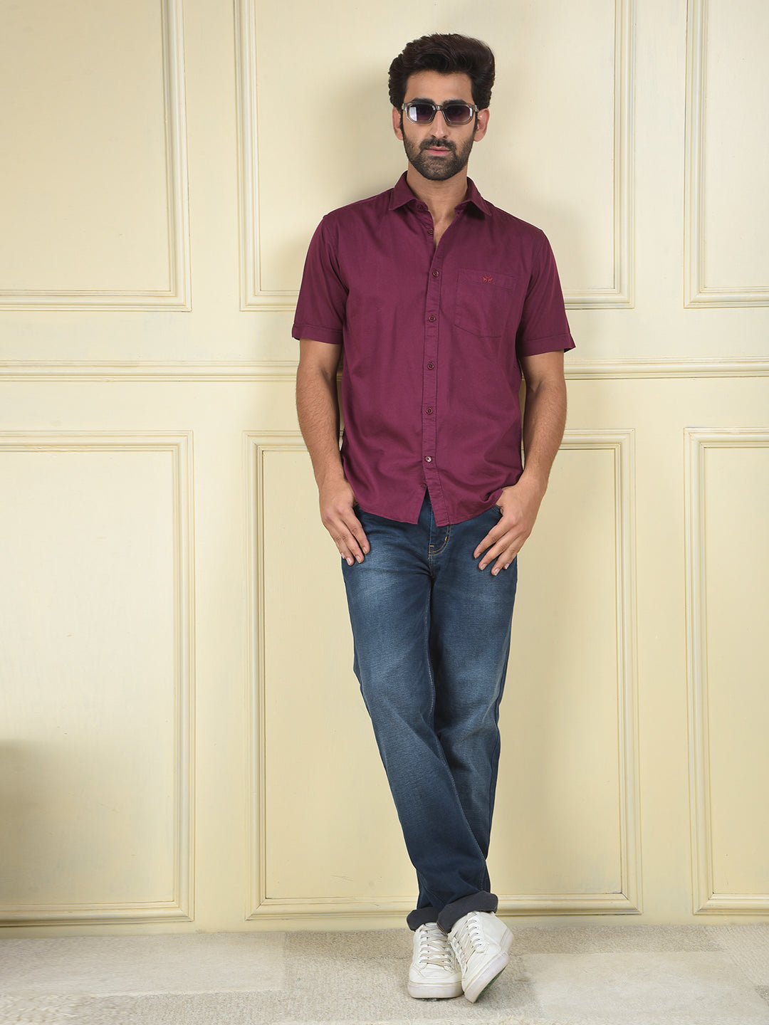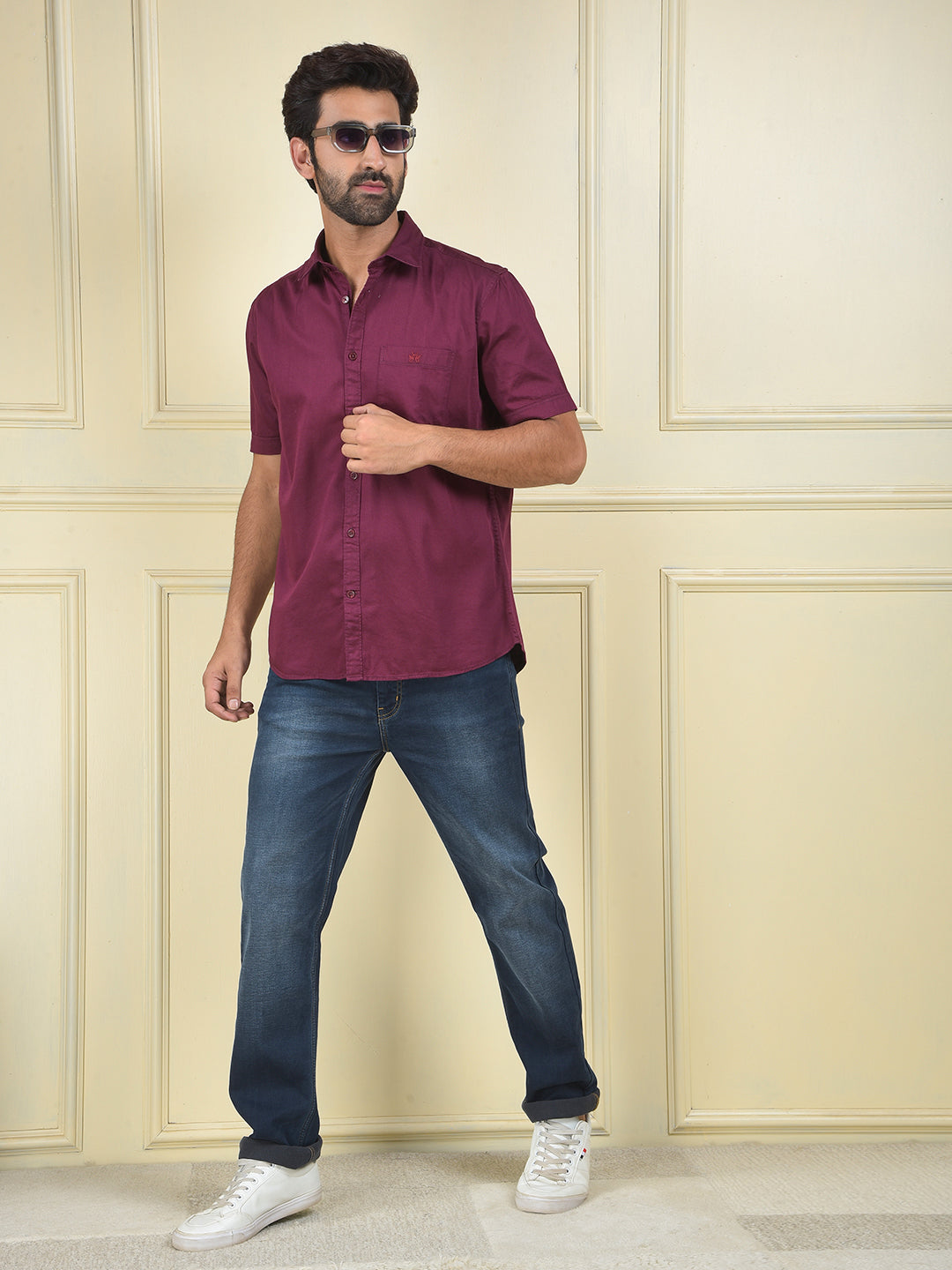 A maroon shirt, offering a rich and sophisticated color that adds a touch of elegance and warmth to a casual or semi-formal outfit.