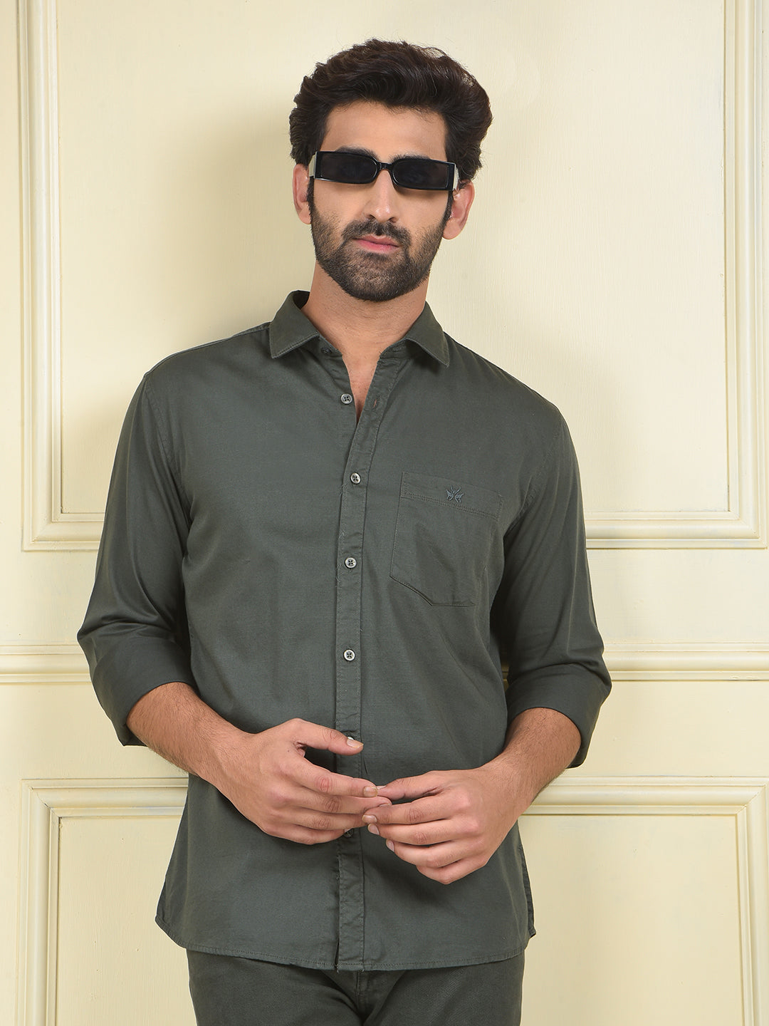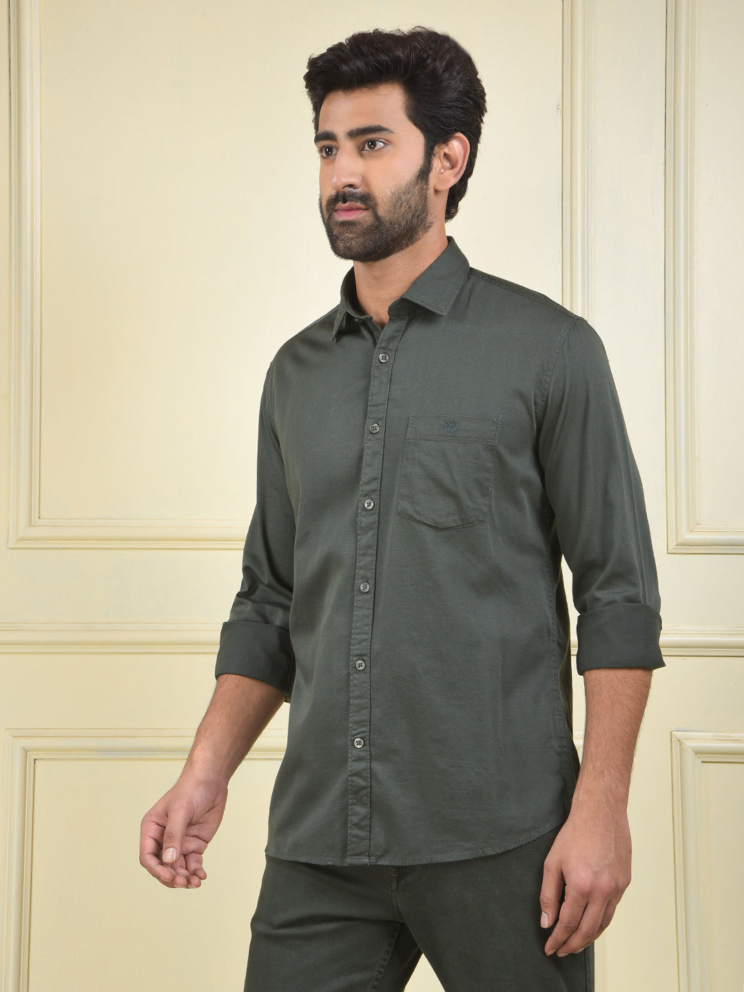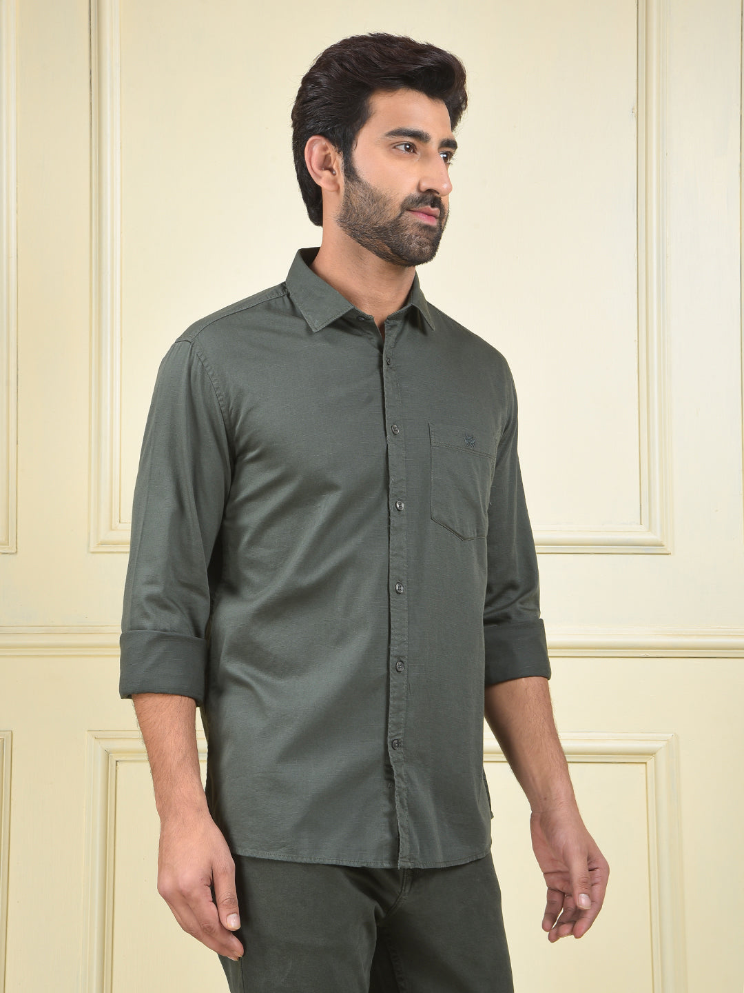This green shirt is a comfortable and versatile staple that offers a fresh color and a timeless look perfect for various casual settings.