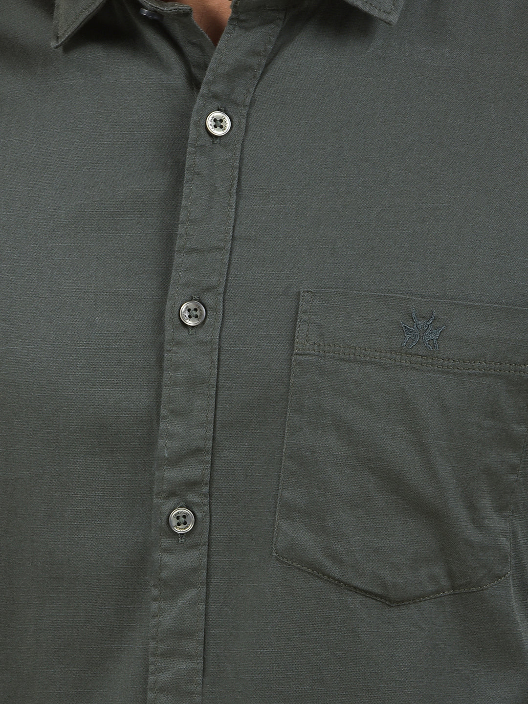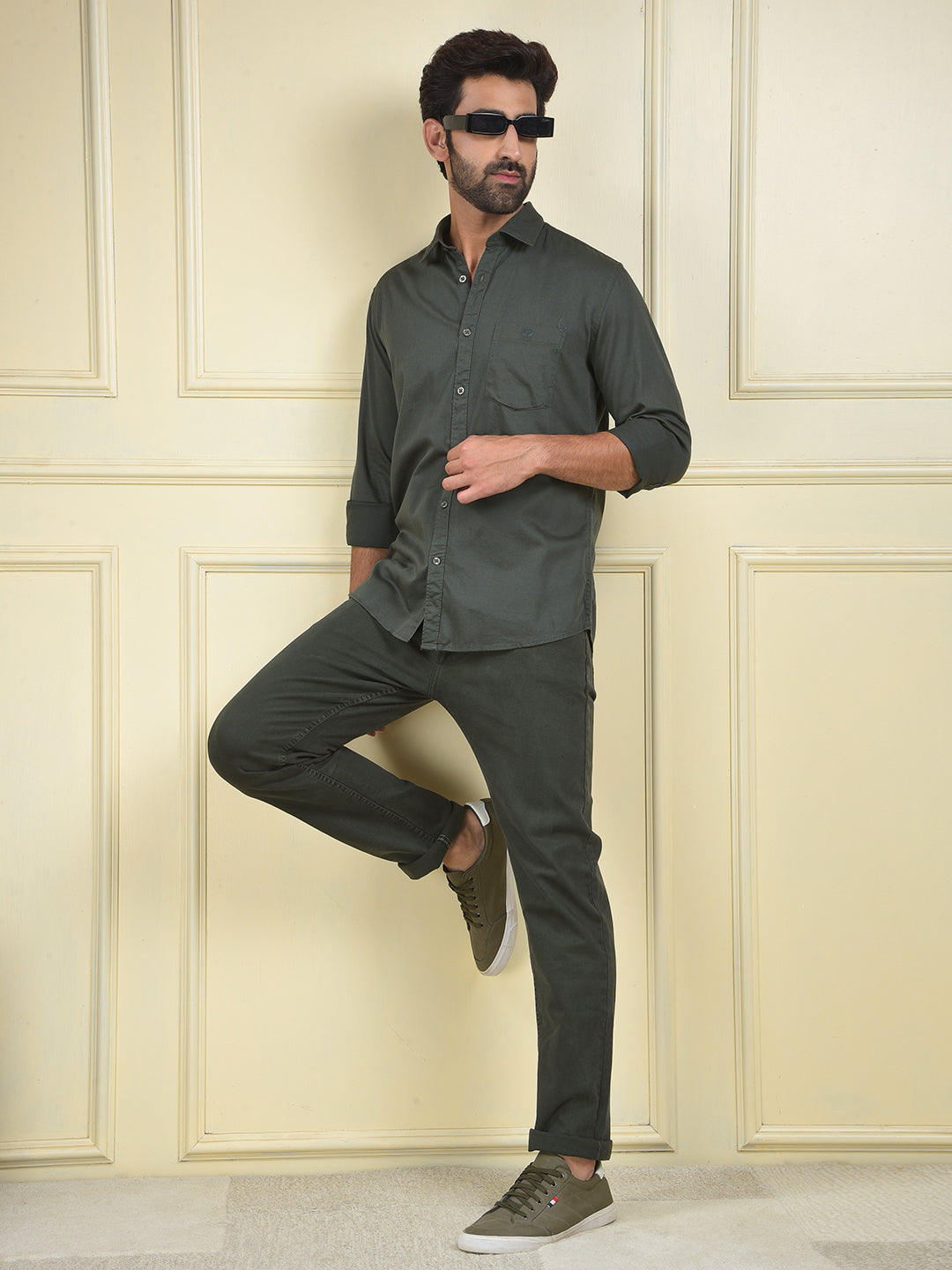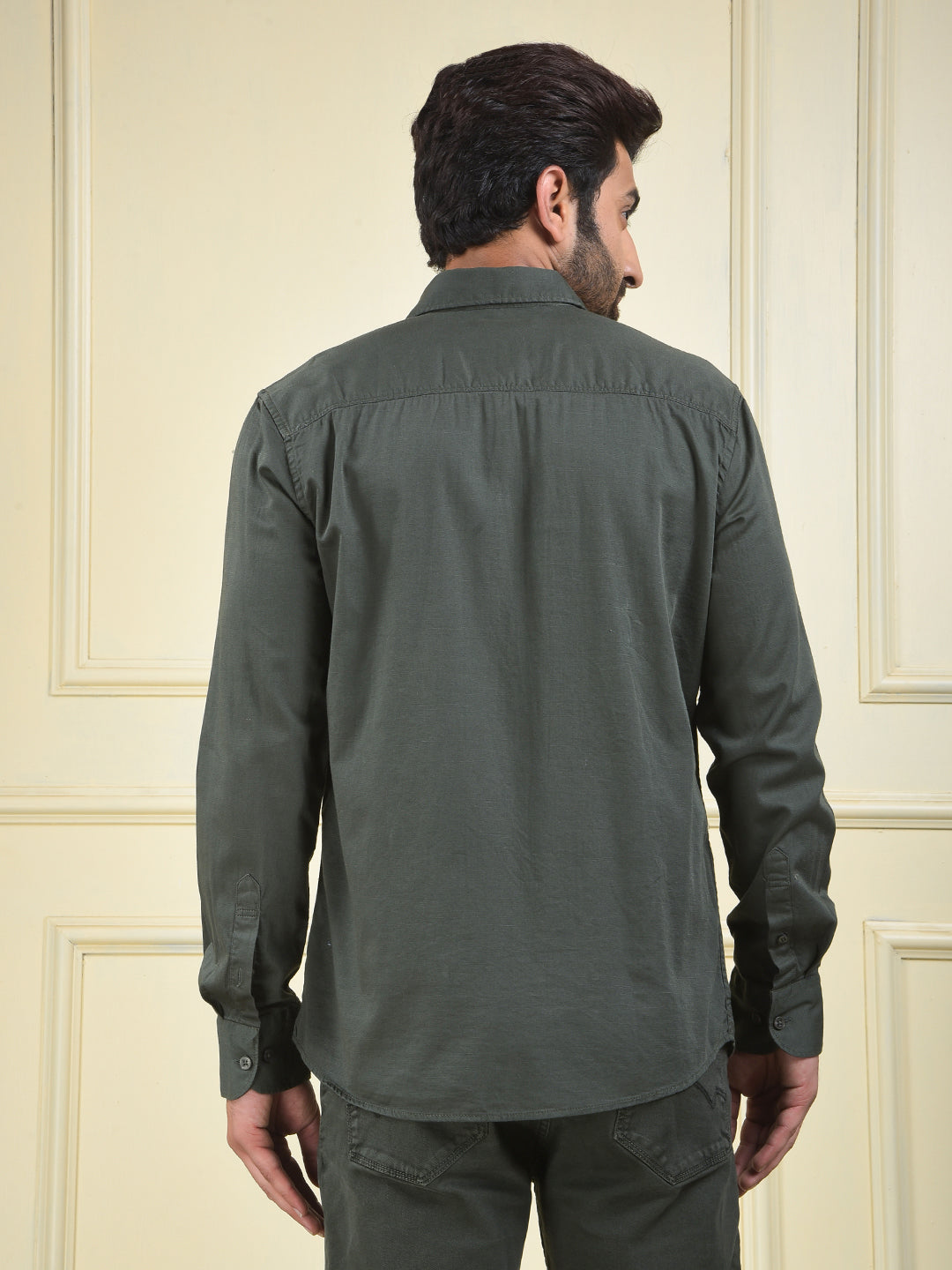 This green shirt is a comfortable and versatile staple that offers a fresh color and a timeless look perfect for various casual settings.