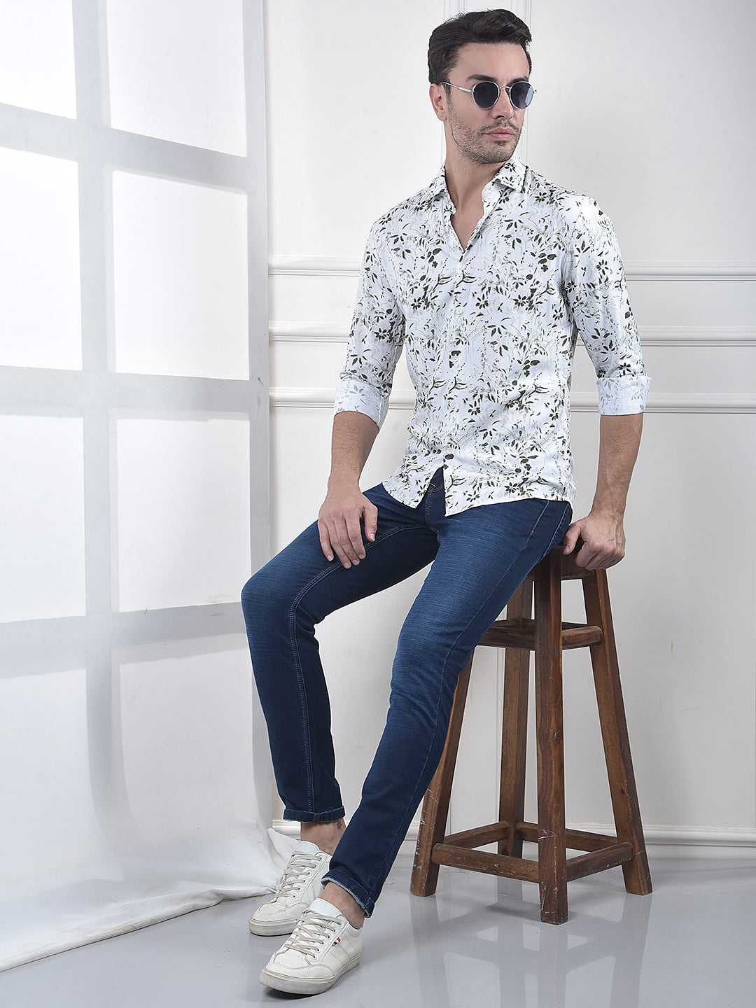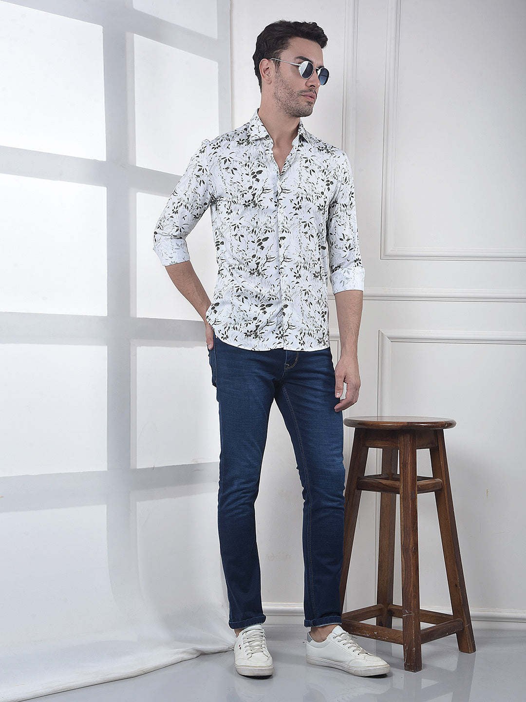 White Floral Print Shirt