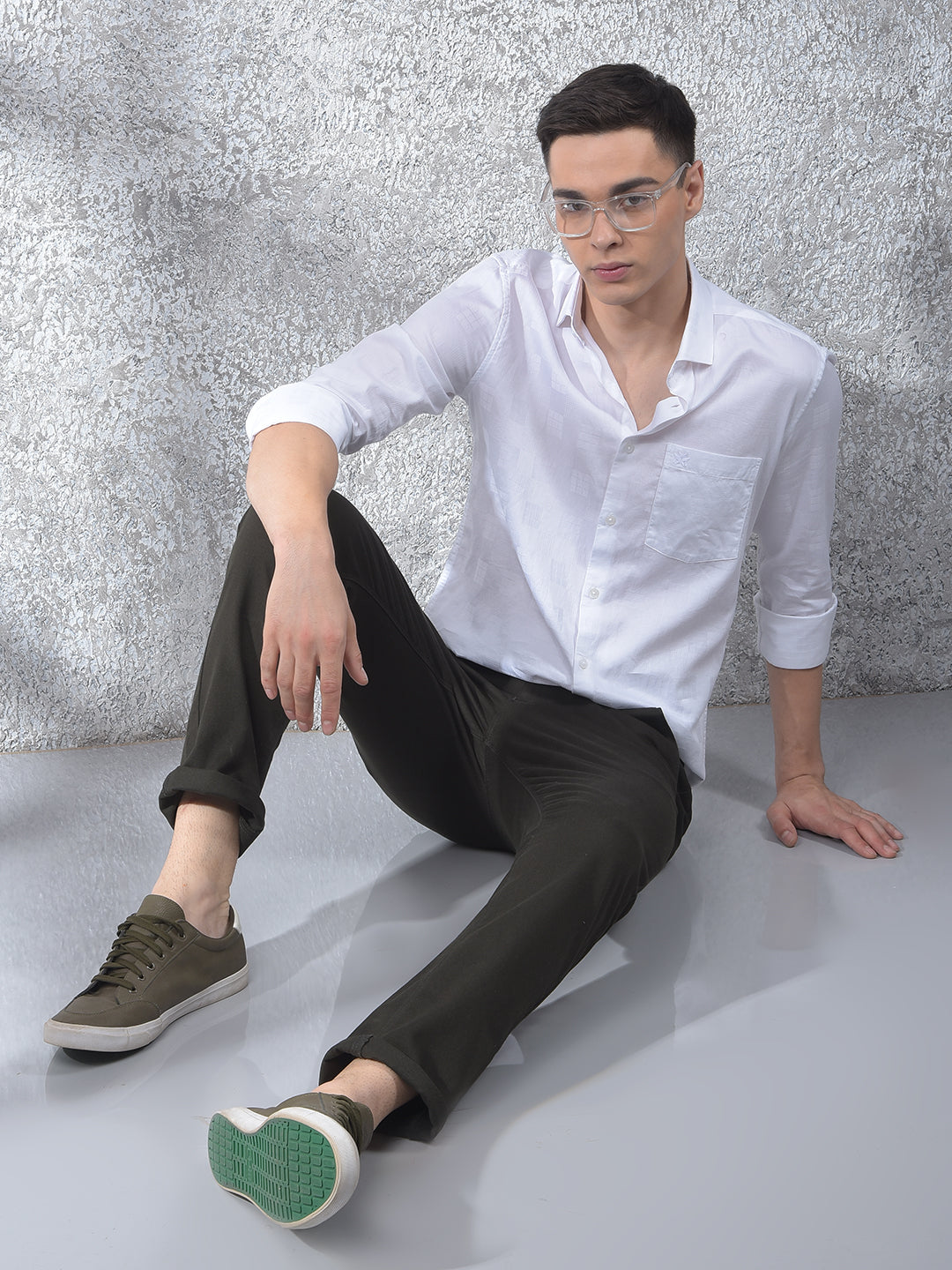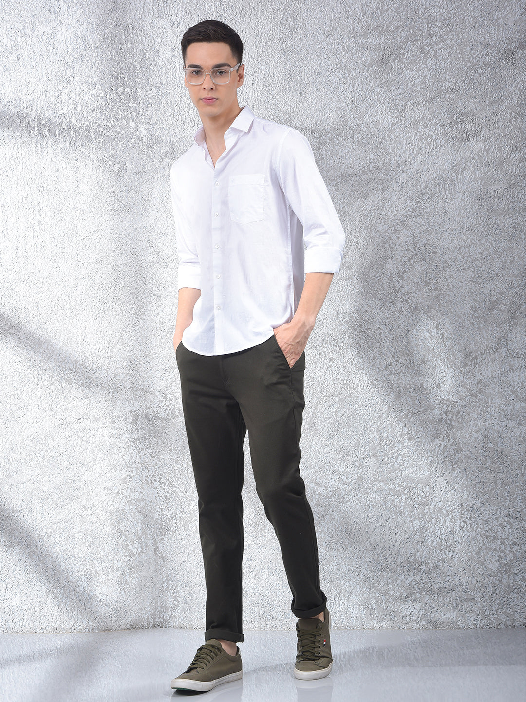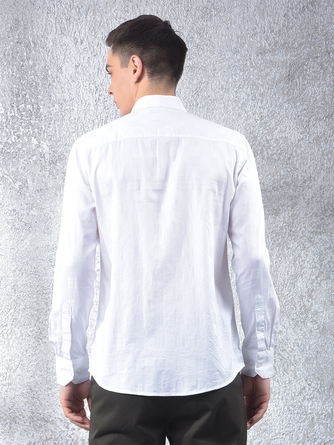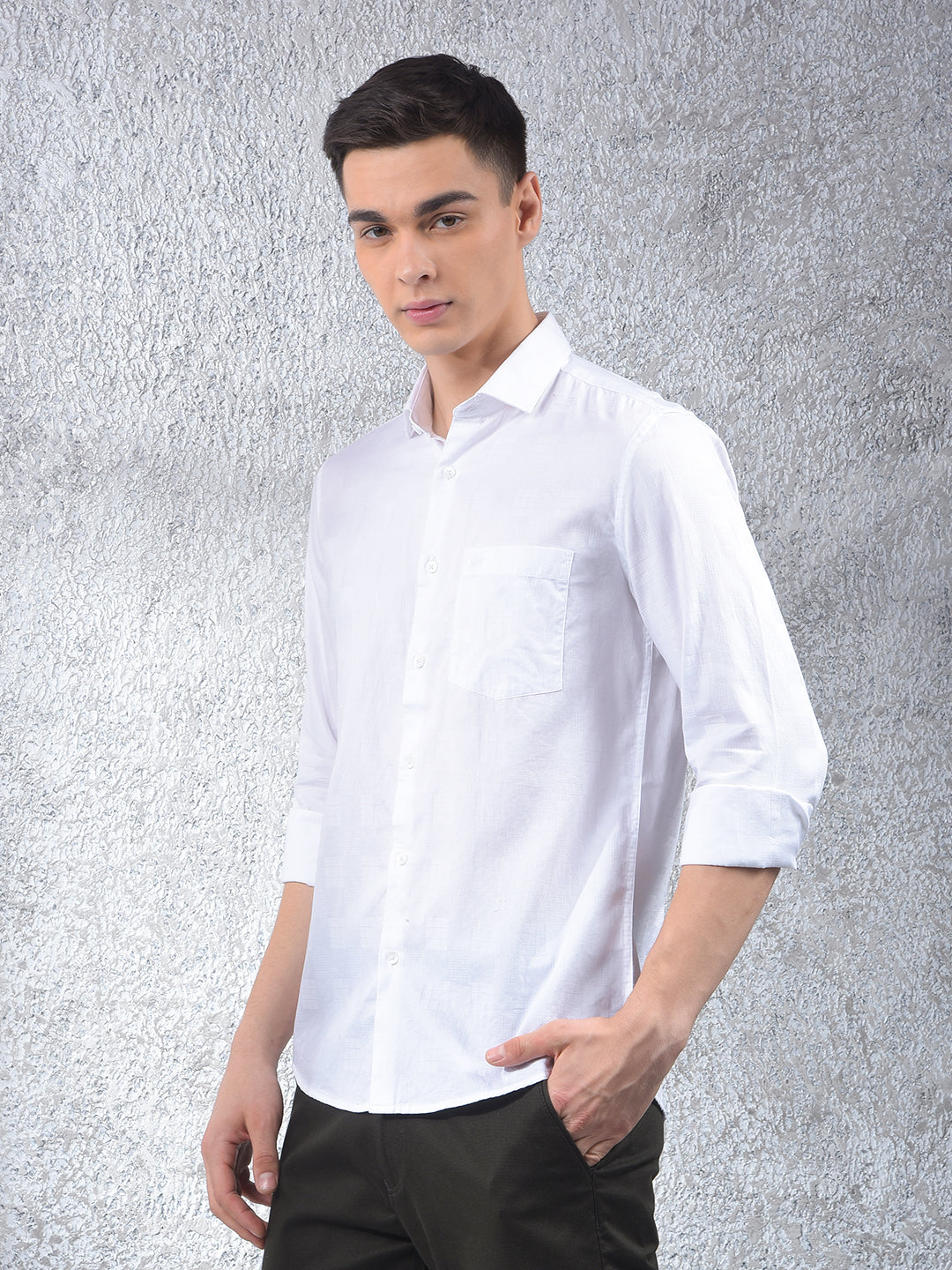 A white textured shirt made from pure cotton, offering a comfortable and unique feel with a classic, clean look for a modern twist.