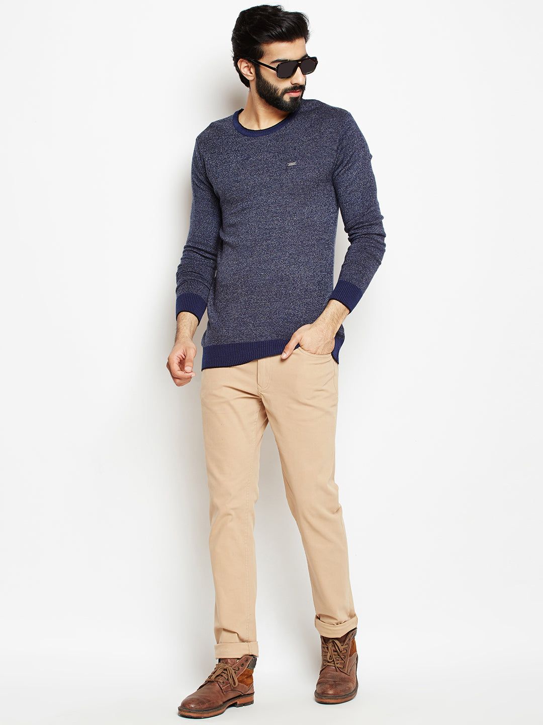 This Crimsoune Club men's sweater is perfect for the colder weather thanks to the way it feels like a warm embrace. Blue Round Neck Sweater Regular Machine Wash .