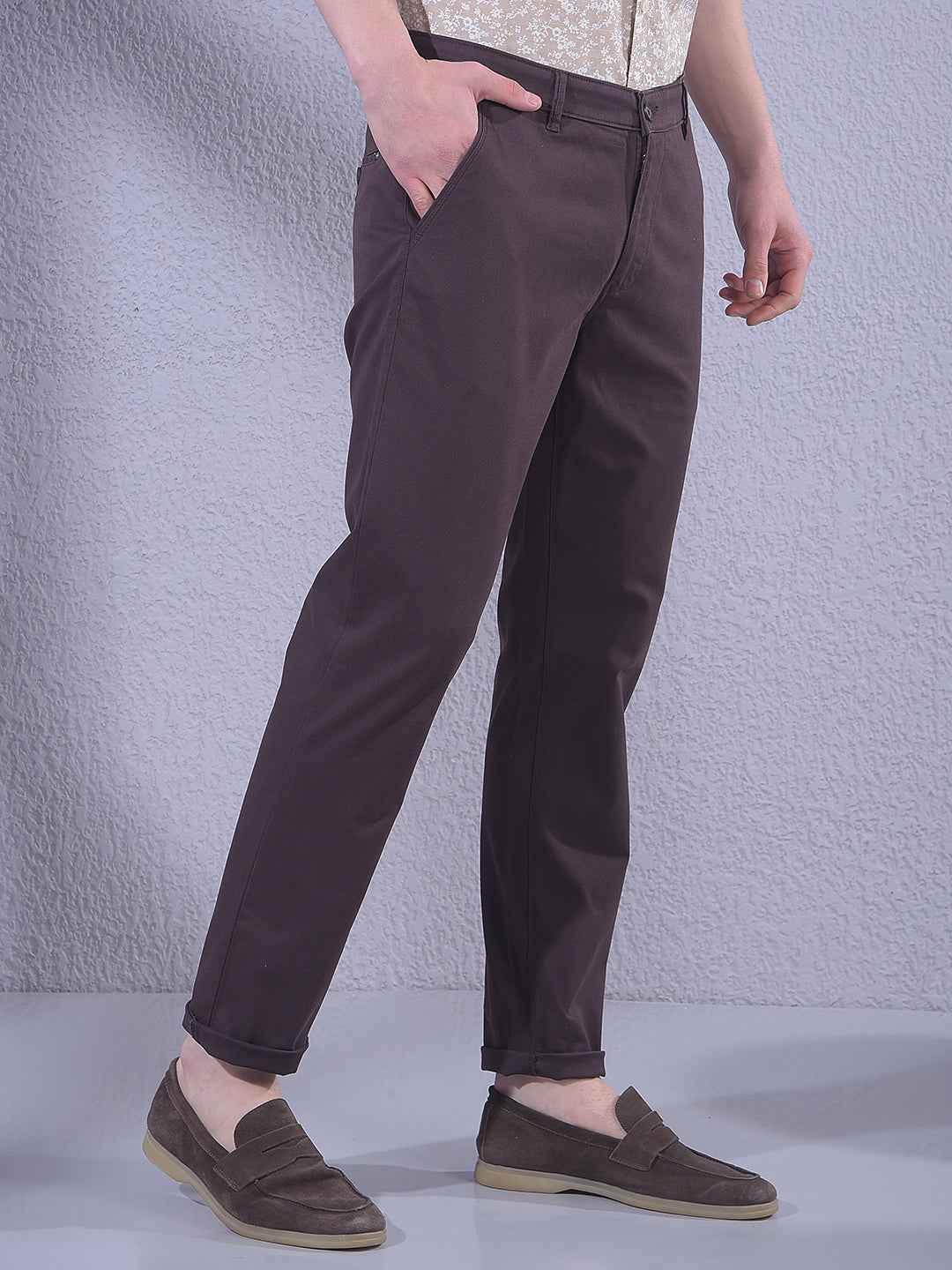 Men's trousers by crimsoune club designed for comfort and modern style. Crafted with attention to detail, these trousers feature brand color brown with brand pattern solid making them a versatile choice for both casual and smart looks. Ideal for everyday wear with a clean, refined finish.