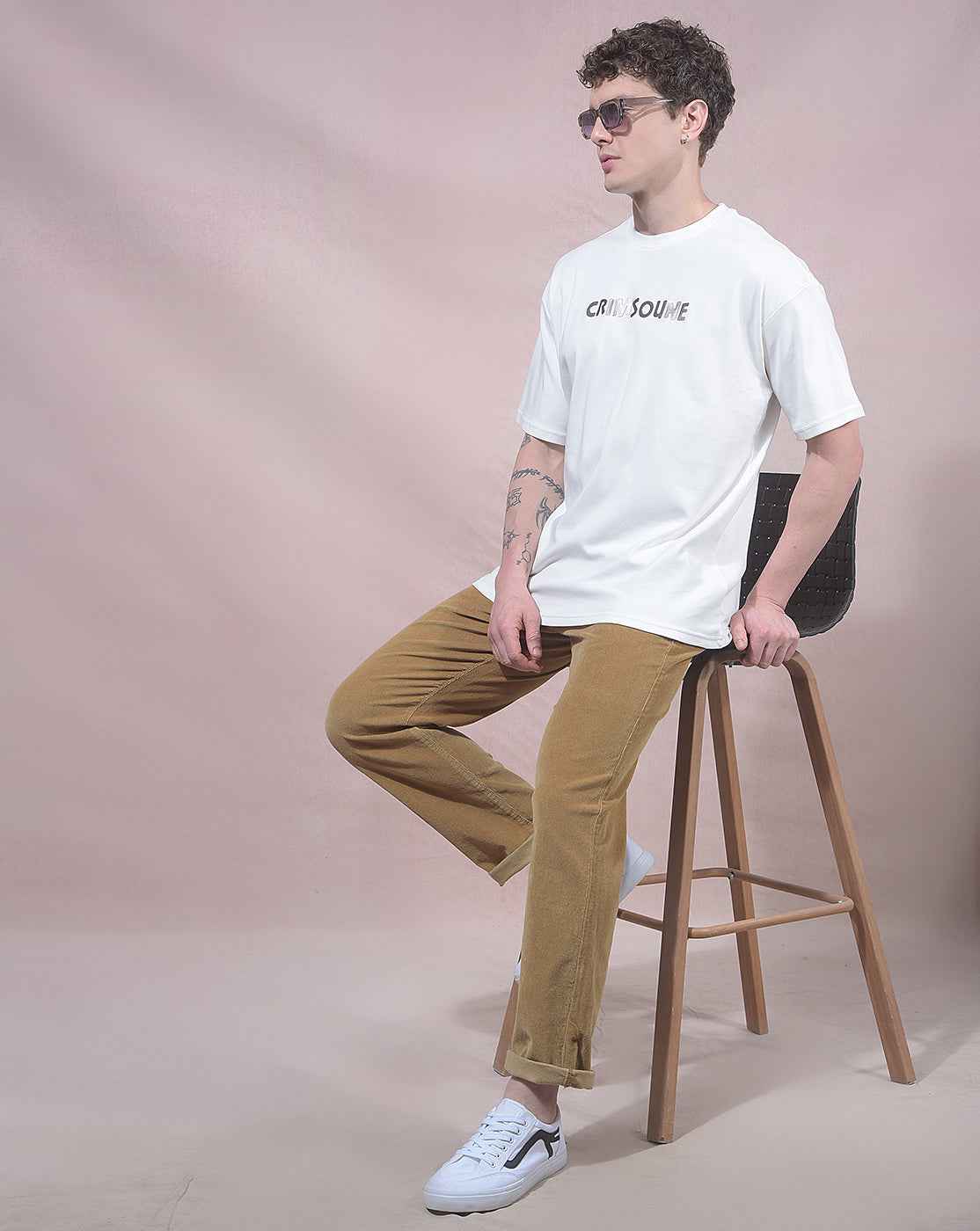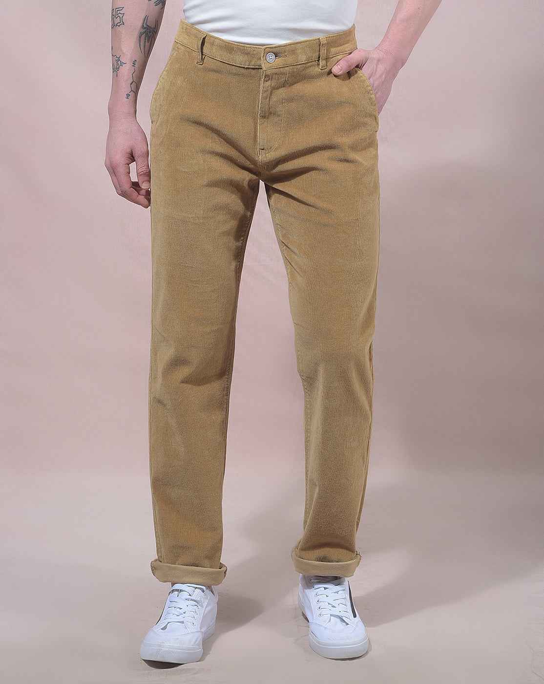 Upgrade your wardrobe with the Crimsoune Club Men's Khaki Straight Corduroy Trousers, featuring a rich textured finish and a structured fit that adds depth and style to your look.