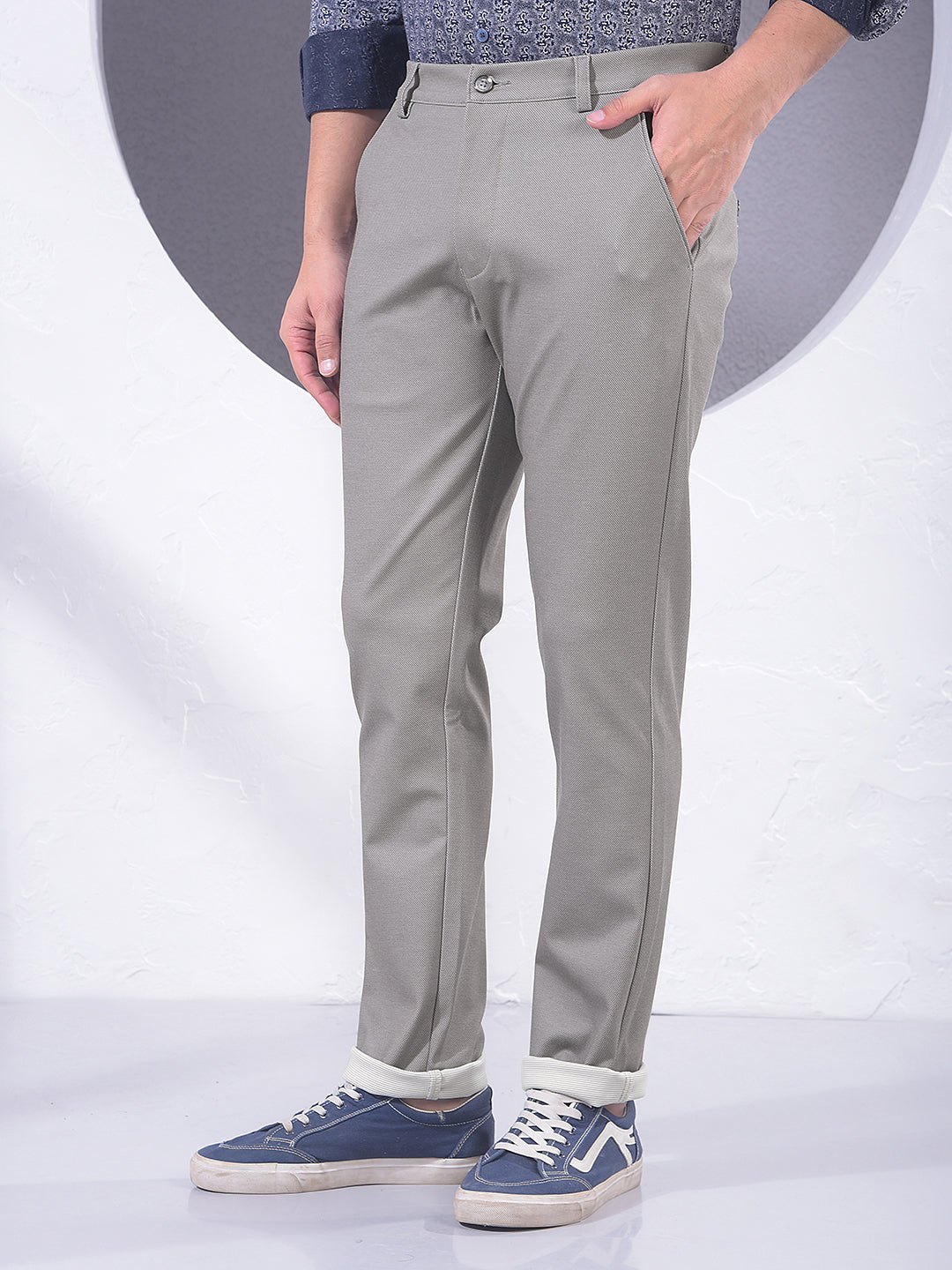 Refine your attire with these grey knitted trousers. The contemporary grey hue and comfortable knitted construction provide a sharp, modern look that is perfect for both casual and semi-formal settings during your busy week.