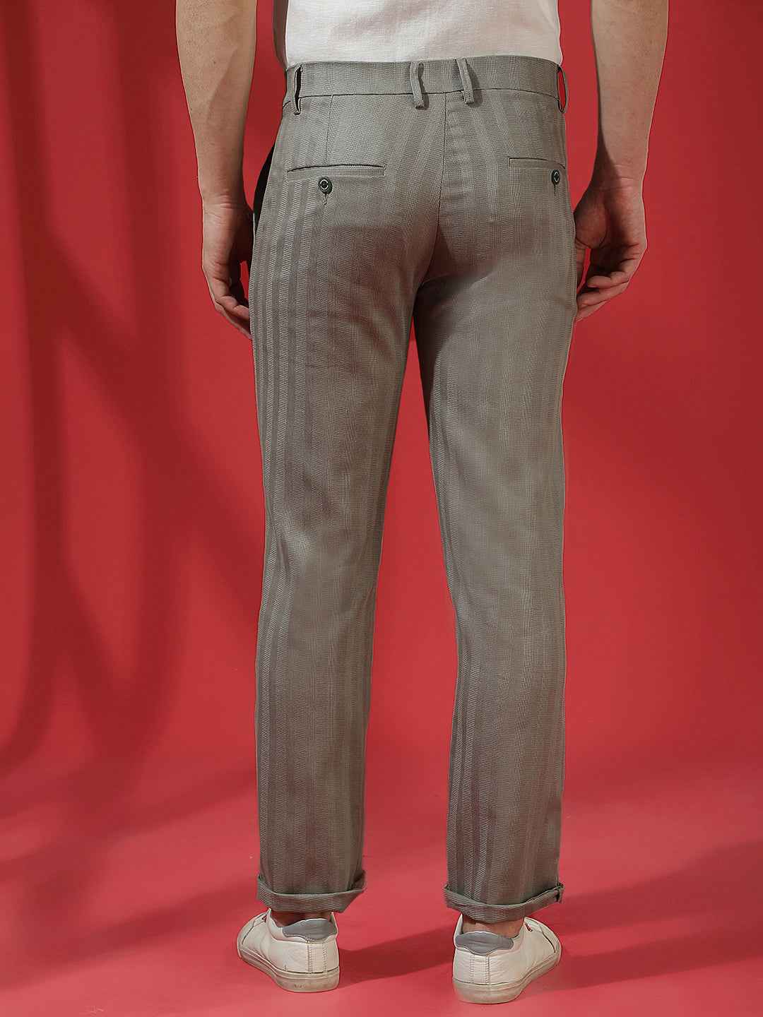 Steel Grey Linen Vertical Striped Trousers