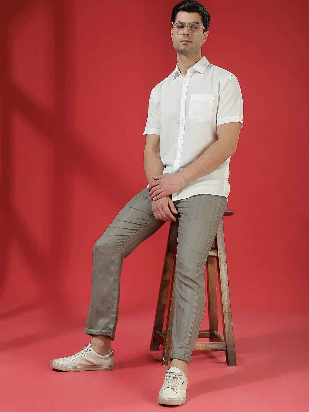 Steel grey linen trousers with elegant vertical stripes that enhance the overall silhouette. Crafted with breathable linen fabric, they provide excellent comfort while offering a stylish option for relaxed summer days and casual outings.