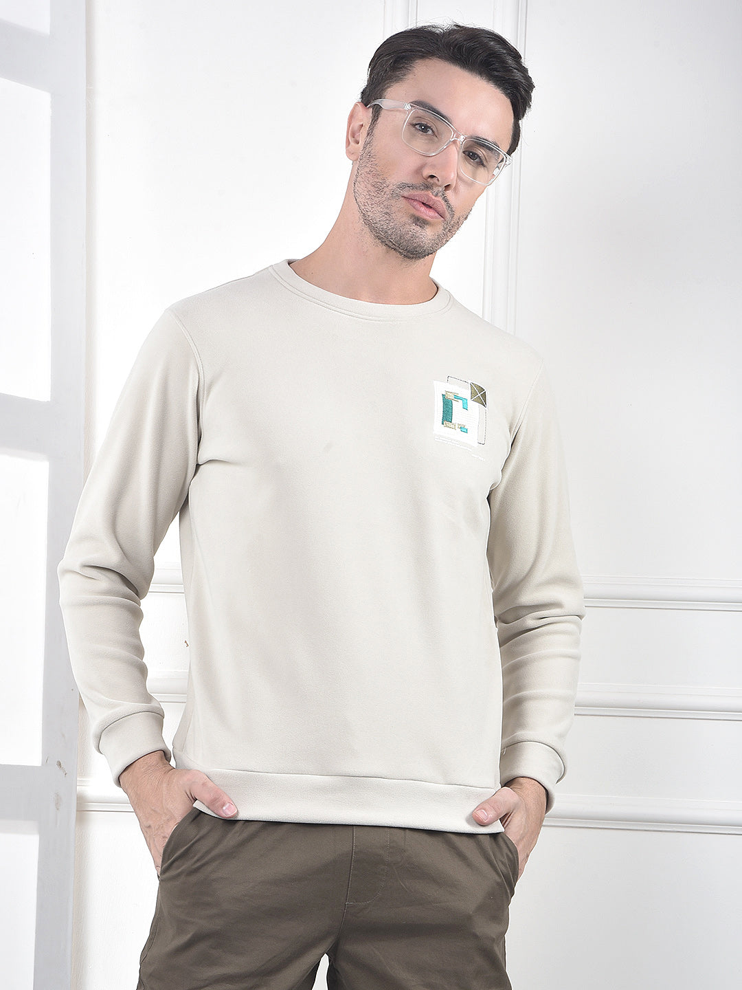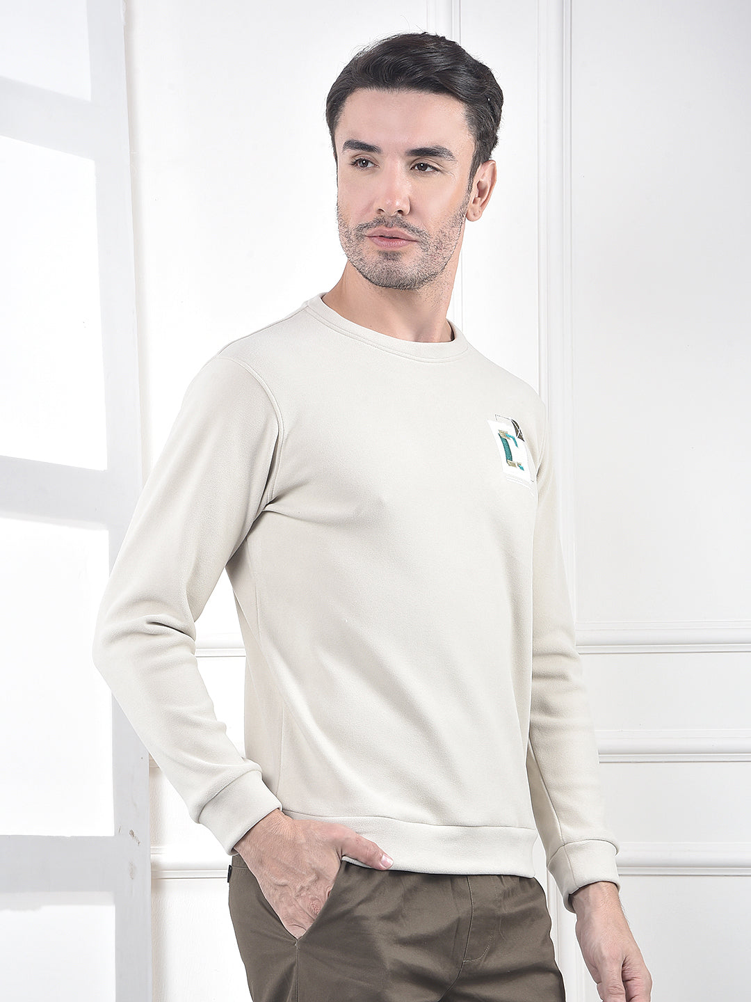 Stay comfortable and on-trend with this Crimsoune Club men's sweatshirt. It features a cool graphic print on a versatile beige base, offering warmth and a relaxed, street-style edge to your casual attire.