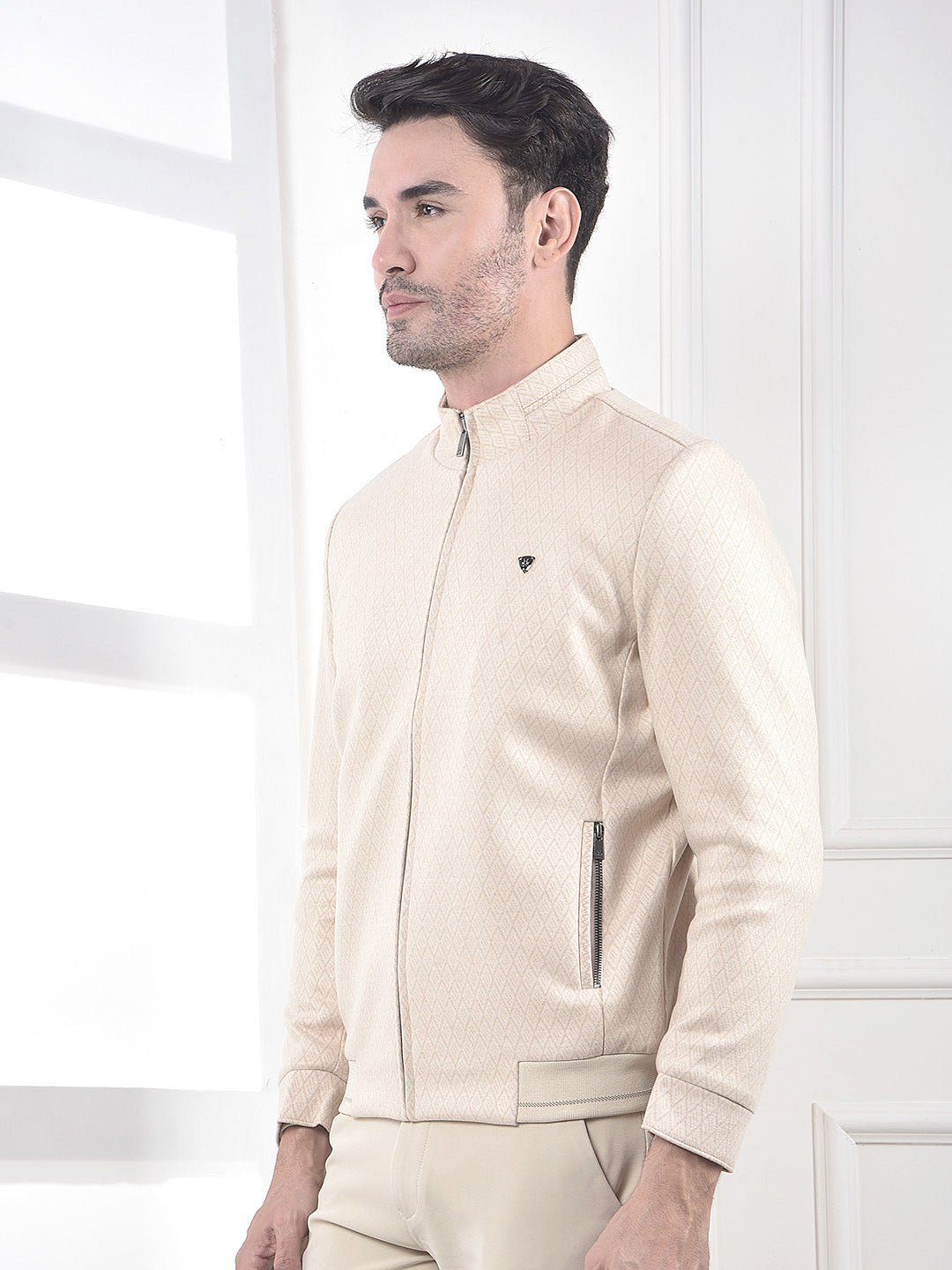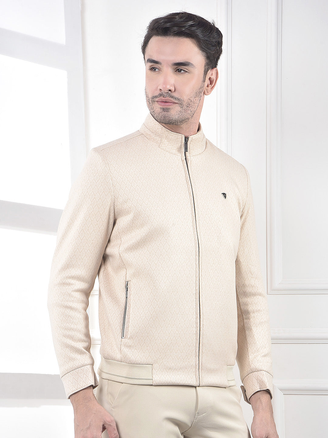This smart and contemporary Crimsoune Club Men's Jacket offers a refined casual look. It features a subtle, all-over textured pattern in a versatile Beige tone, making it easy to dress up or down.