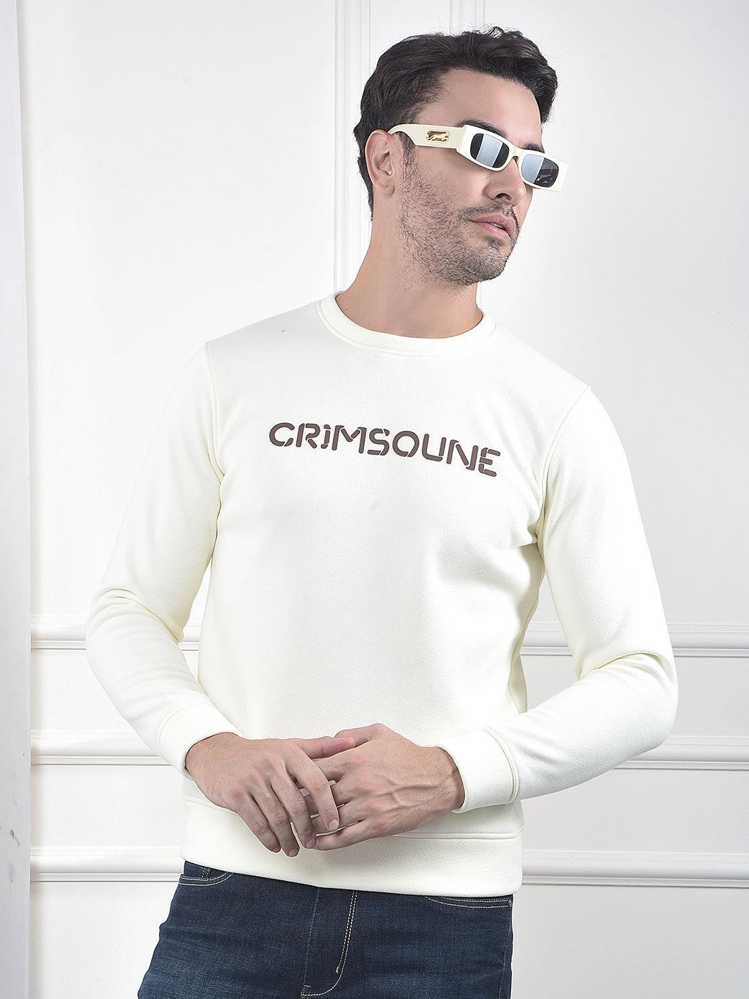 Achieve A Laid-Back Yet Stylish Look With This Crimsoune Club Men's Beige Sweatshirt Featuring A Modern Typographic Print. The Soft Material Ensures Comfort For All Your Weekend Adventures.