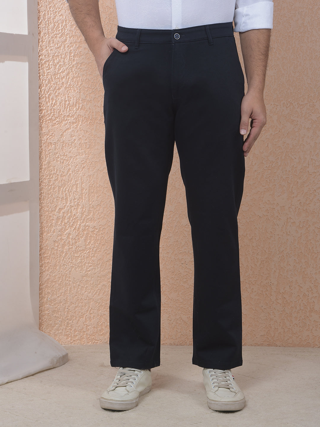 Easy-going style that fits right into everyday plans. Straight Navy Blue Trousers. Pairs well with tees, shirts, or casual layers.