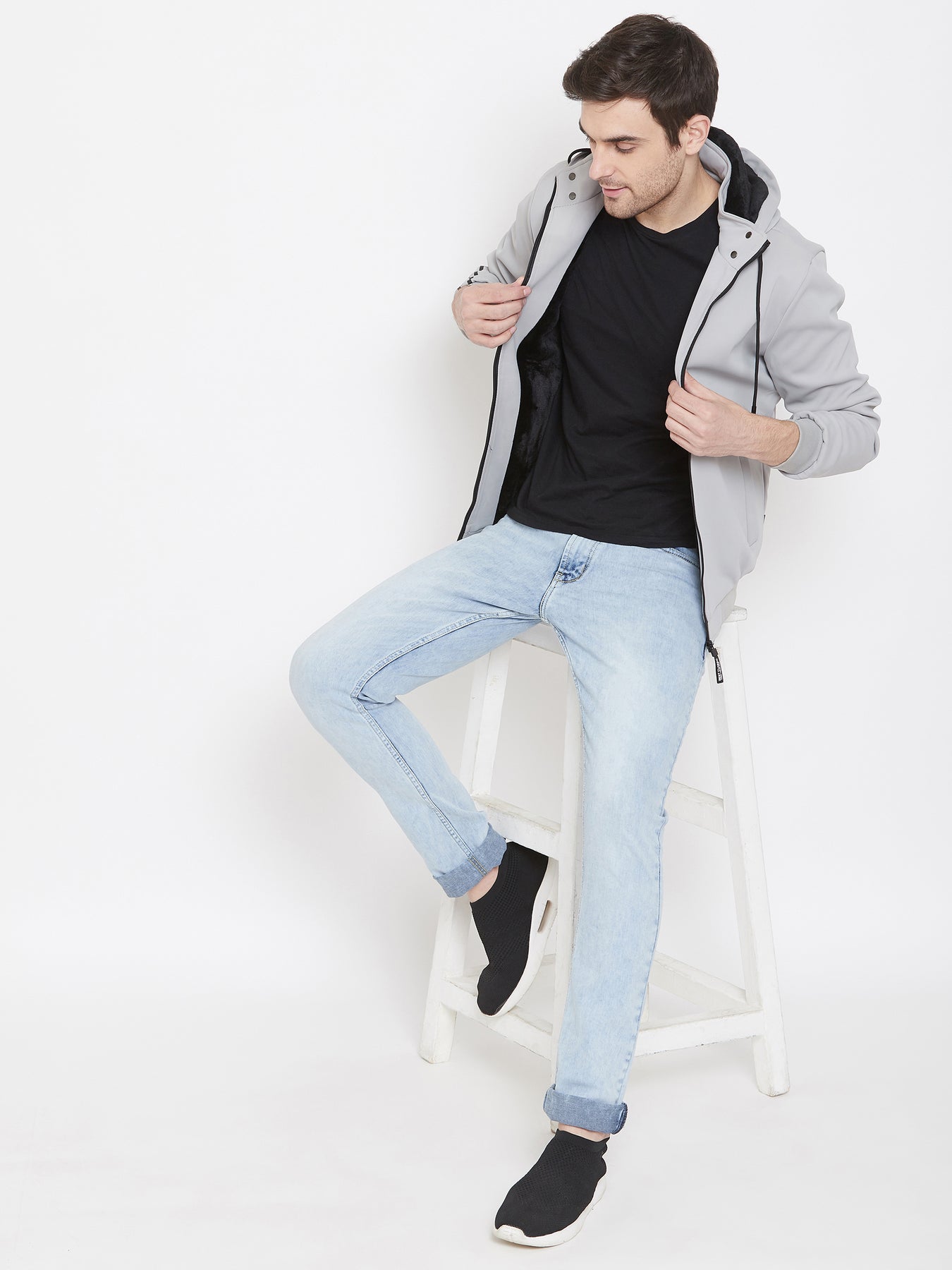Grey Solid Hooded Jackets-Mens Jacket-Crimsoune Club