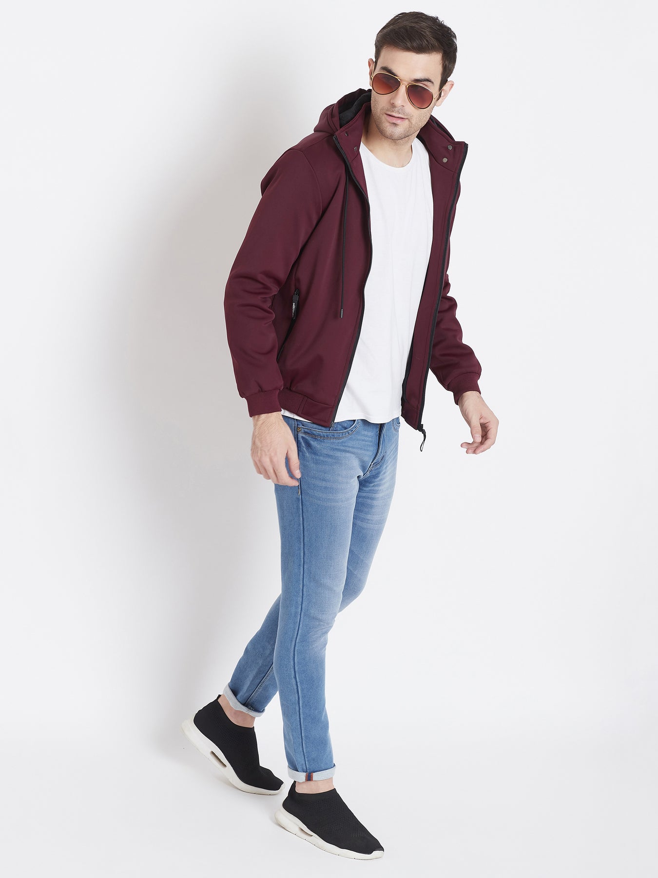 Maroon Solid Hooded Jackets-Mens Jacket-Crimsoune Club
