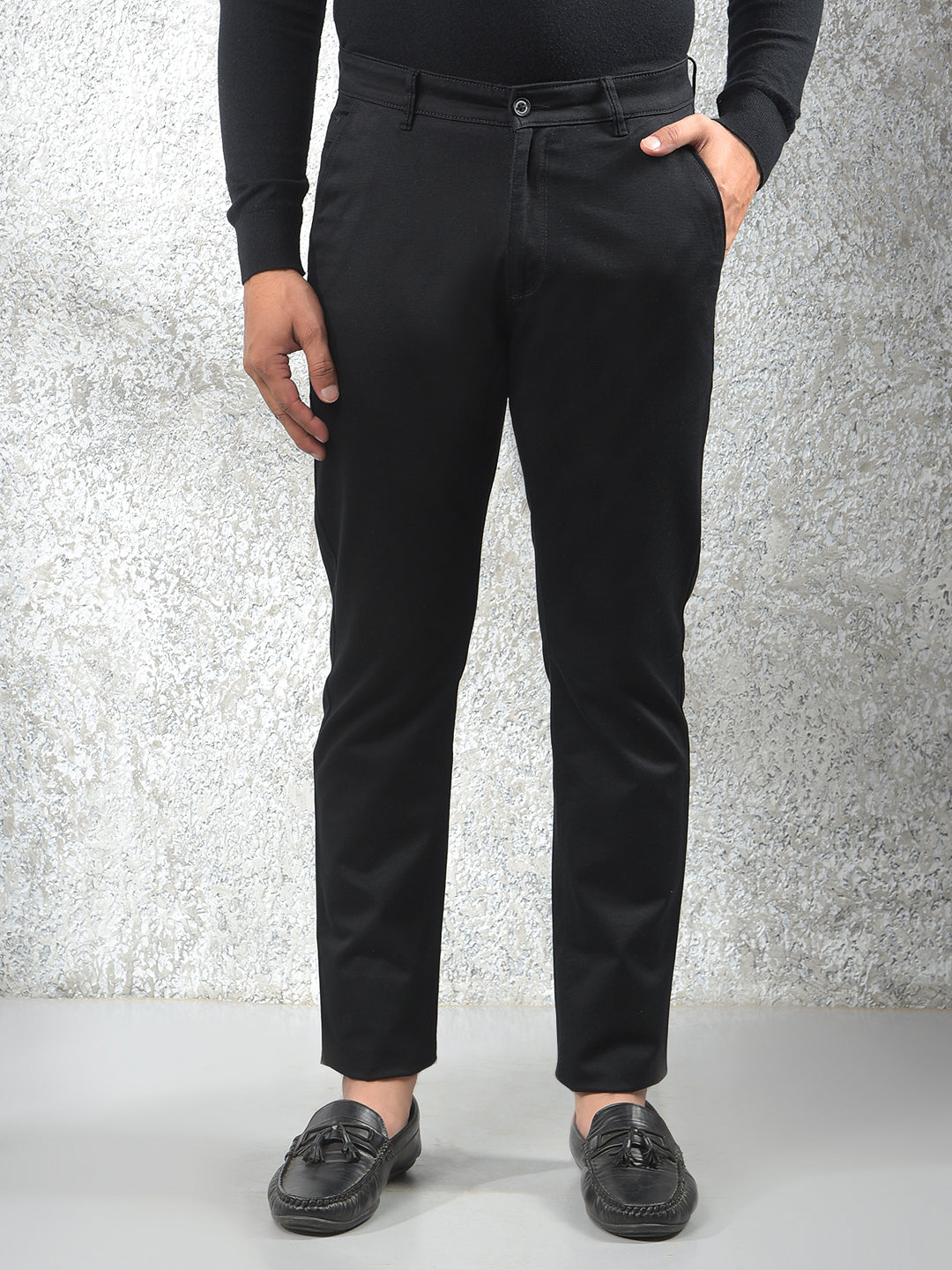 A sleek pair of black trousers, a must-have wardrobe essential that offers a clean, sophisticated look for various events.