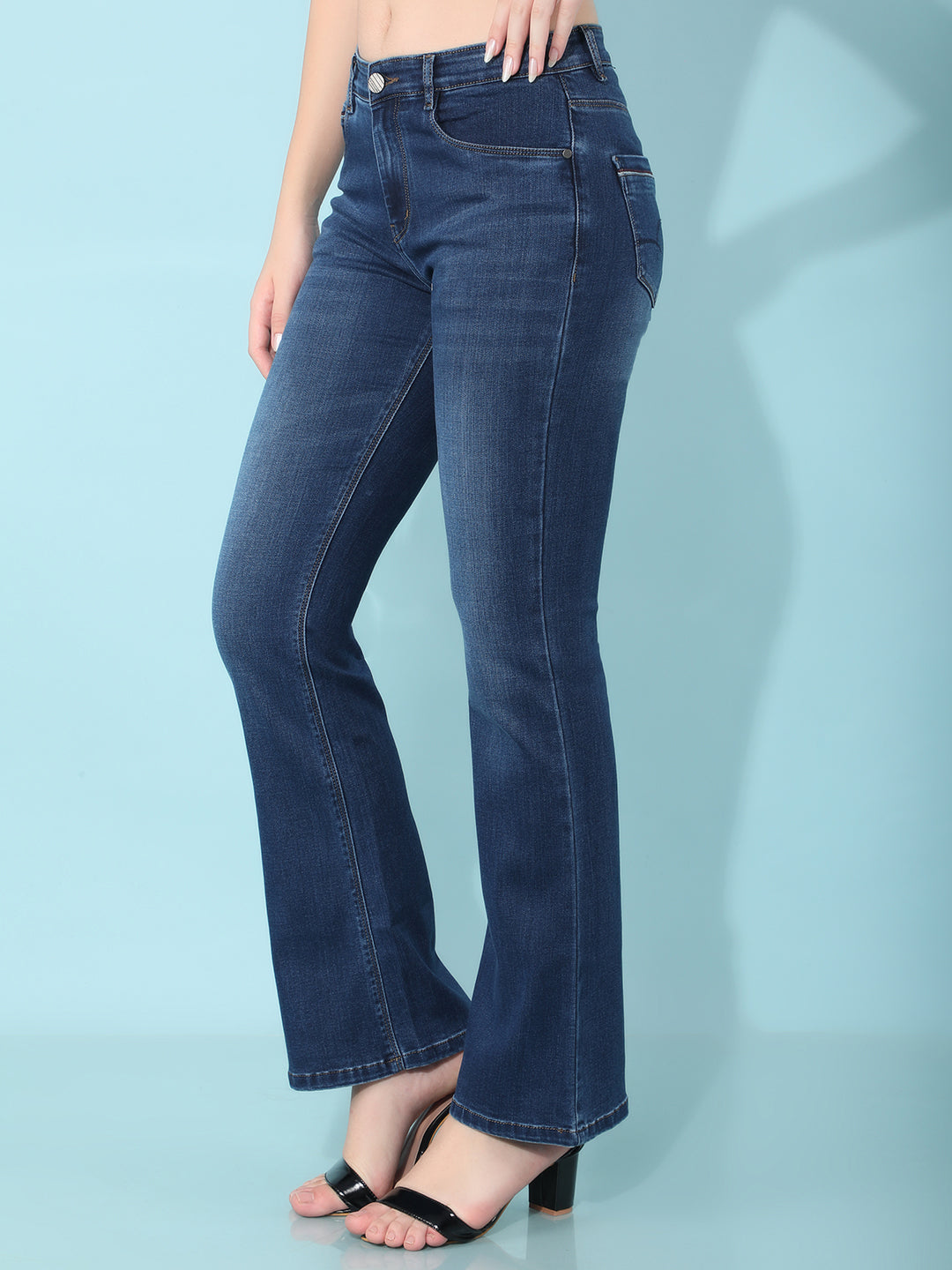 Blue Bootcut Jeans-Women Jeans-Crimsoune Club