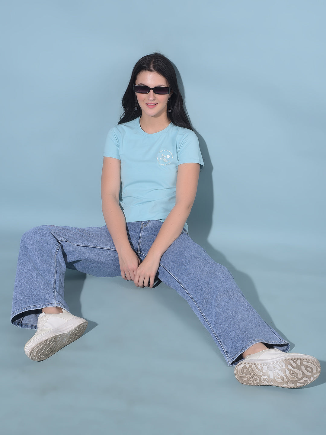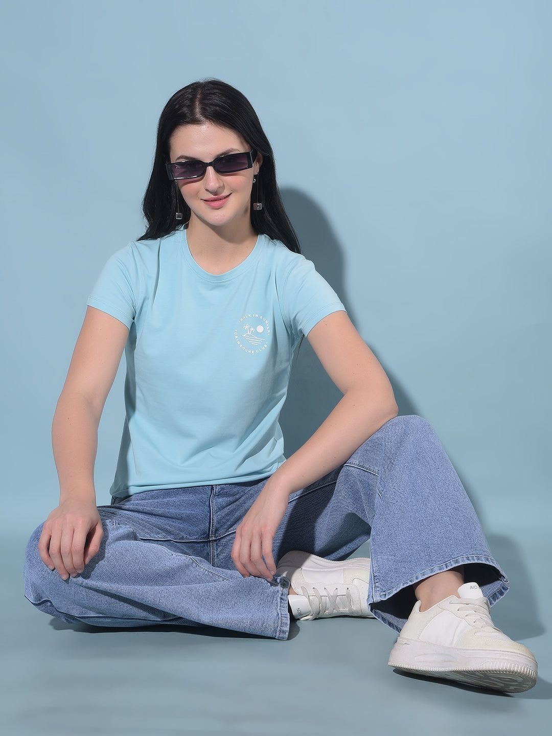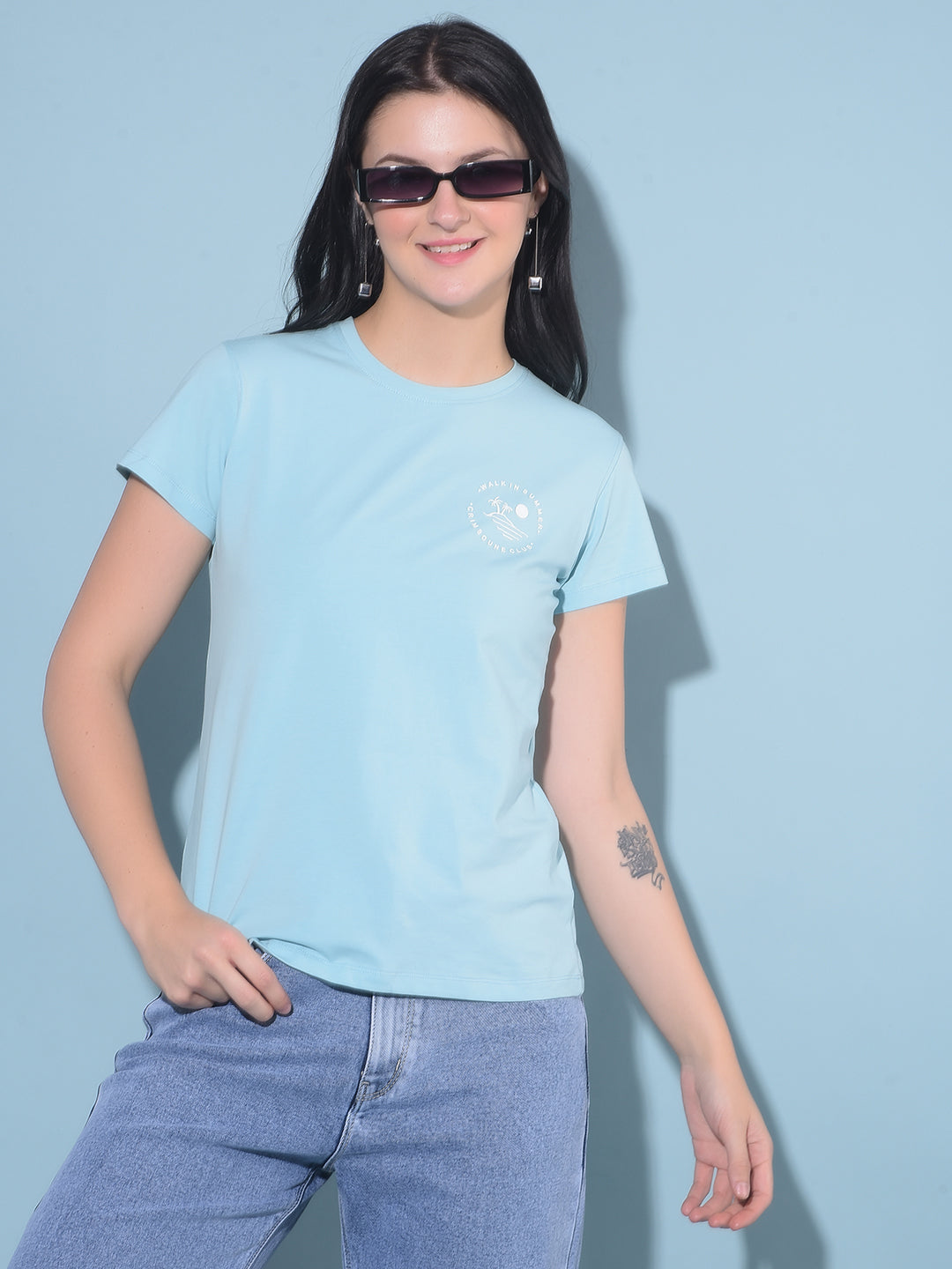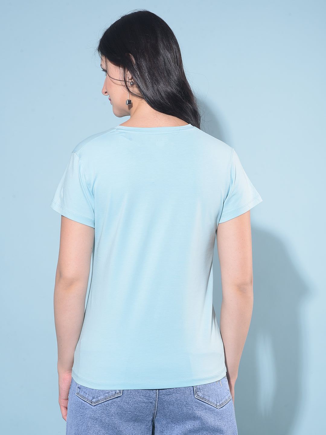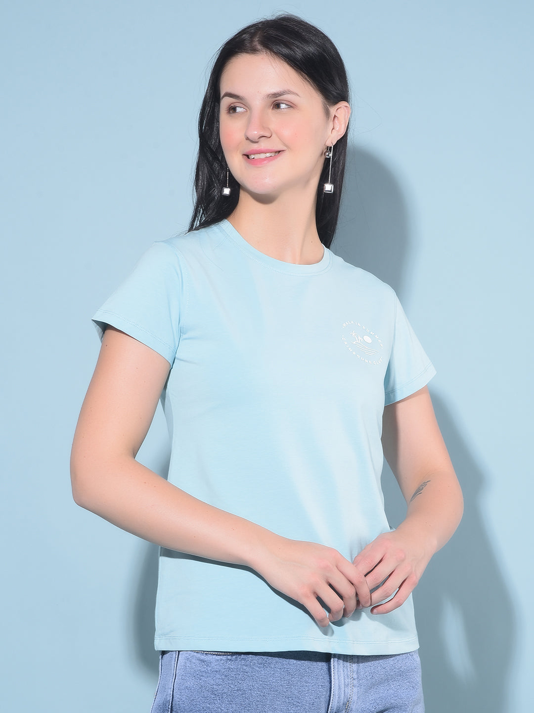 Blue Cotton T-Shirt-Women T-Shirts-Crimsoune Club