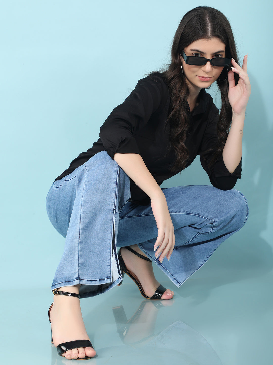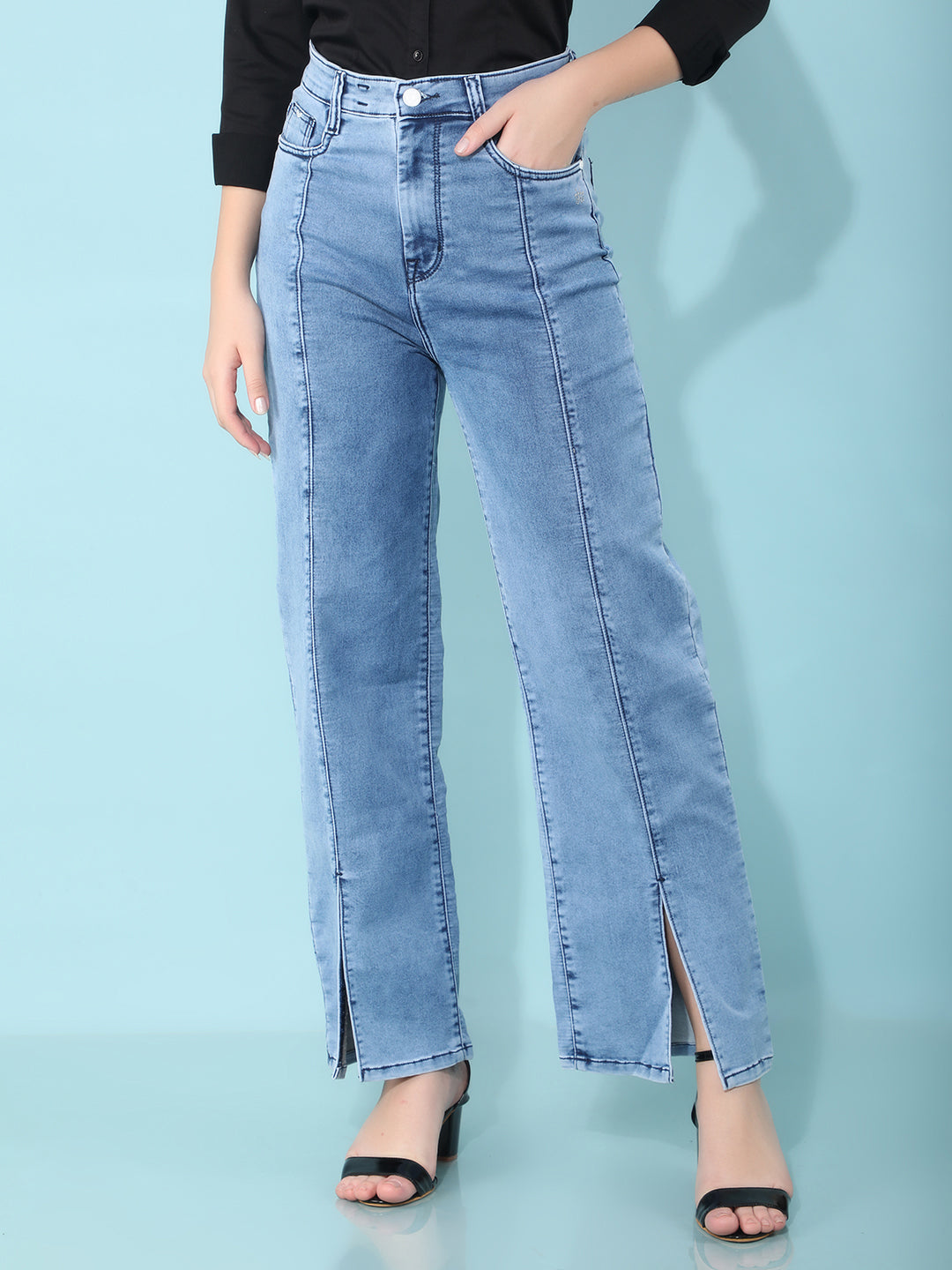Blue Straight Jeans-Women Jeans-Crimsoune Club