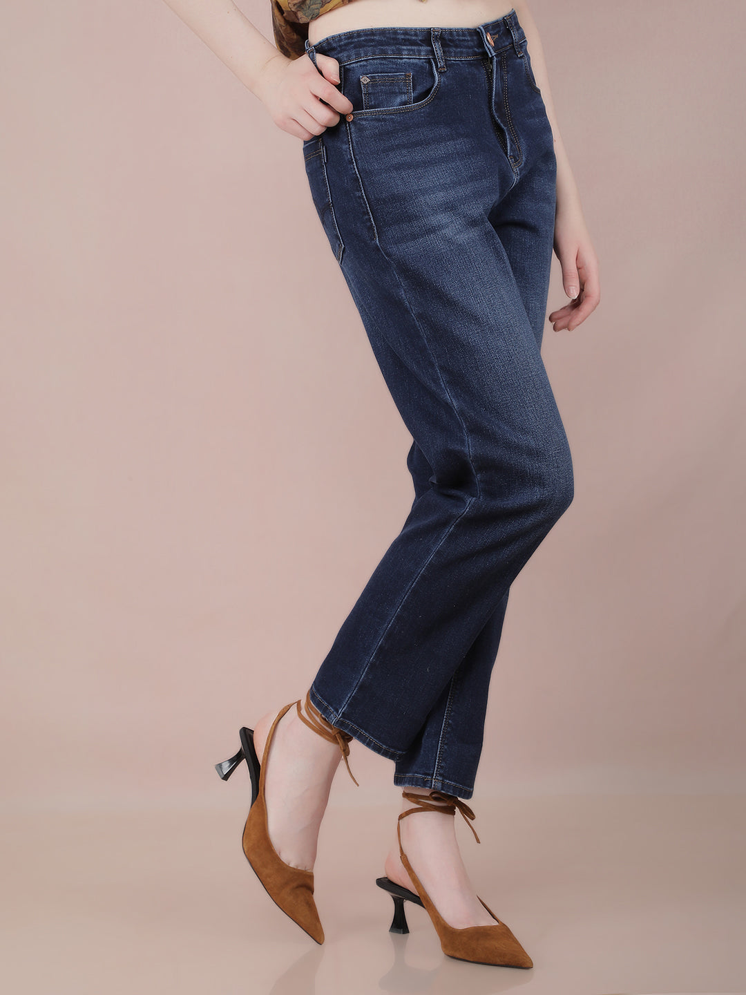 Blue Straight Jeans-Women Jeans-Crimsoune Club