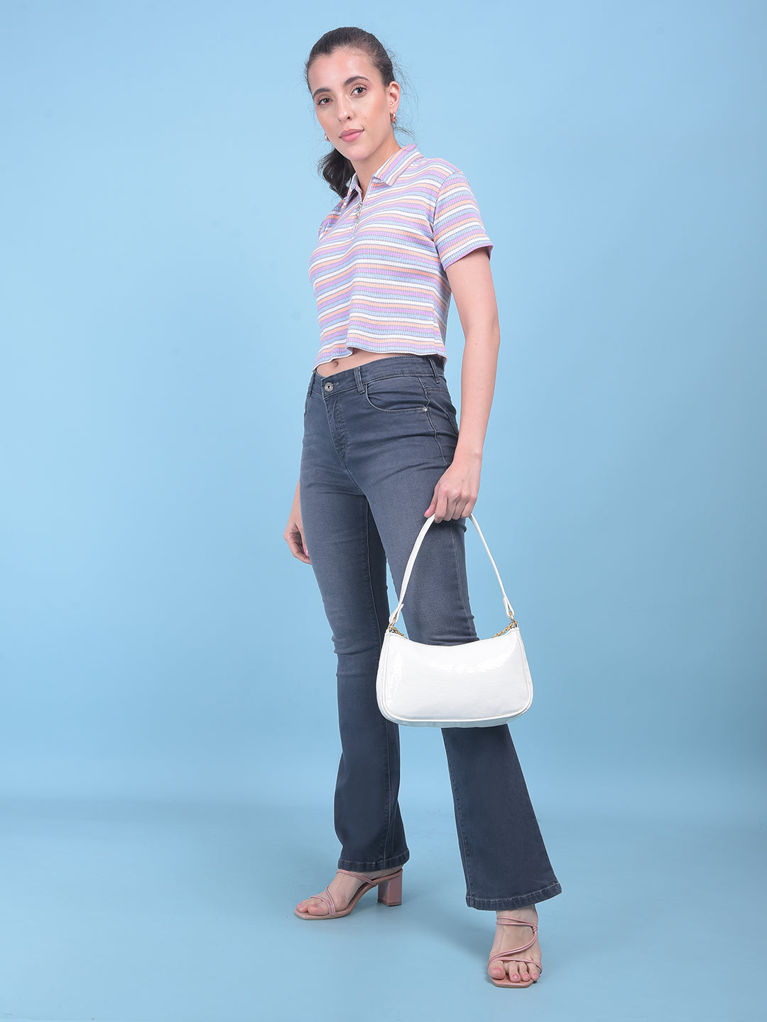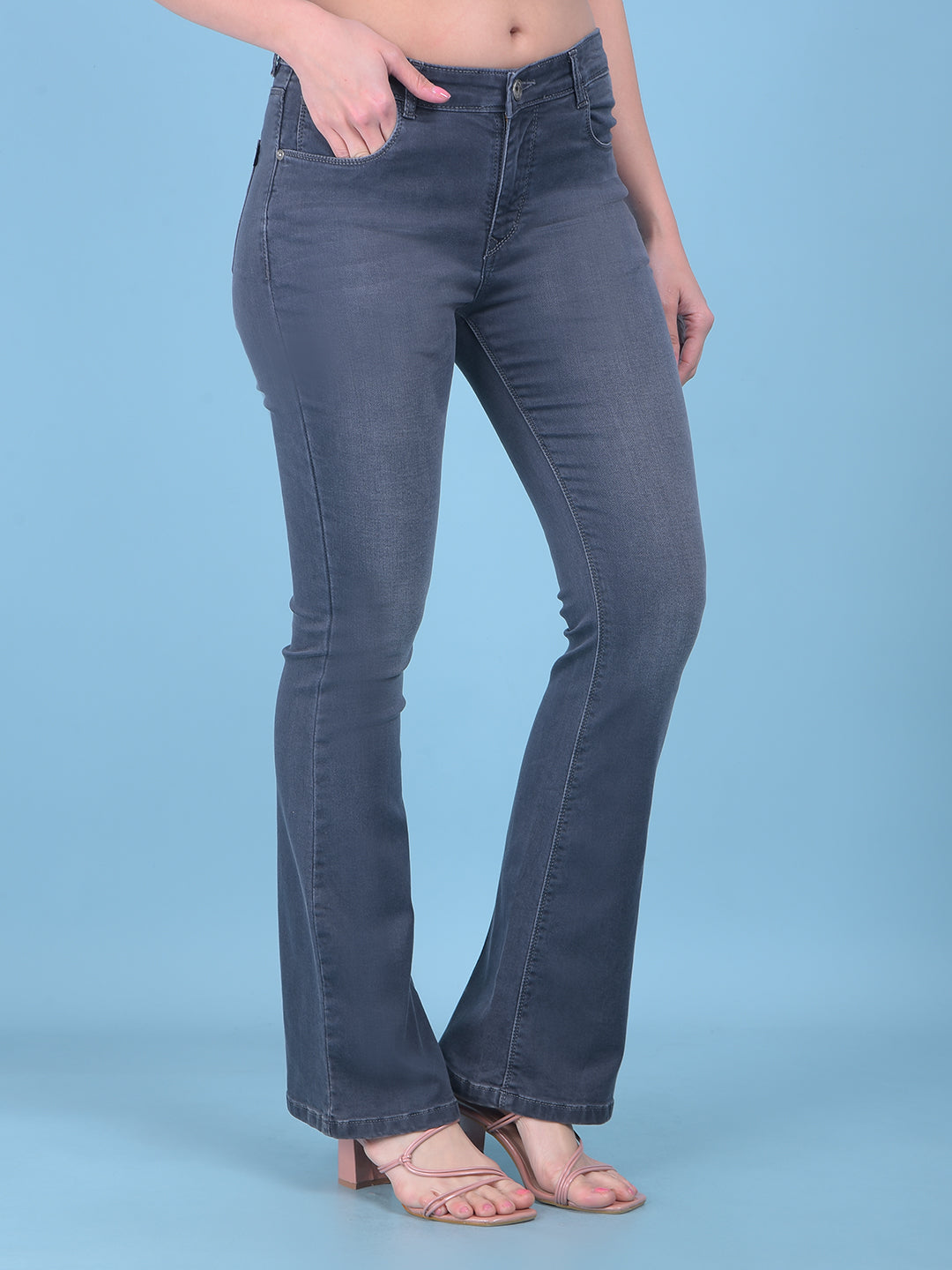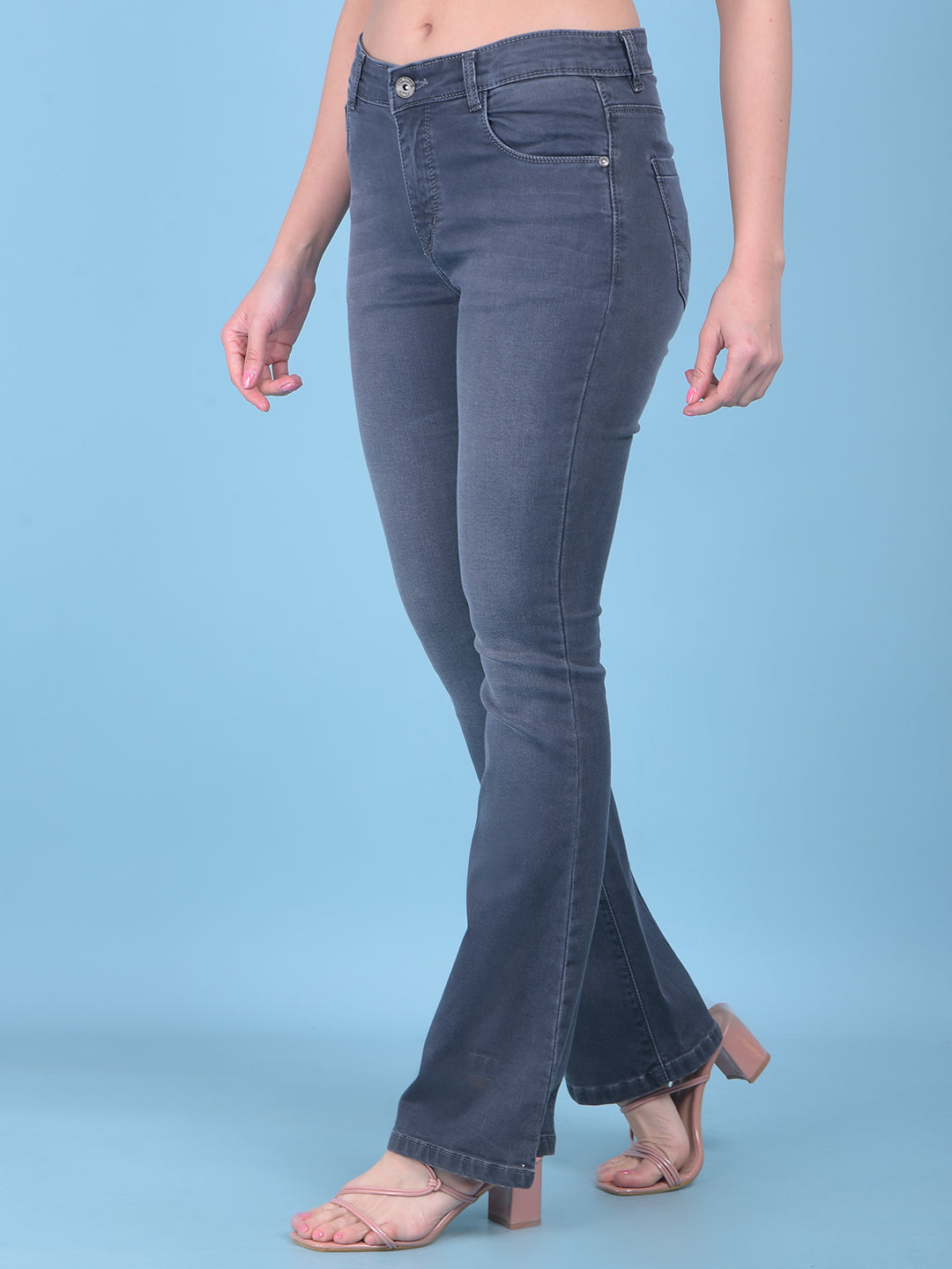 Grey Bootcut Jeans-Women Jeans-Crimsoune Club