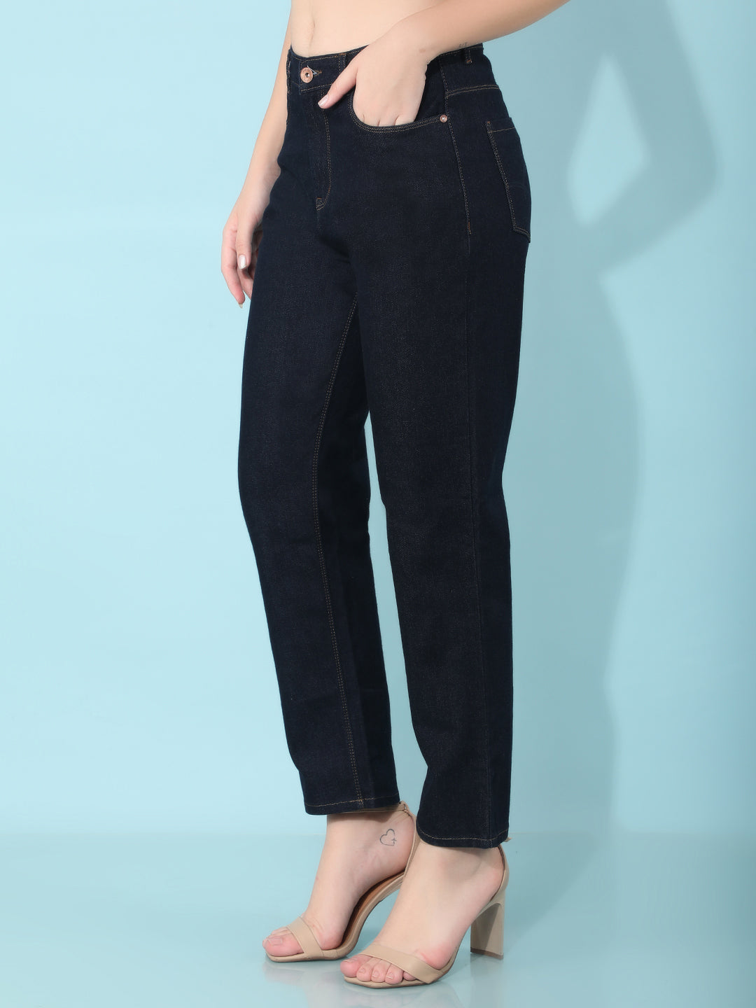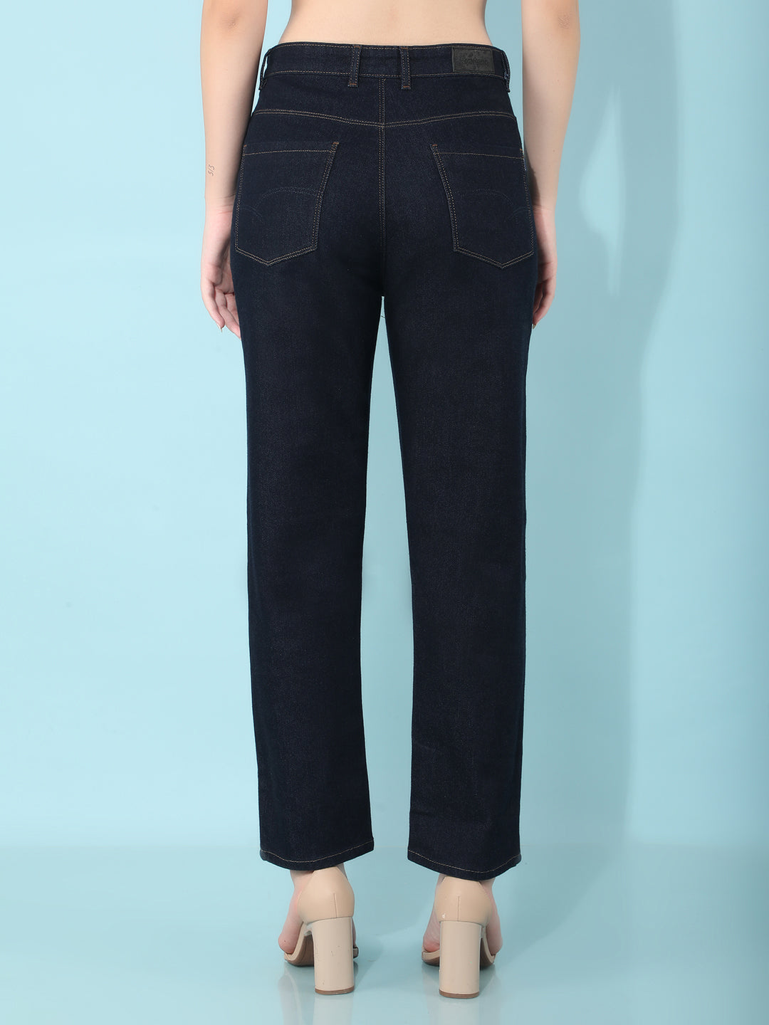Navy Blue Straight Jeans-Women Jeans-Crimsoune Club