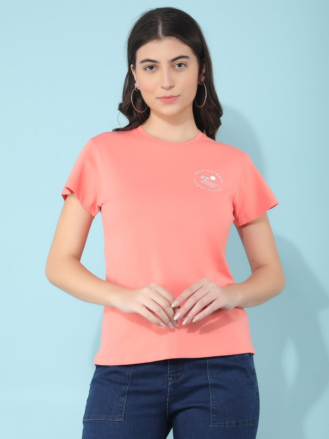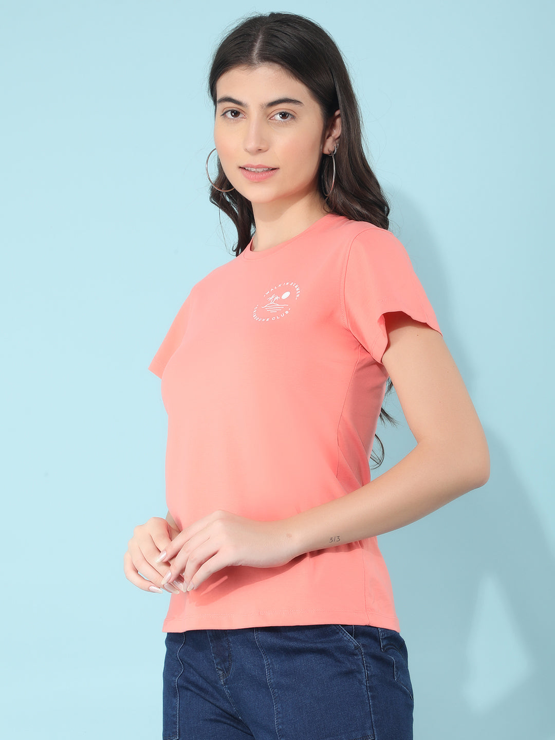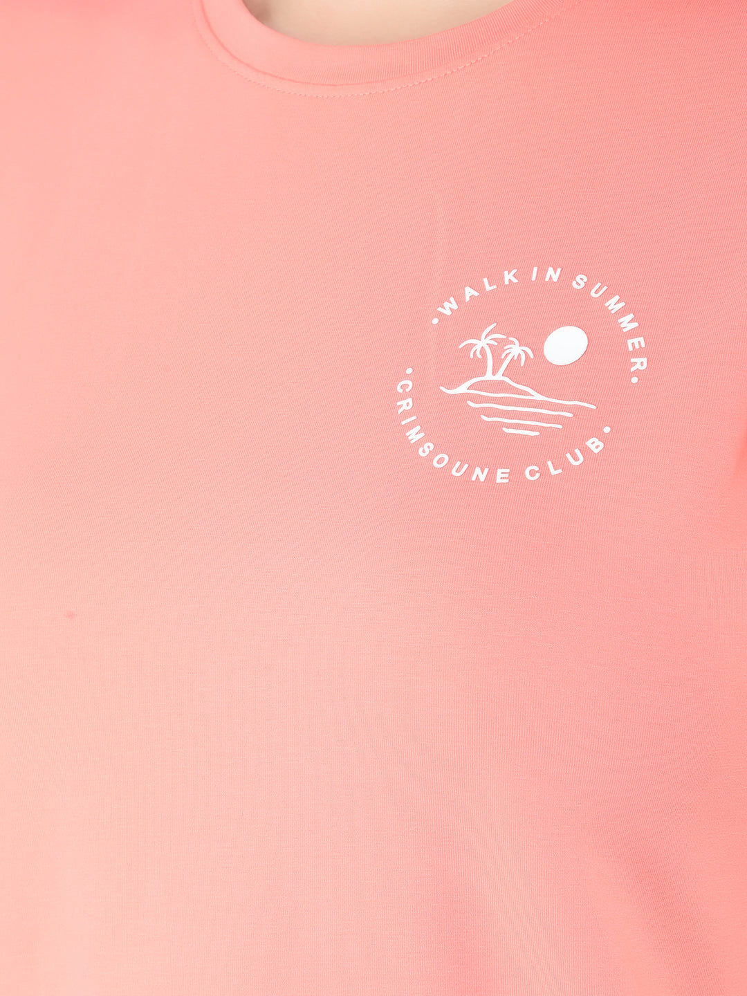 Crimsoune Club Women's T-Shirt in Peach color combines comfort with a modern pattern, ideal for effortless and stylish everyday wear.