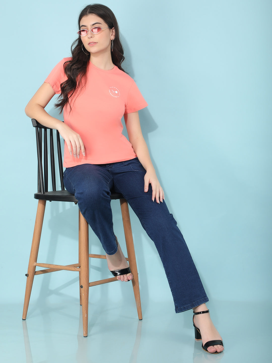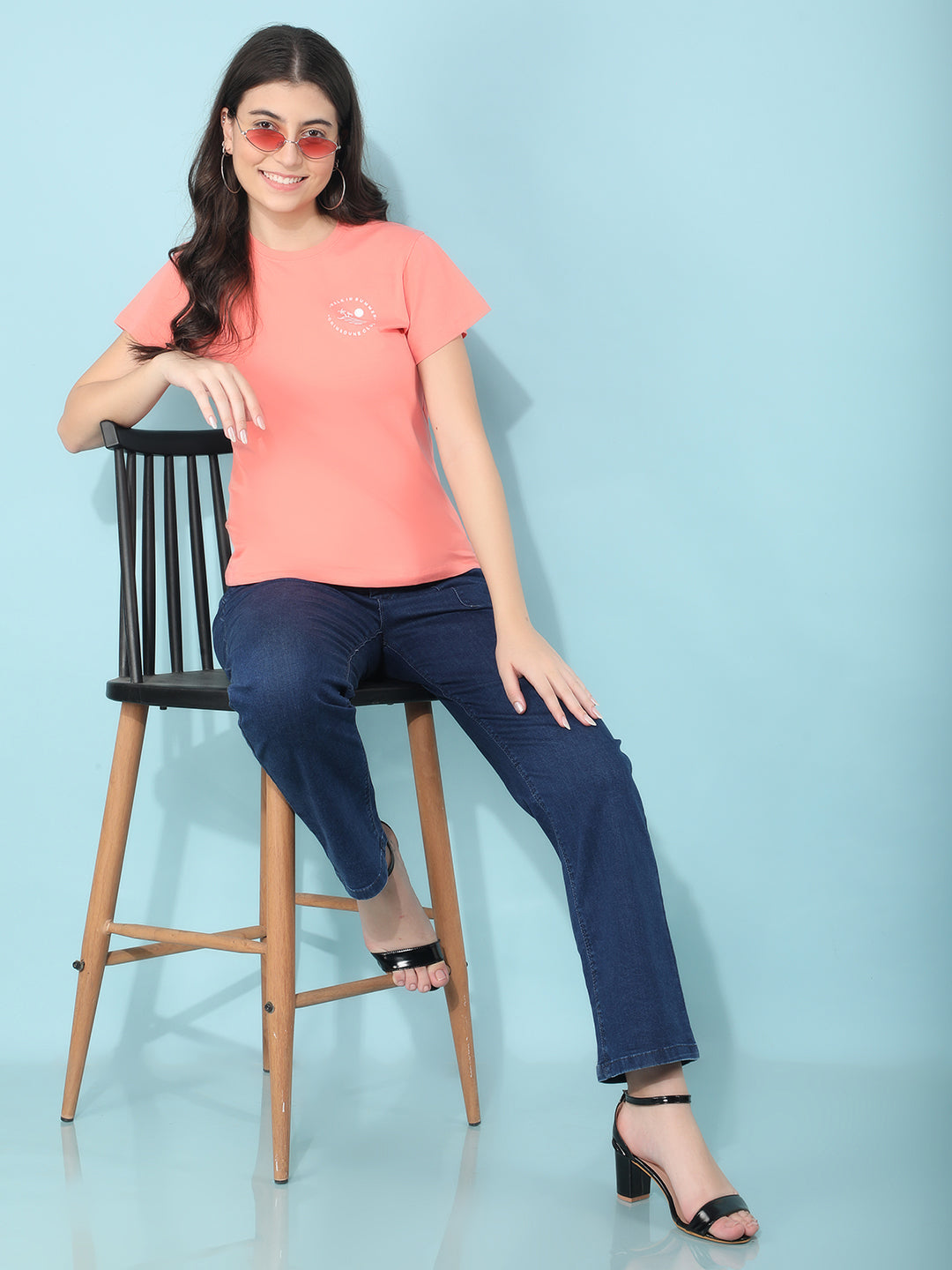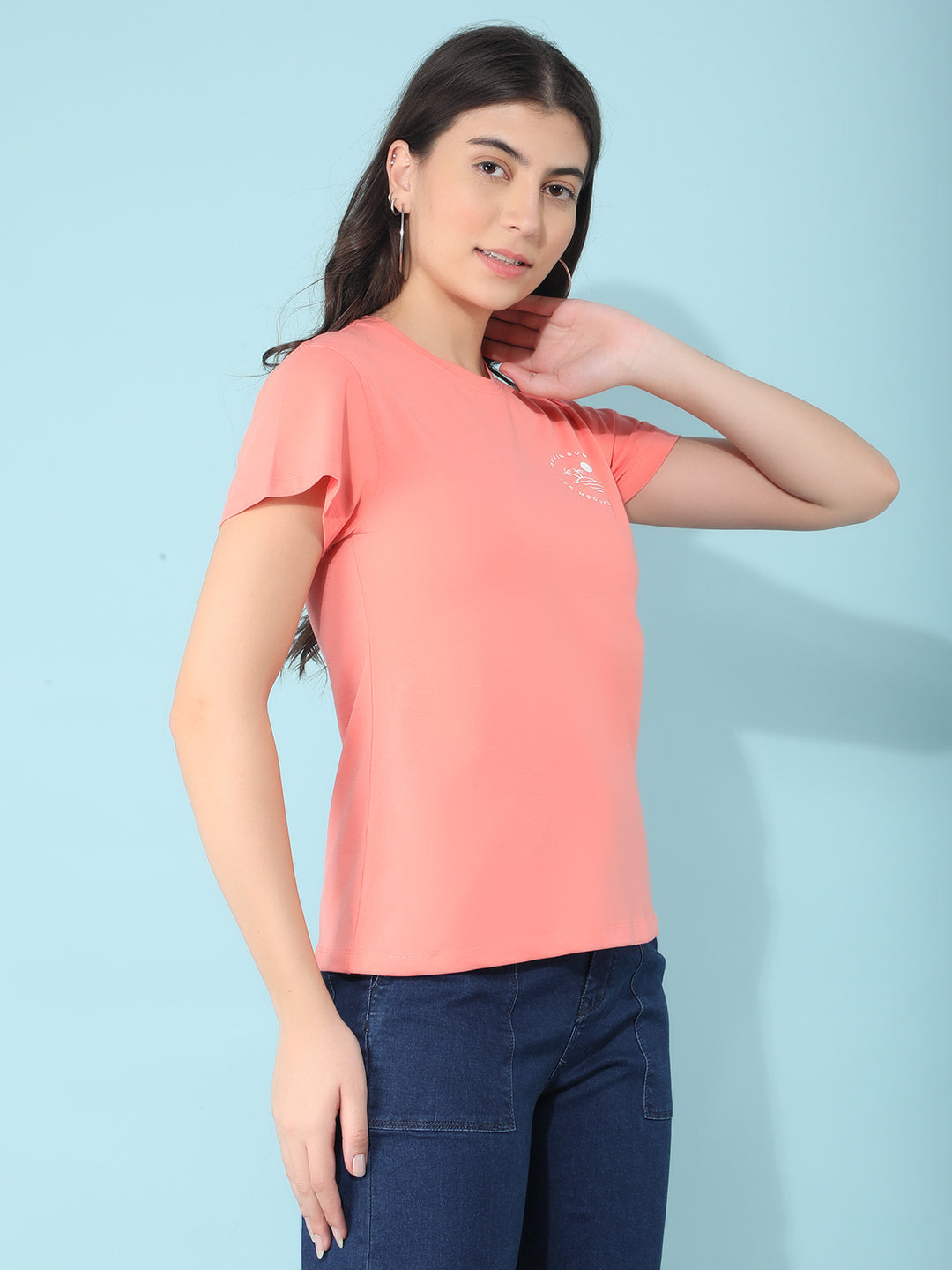 Crimsoune Club Women's T-Shirt in Peach color combines comfort with a modern pattern, ideal for effortless and stylish everyday wear.