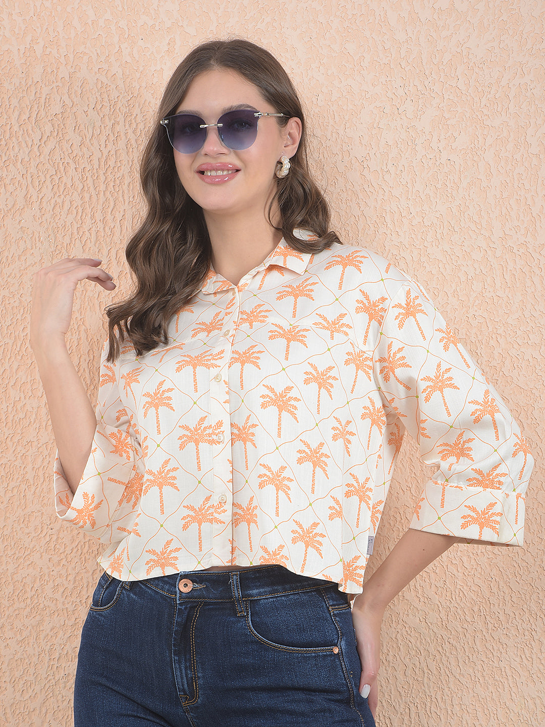 Designed for effortless daily wear with a modern touch. Printed Orange Crop Shirt. Built to keep you comfortable through the day.