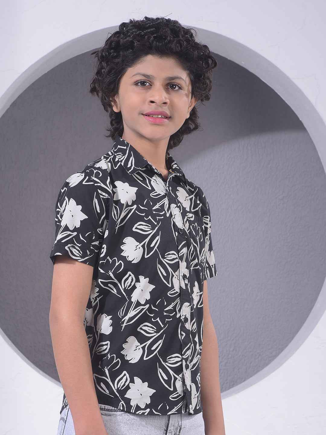 Black Floral Print Shirt