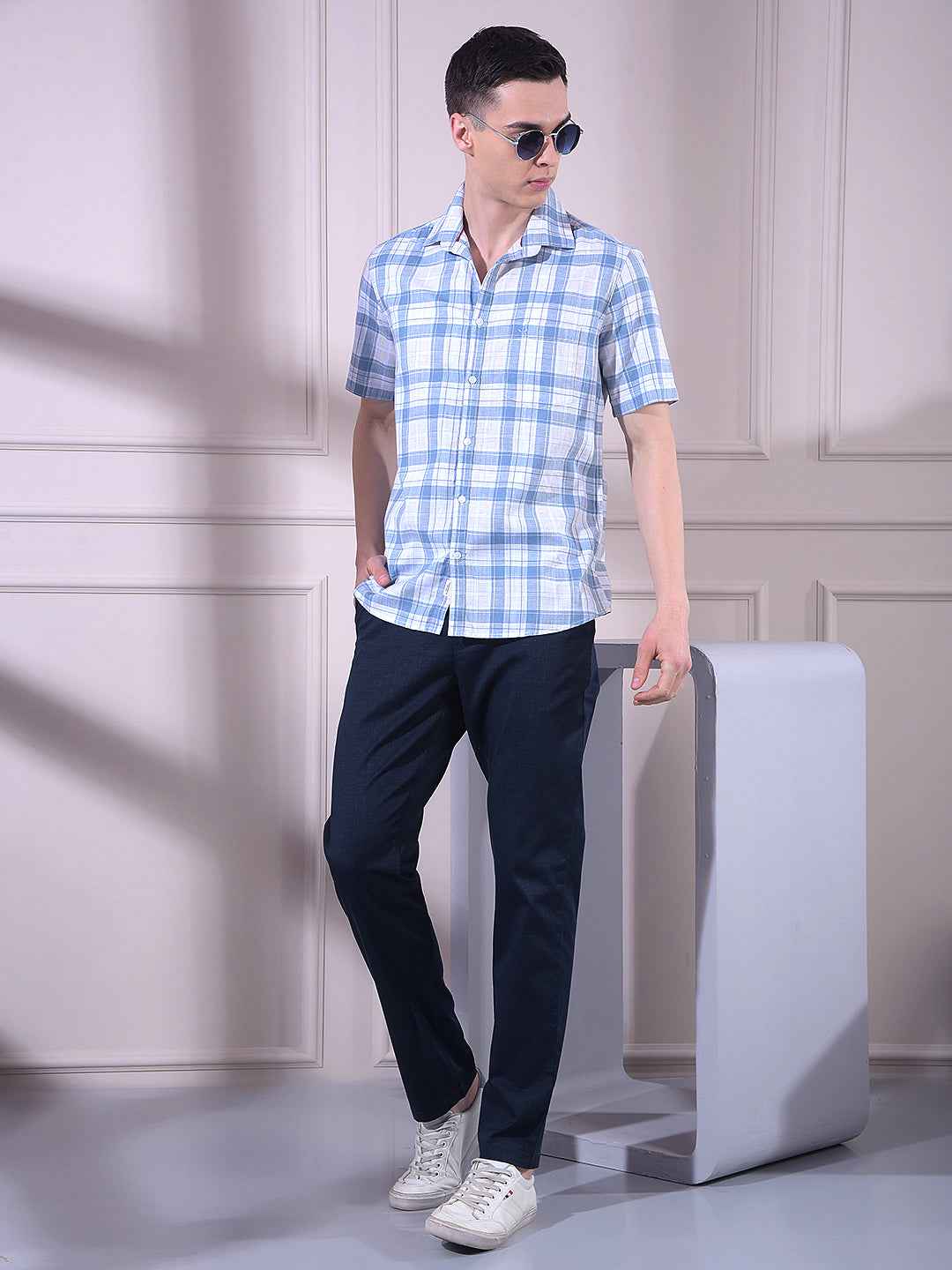 Blue 100% Cotton Checked Shirt
